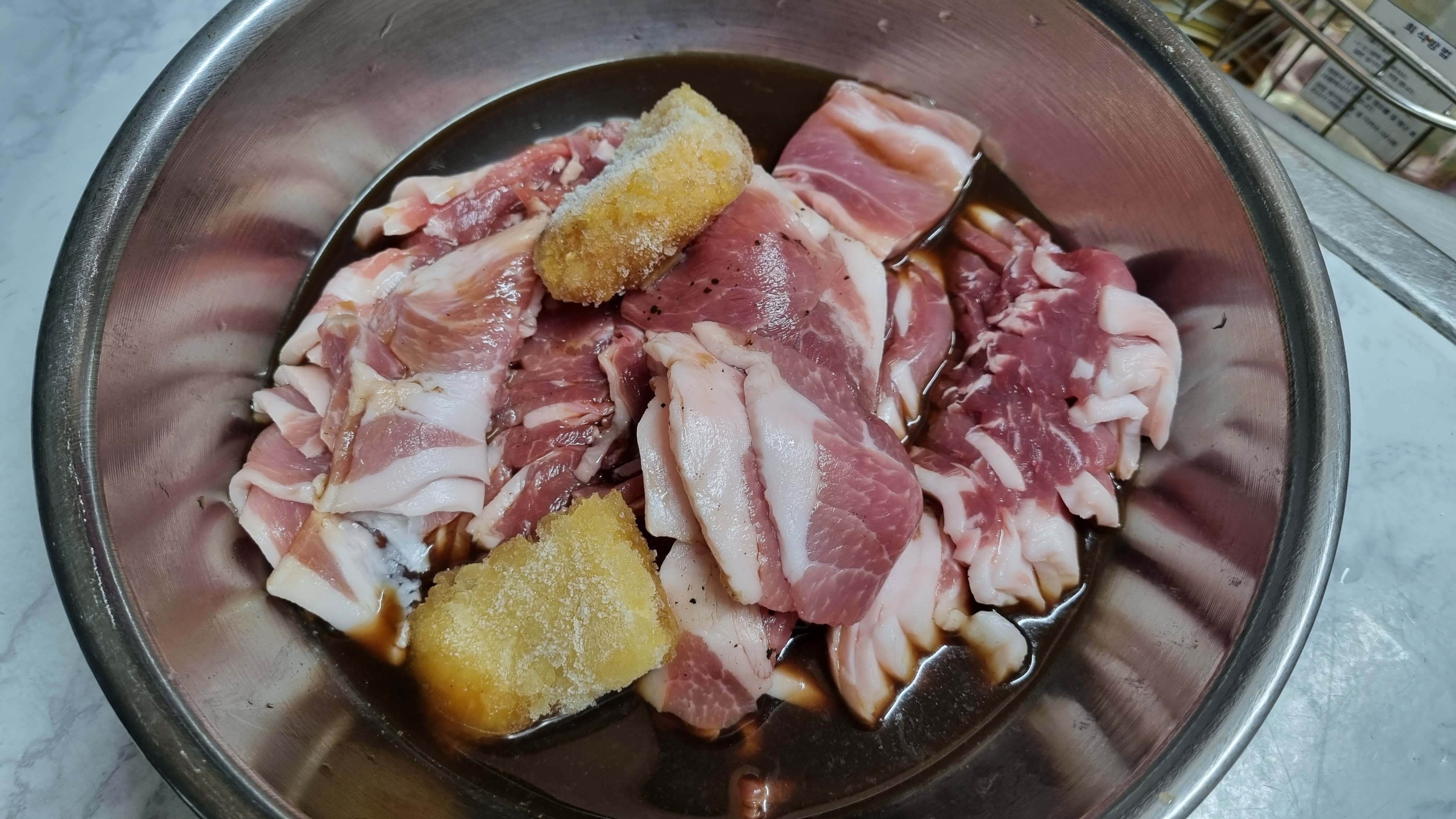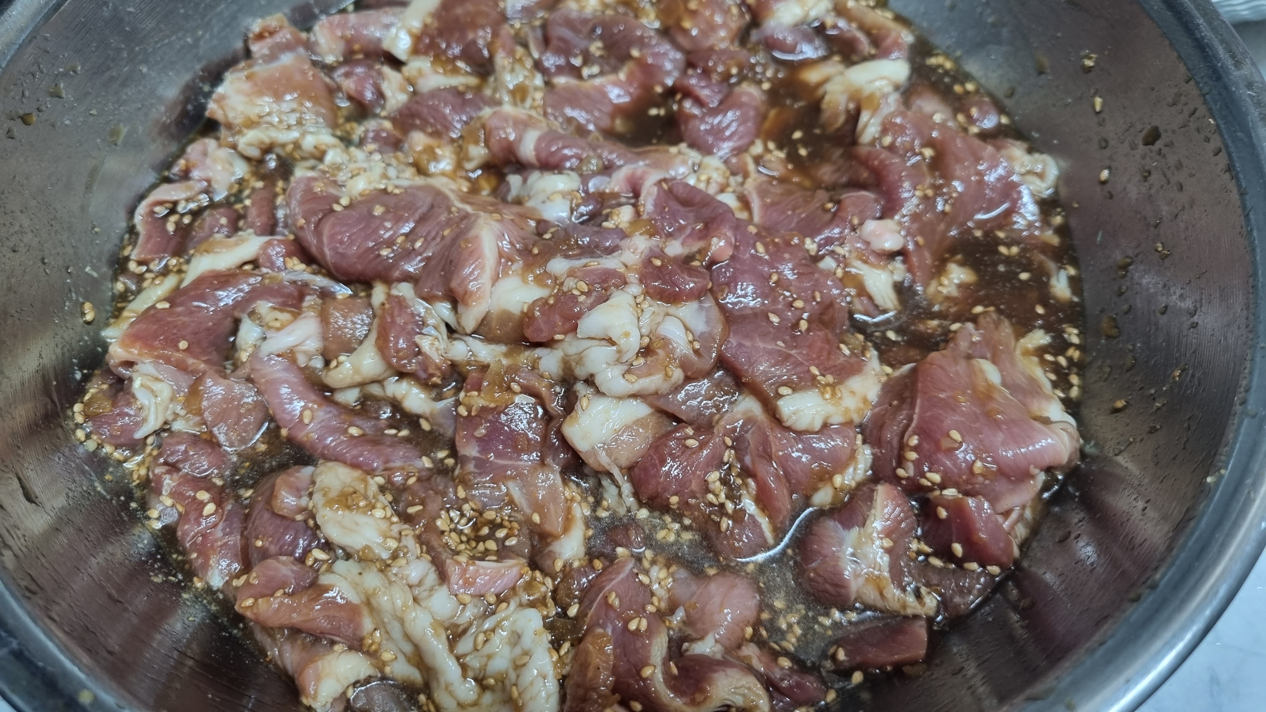 양파즙을 넣으면 고기가 더 부드럽고 기름기가 줄어들어 아주 좋습니다. 고기를 먹을 때 양파를 함께 먹으면 좋은 이유기 가름 기를 제거하기 때문이라고 합니다.