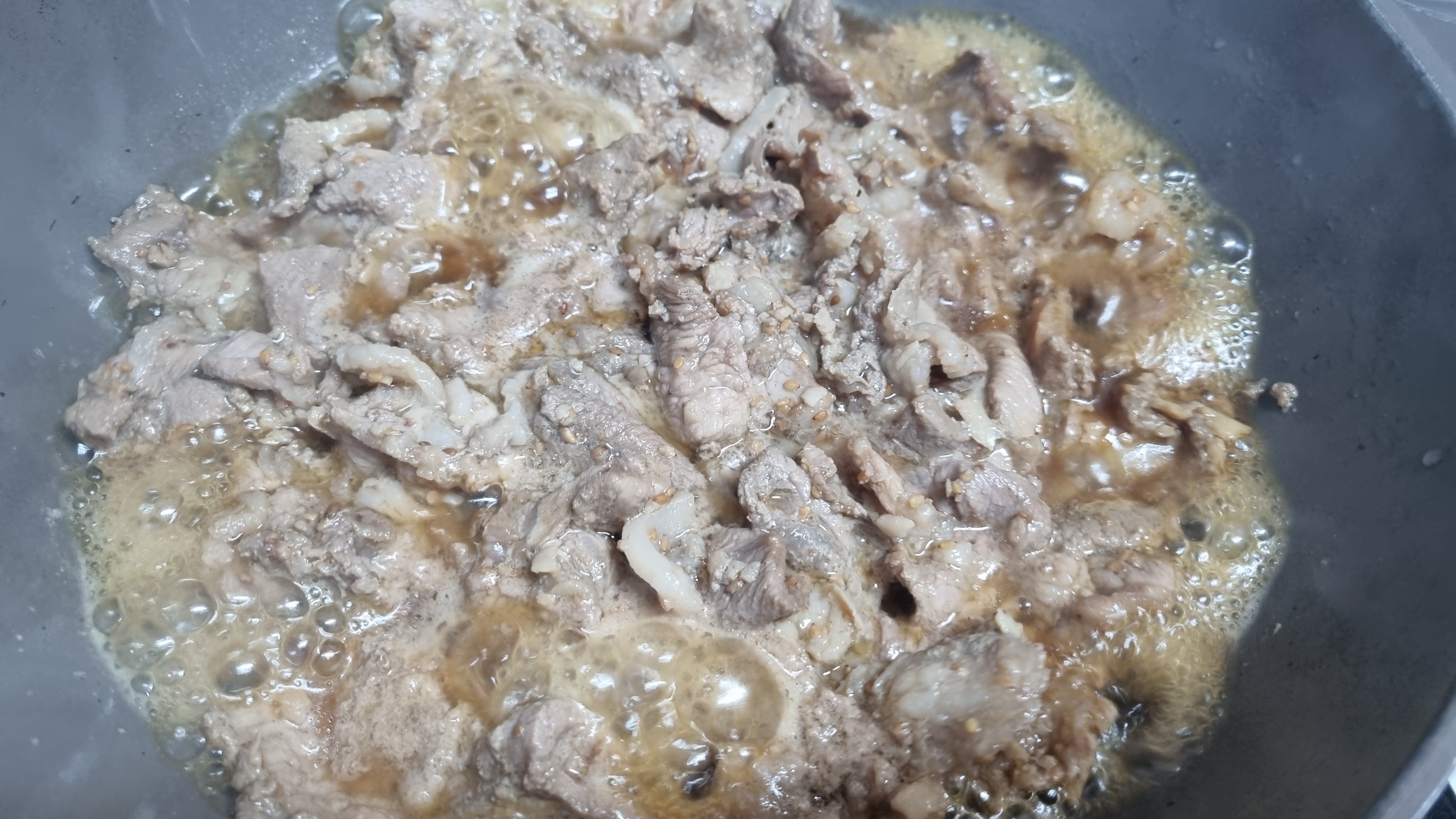 조리시간은 끓기 시작 이후 10~12분 정도면 아주 잘 볶아져서 맛있게 되는데 고기의 두께에 따라 조리시간이 달라질 수 있는데 일반적으로 정육점에서 썰어서 판매되거나 인터넷에서 구입한 것은 두께가 거의 표준화되어 10~12분 정도면 충분합니다.