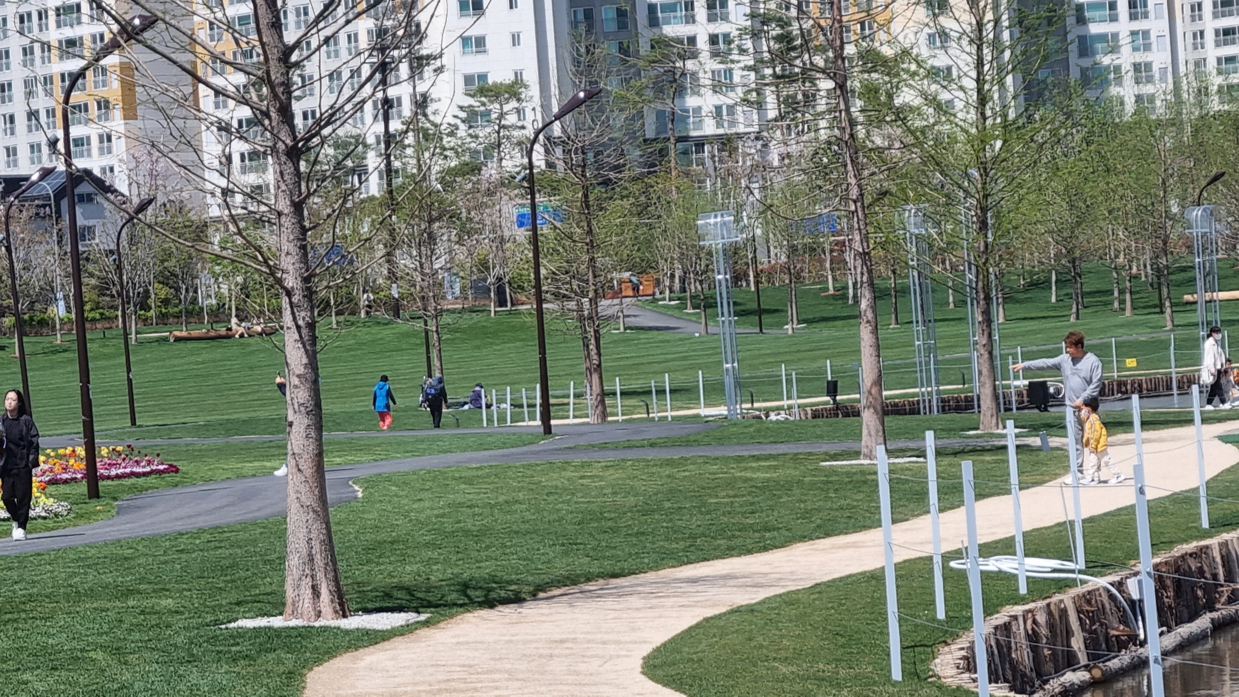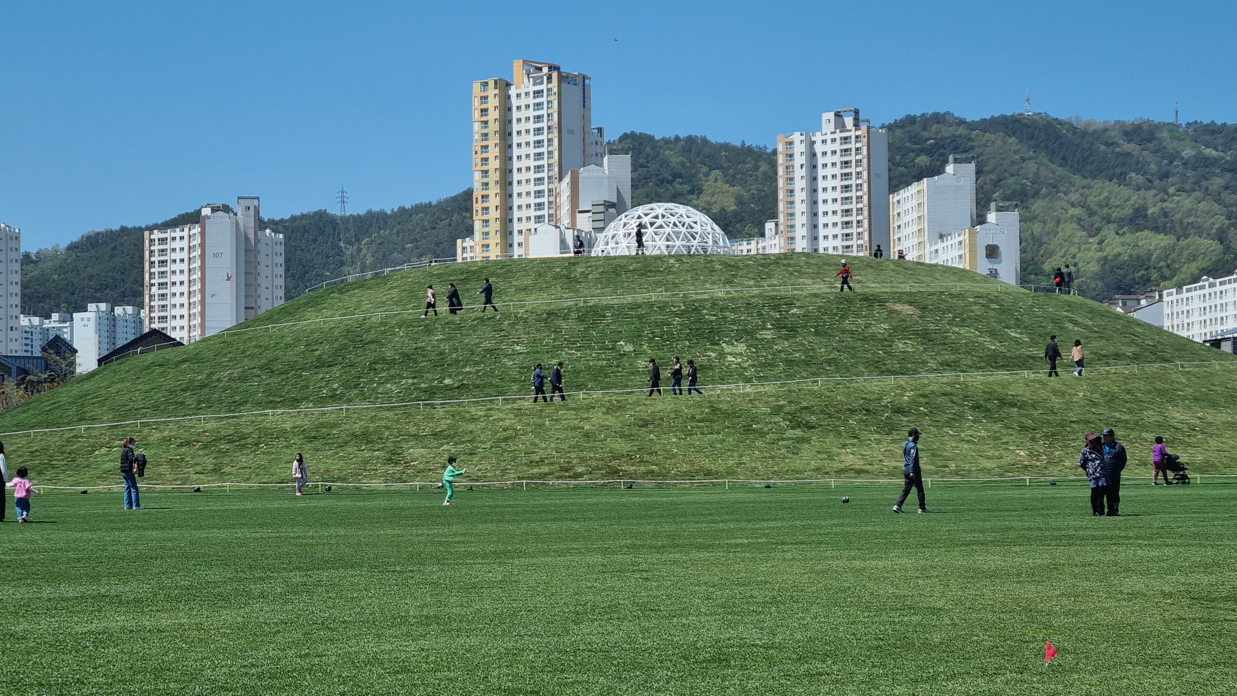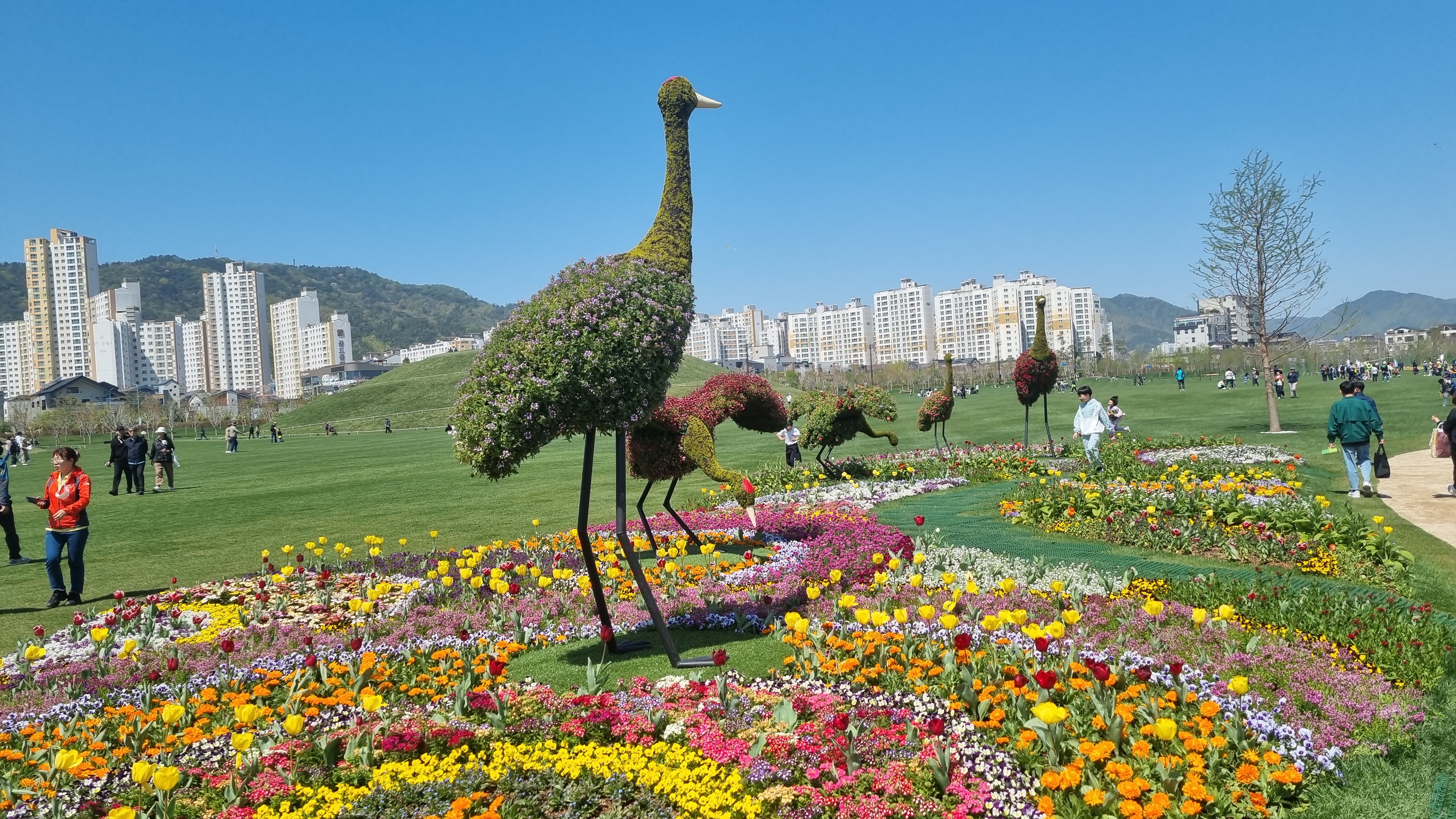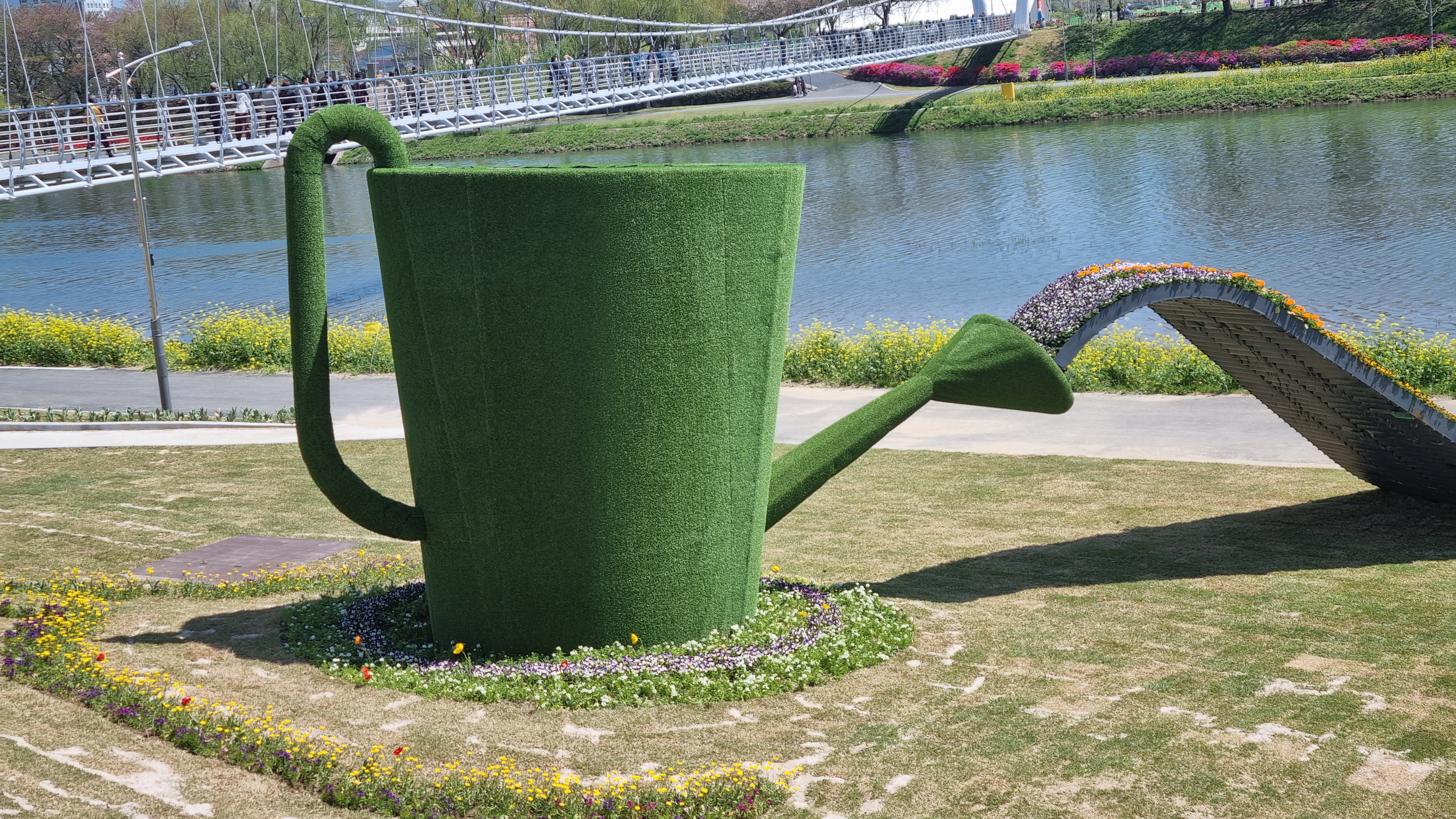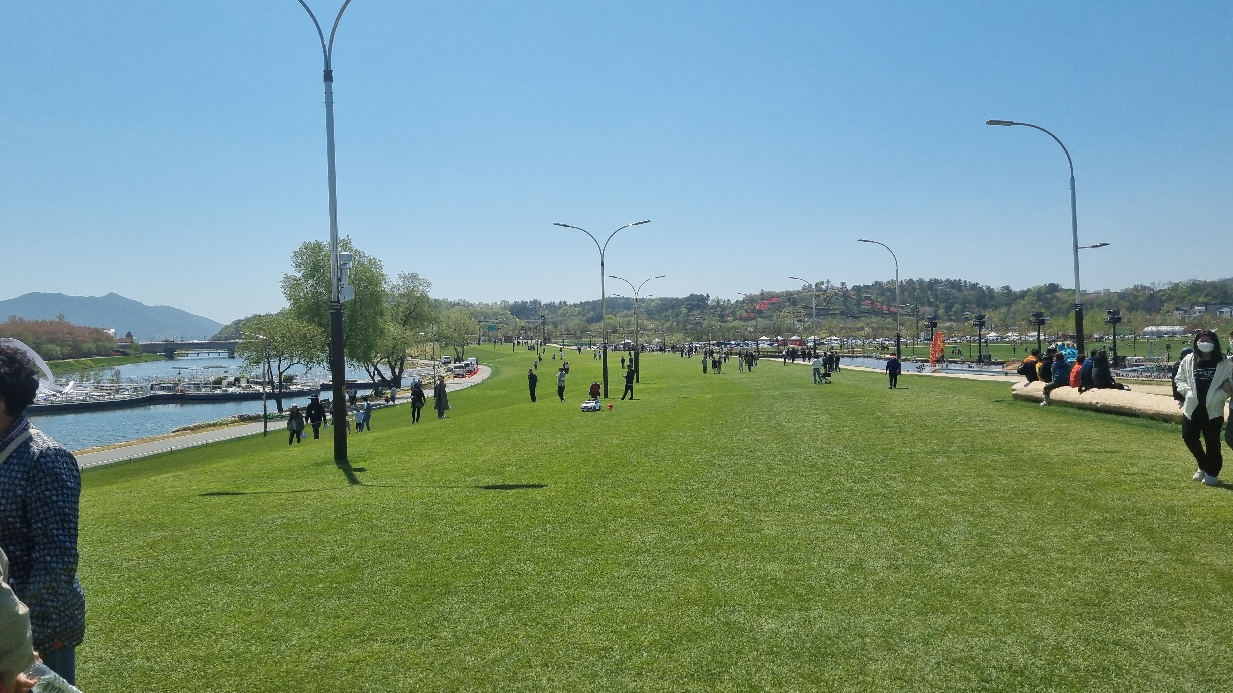 이곳은 이전에 4차선 강변로가 있던 곳인데 이번 박람회를 맞이하여 도로를 폐쇄하고 잔디밭을 만들어 동천과 함께 어우러져 아름다운 자연경관이 만들어졌습니다.