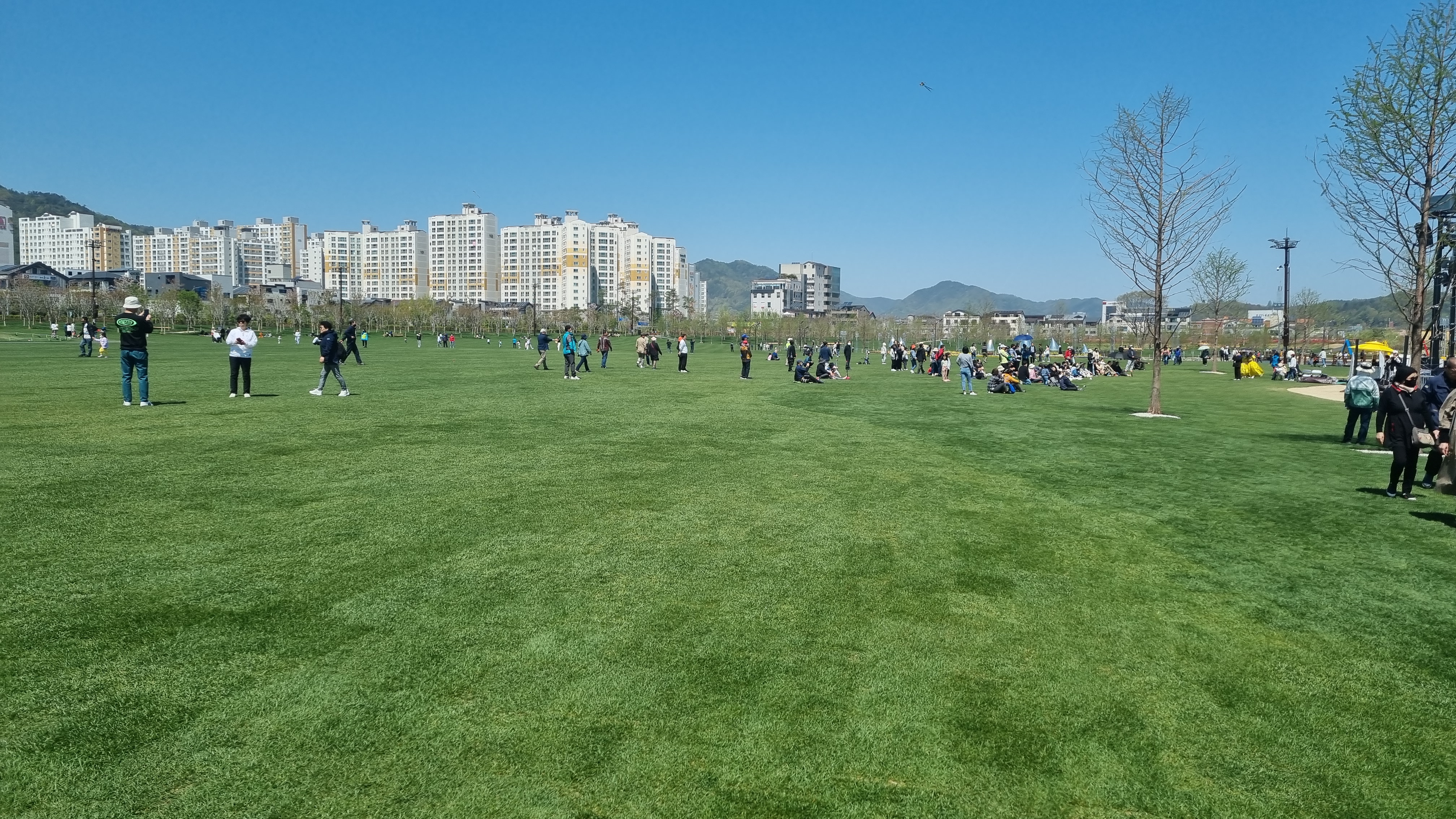 저류지 잔디밭 오천그린광장인데 정말 넓습니다. 애들과 함께 오면 마음껏 뛰어놀고 기분까지 상쾌하고 인근에 꽃구경까지 하면 만족하실 듯합니다.