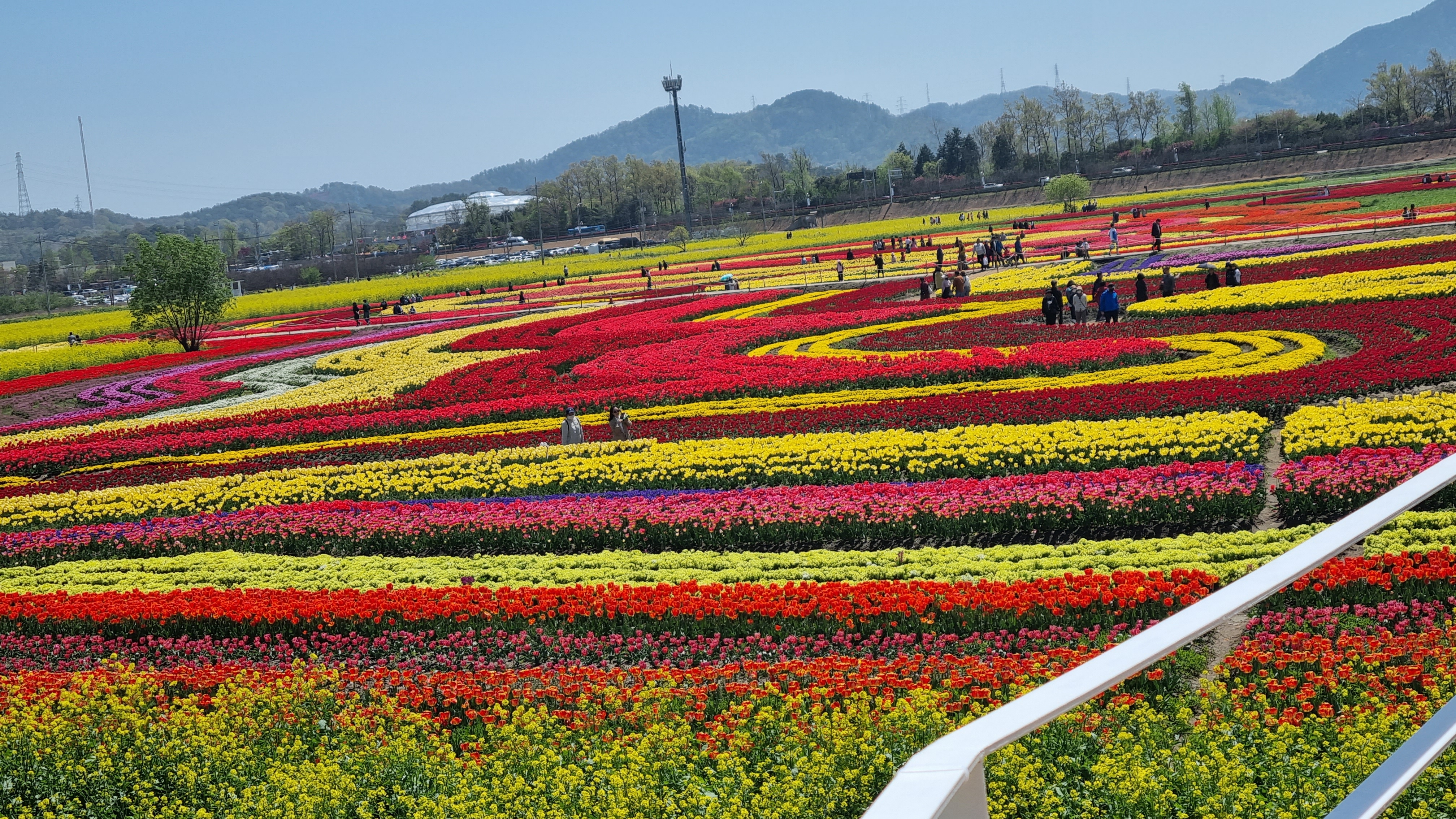 꽃밭 속으로 가서 걸어보았습니다. 사진 촬영한 사람도 많고 그냥 가만히 오랫동안 감상하며 즐기는 분들도 많은데 확 트인 넓은 벌판이라 다른 축제에서 보는 꽃밭과는 차원이 다른 수준입니다.