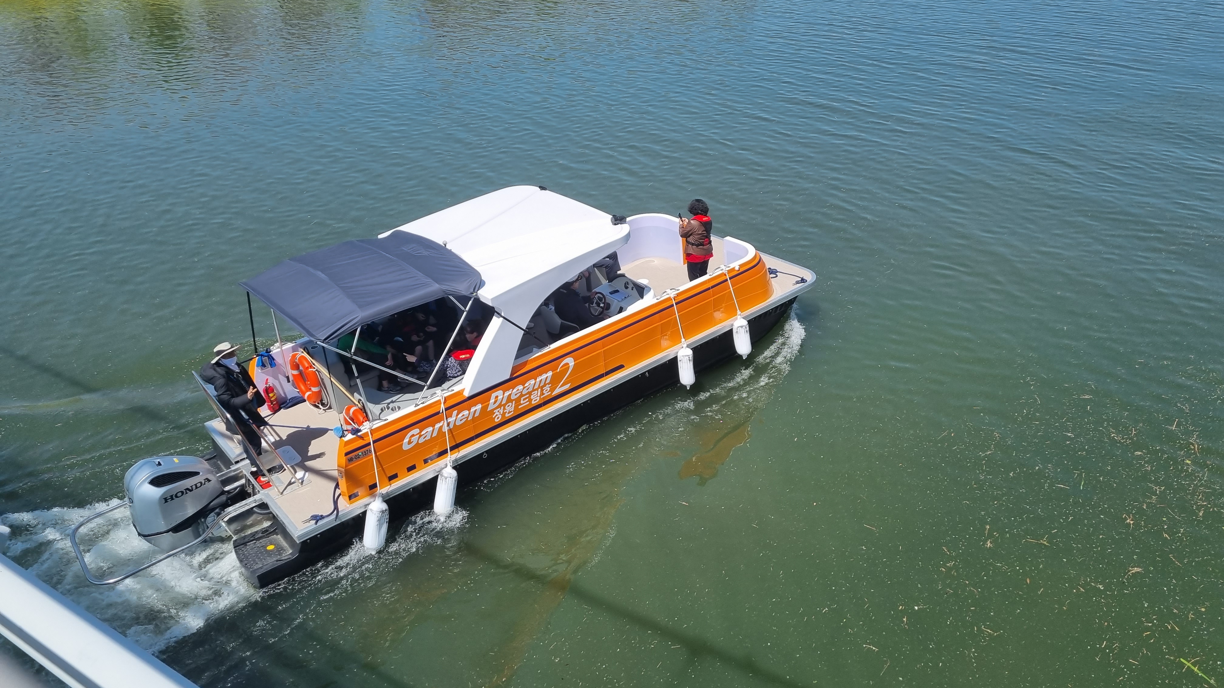 동천을 다니는 작은 유람선입니다. 정원박람회 동문 호수공원에서 출발하여 이곳 동천을 까지 와서 다시 돌아가는 코스입니다. 이용은 인터넷으로 가능하며 어른기준 편도 6천 원 왕복 12,000원인데 박람회 기간만 운영될지 계속 운행할지는 아직 모르겠습니다.