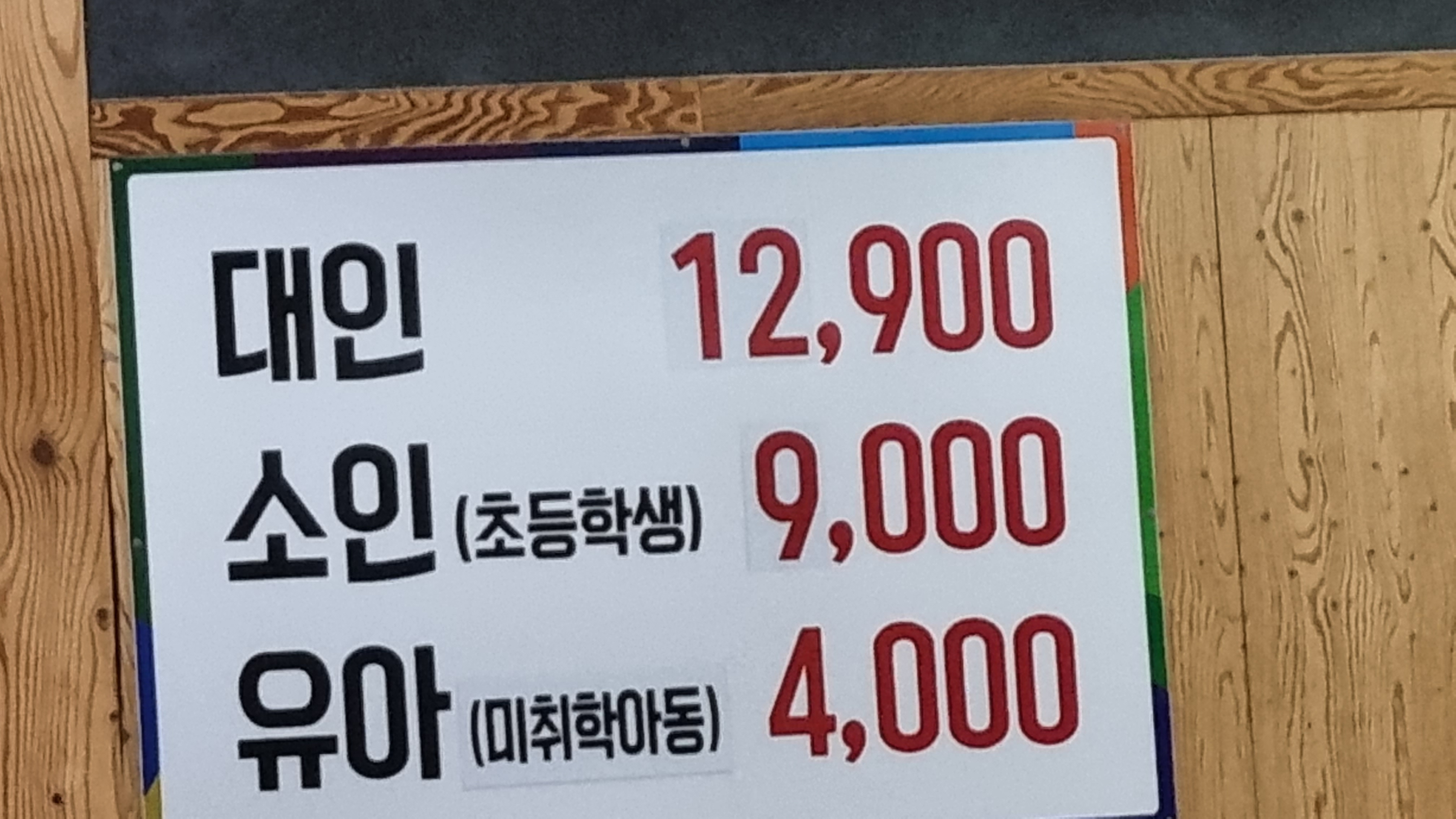 이곳은 무조건 인원소로 계산됩니다. 가격이 상당히 저렴한데 어른이 12,900원인데 중학생이상 적용됩니다. 가격이 일반 식당 삼겹살 1인분가격정도 밖에 하지 않습니다. 초등학생 9천 원, 유아 4천 원으로 이 가격에 고기나 라면 밥, 국, 반찬으로 마음껏 드실 수 있습니다.
