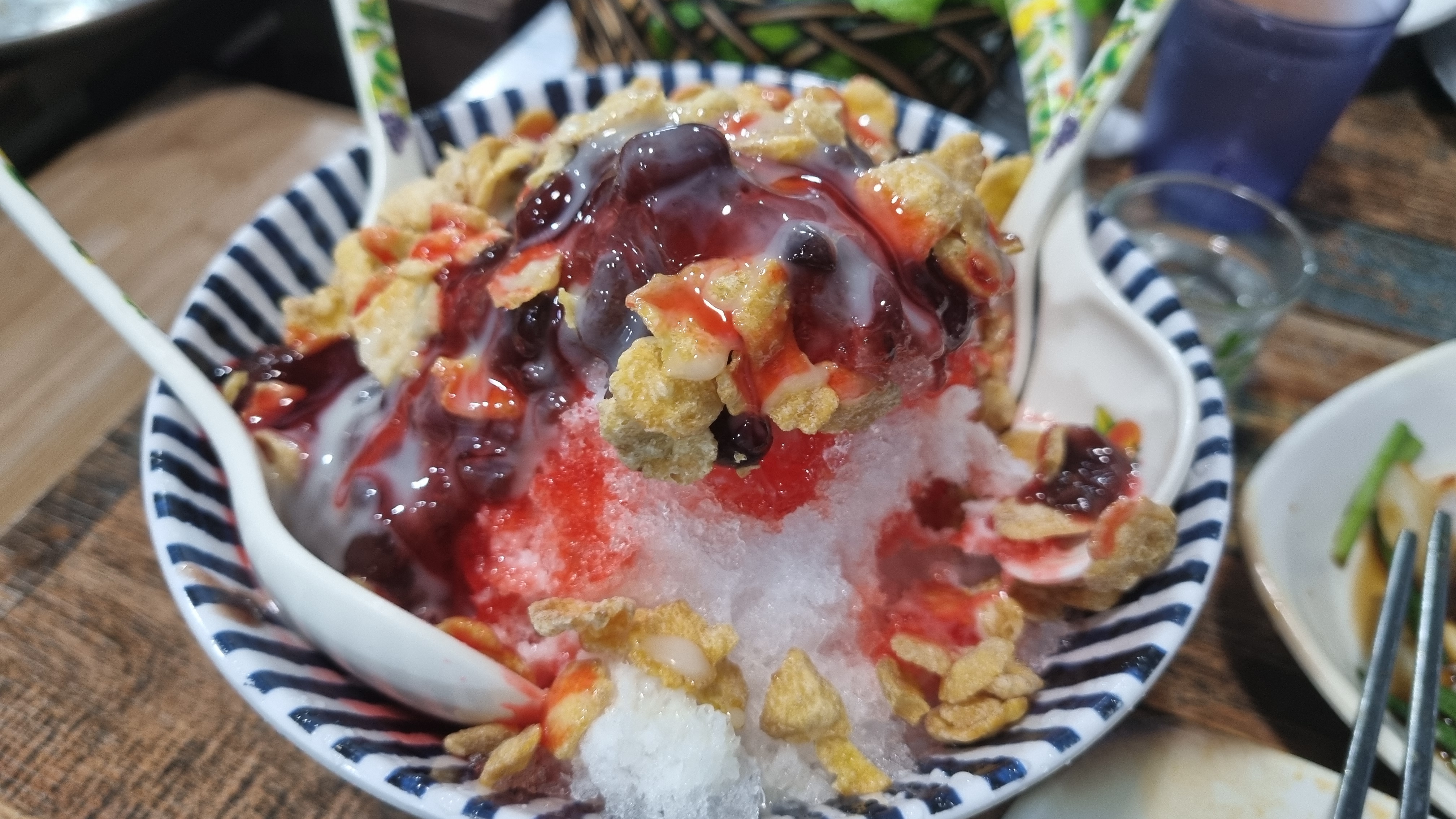 그런데 생각보다 양이 상당히 많습니다. 후식으로 라면을 먹고 냉면을 먹으려도 팥빙수로 하였는데 모두들 배가 불러 하나만 주문하여 나누어 먹었는데 수저도 알아서 4개가 나와 맛있게 먹었는데 이것도 가격대비 맛이나 양에서 가성비가 정말 좋습니다.