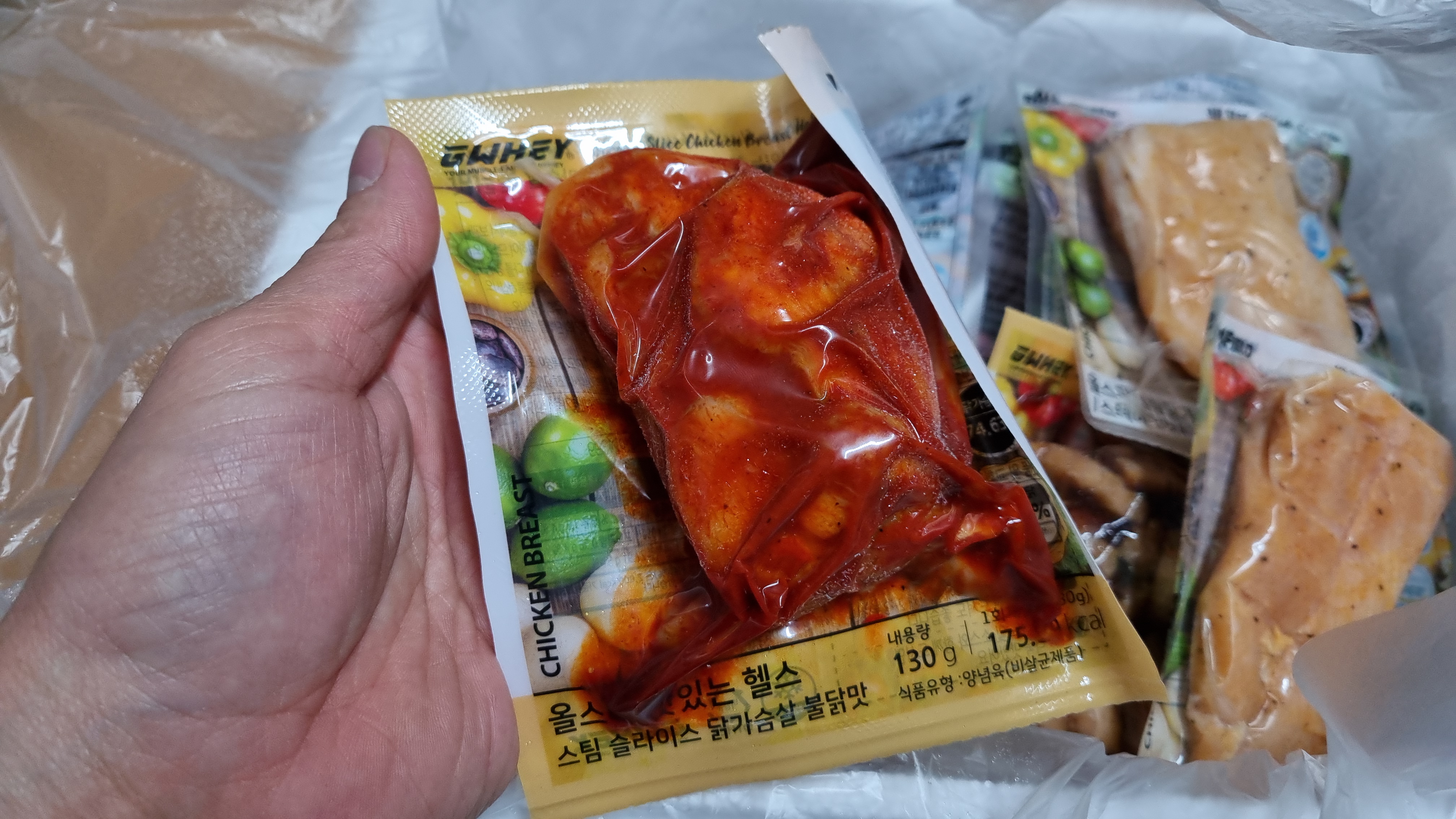 가슴살은 데리야끼나,불닭맛 같은 양념이 되어 있는 것이 아닌 저염맛으로 할 예정이며 양념에 되어 있는 것은 안 좋을 듯합니다.
