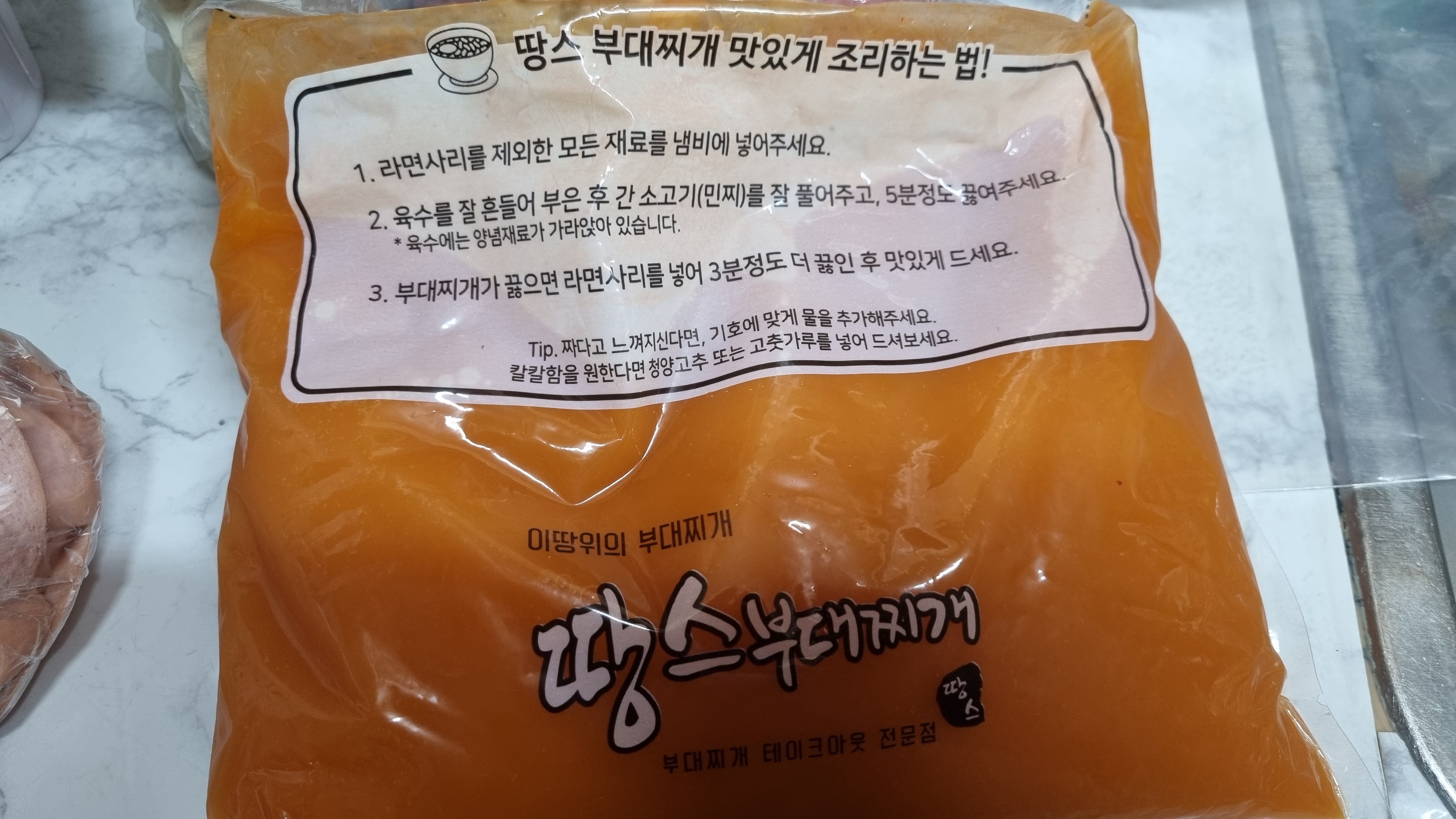 기존에는 포장팩에 담아 만들어진 것을 판매하였는데 아무래도 맛이 떨어졌는데 이제는 실제 신선한 재료들을 만들어 이를 판매하는 체인점들이 많은데 오늘은 땅스부대찌개라는 곳에서 3인분을 구입해 만들어보겠습니다