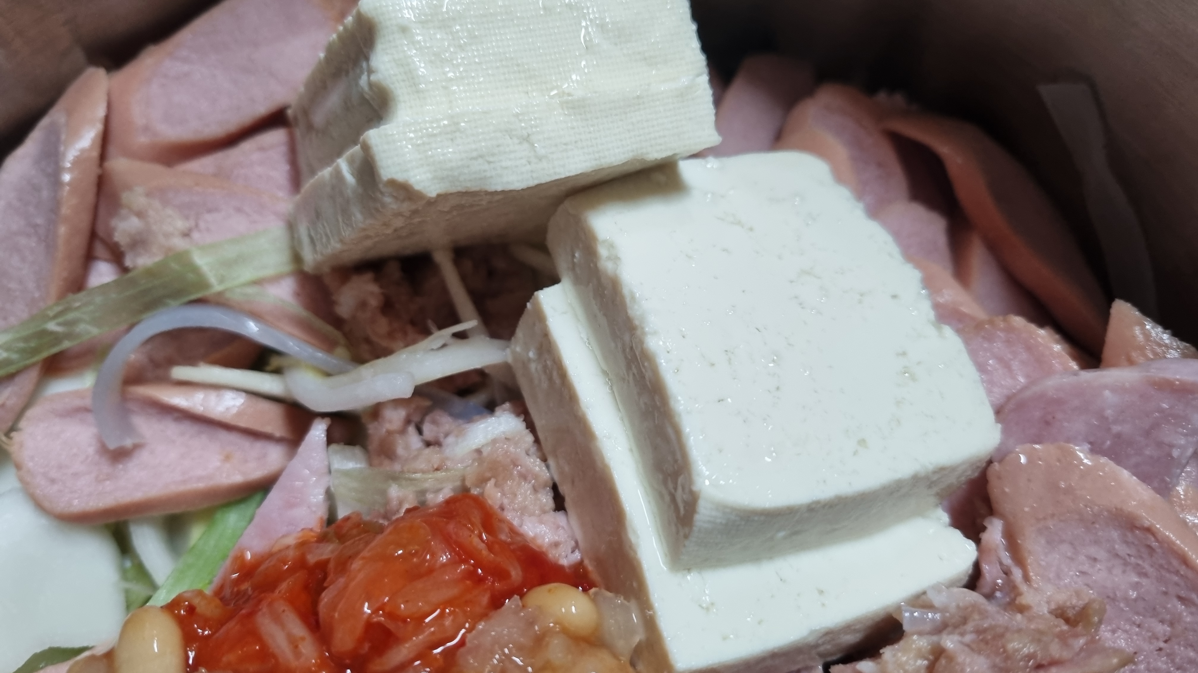 이렇게 완성된 집에서 만든 부대찌개입니다. 라면사리가 빠져 아쉽지만 맛을 전문점에서 만든 것과 비슷한 맛을 유지했으며 또한 스팸과 두부가 추가되어 먹는 재미가 더 좋았습니다.