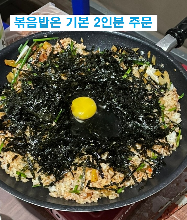 볶음밥도 1인분에 3천 원인데 기본 2인분은 주문해야 가능합니다.