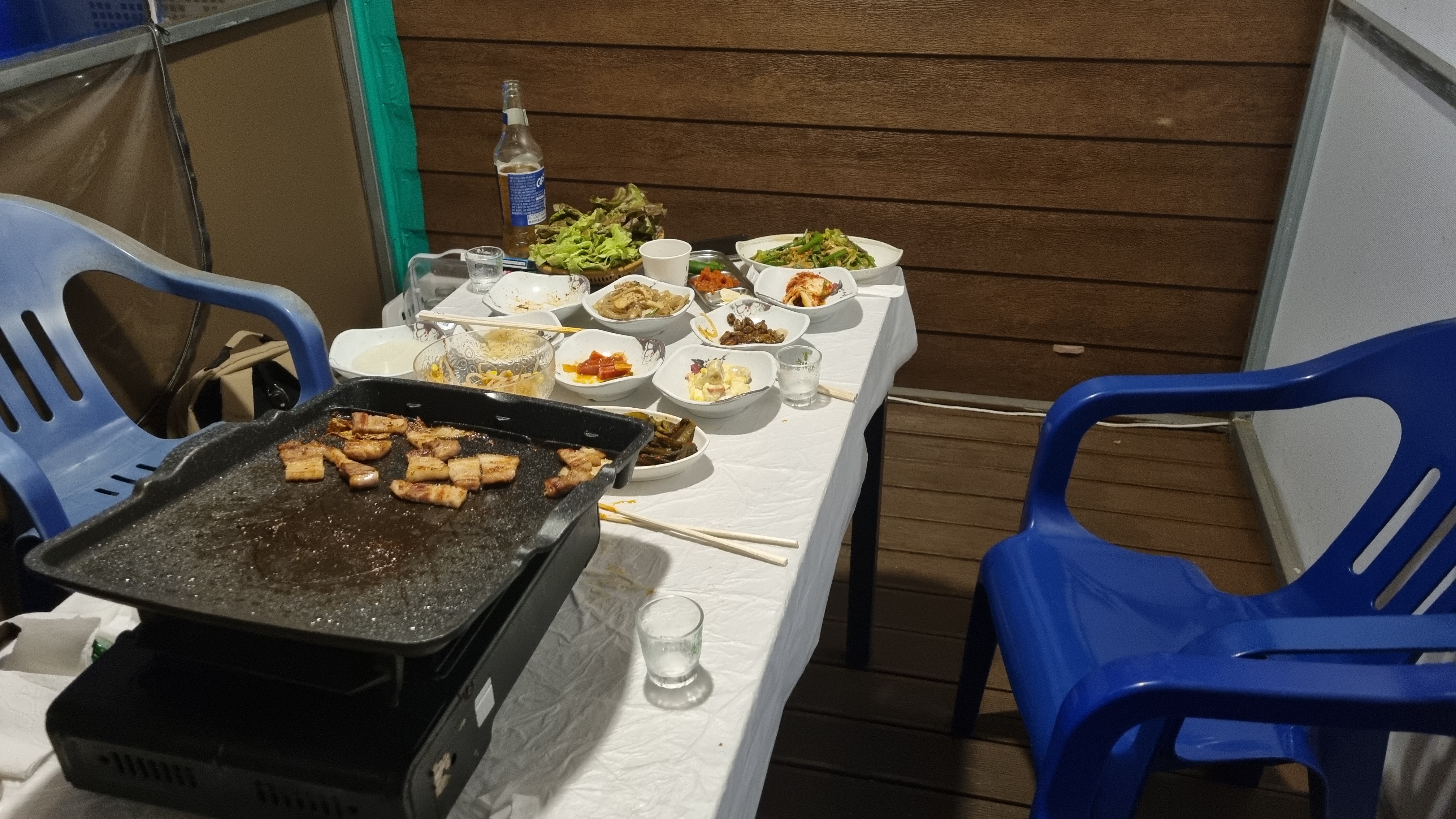 숯불이 아닌 불판이지만 정말로 캠핑장에서 구워 먹는 듯한 분위기가 확실히 있어으며 평소보다 고기 먹는 양도 많았는데 먹어도 먹어도 계속 맛있게 먹을 수 있었습니다.