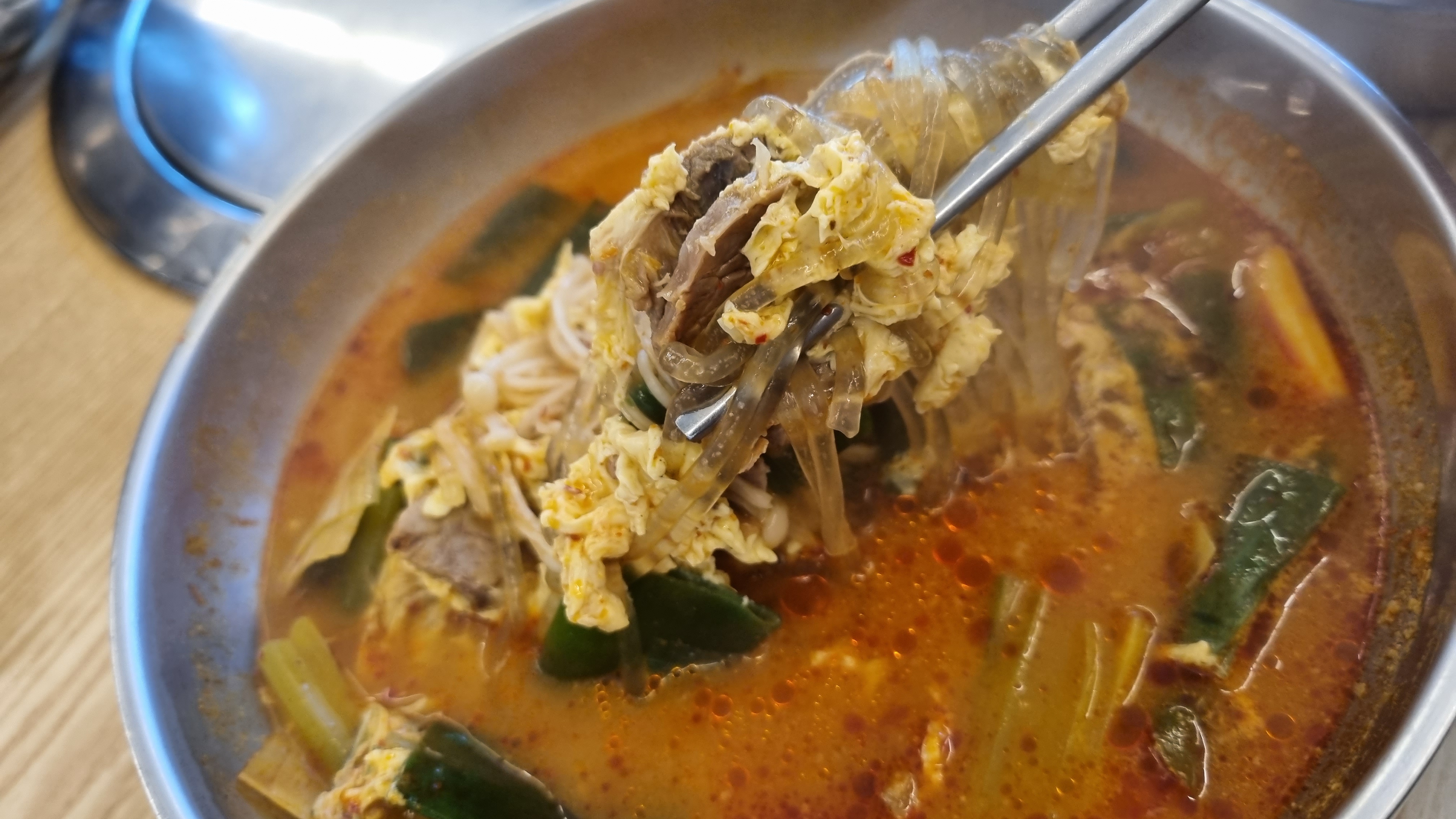 이전에 일반 설렁탕은 몇 번 먹어 보았는데 얼큰은 처음 먹어 봅니다. 그런데 정말 보기에도 맛있게 보이고 푸짐하게 보이며 국물을 조금 떠서 맛을 보았는데 아주 살짝 얼큰하면서 느낌이 아주 좋았습니다.