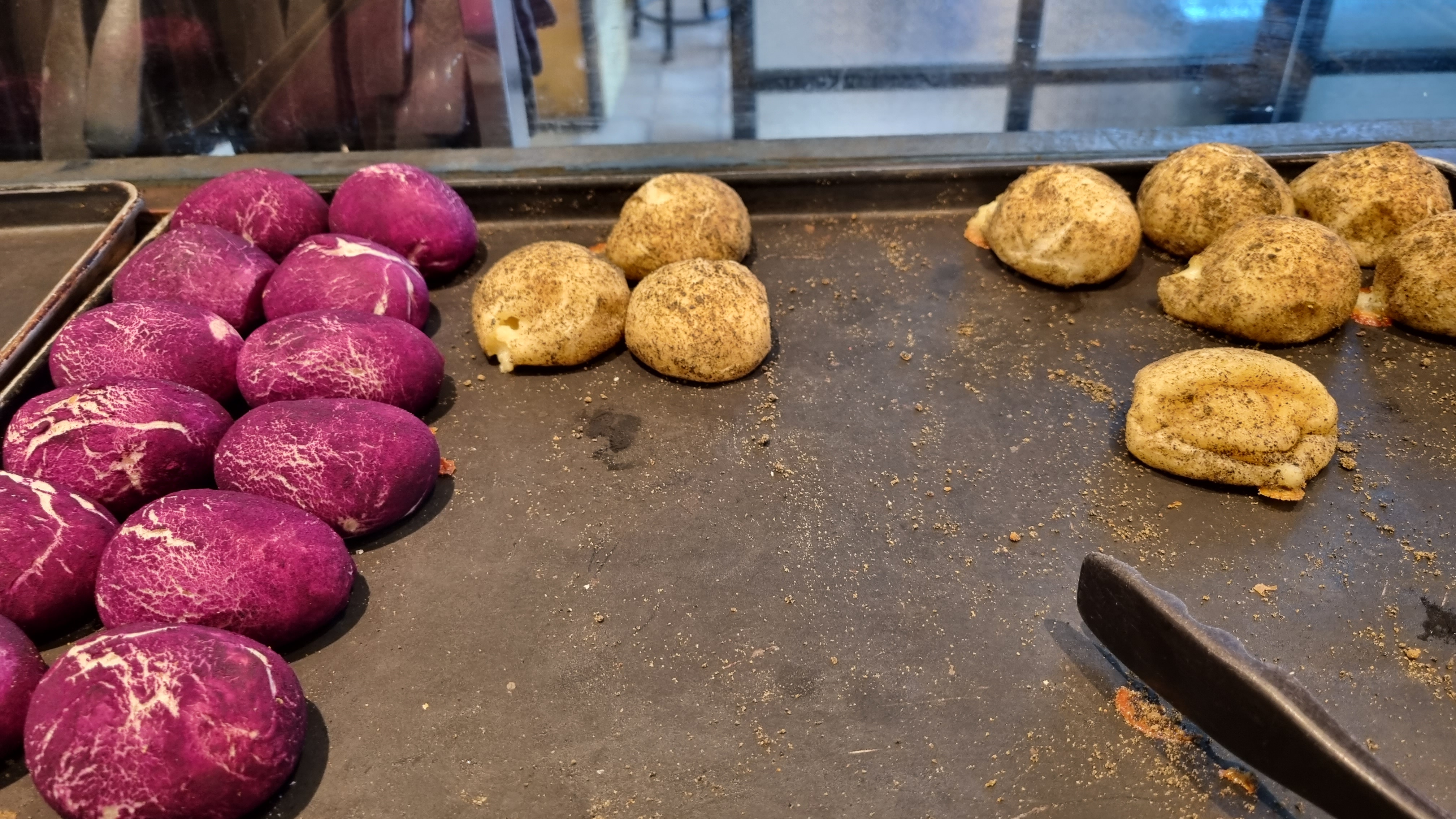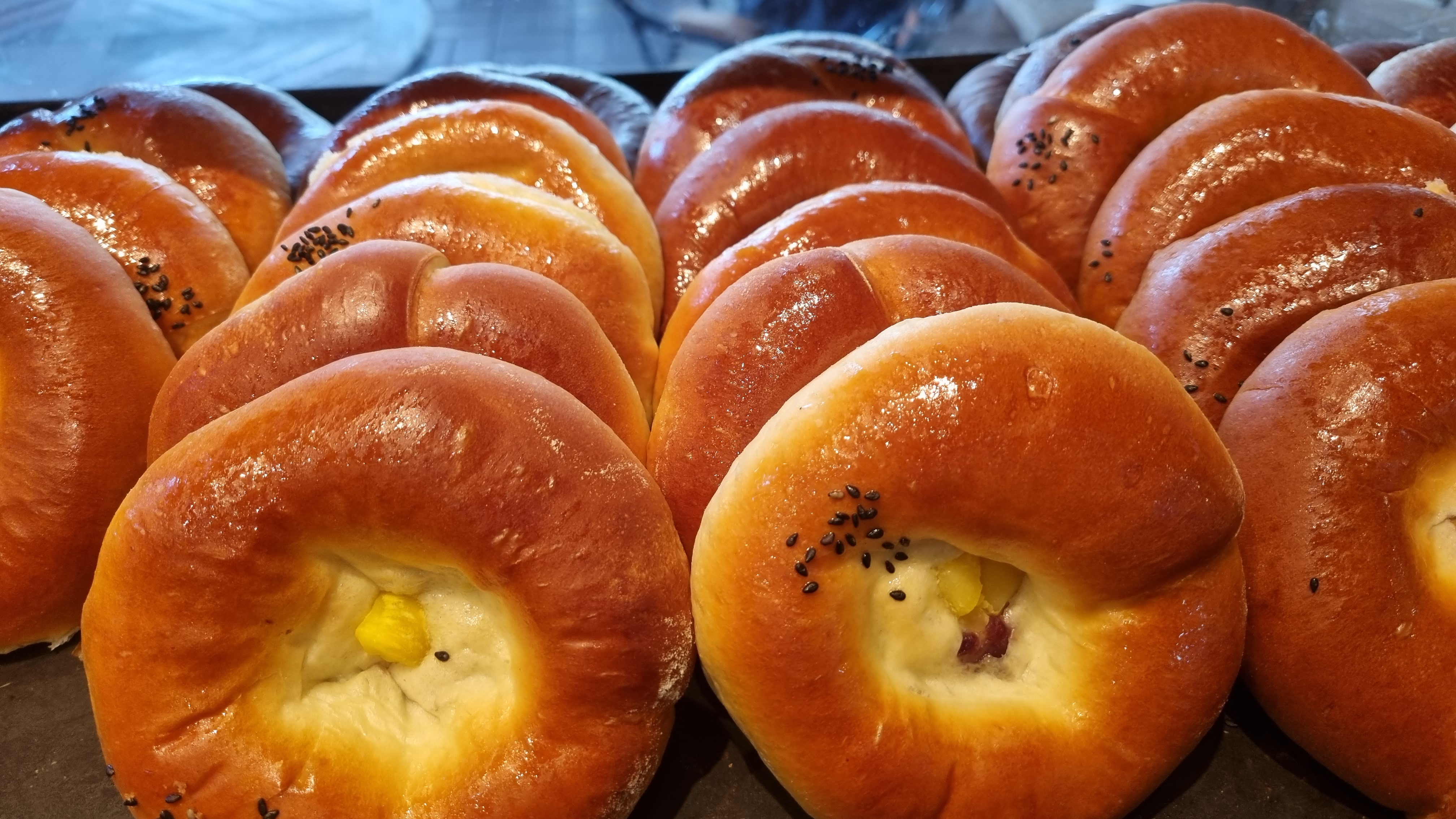 빵종류는 정말 많았으며 처음 보는 것도 있었습니다. 바로 위사진은 고구마와 감자빵인데 왼쪽 누런 것은 정말 감자같이 생겼는데 감자모양의 빵입니다.