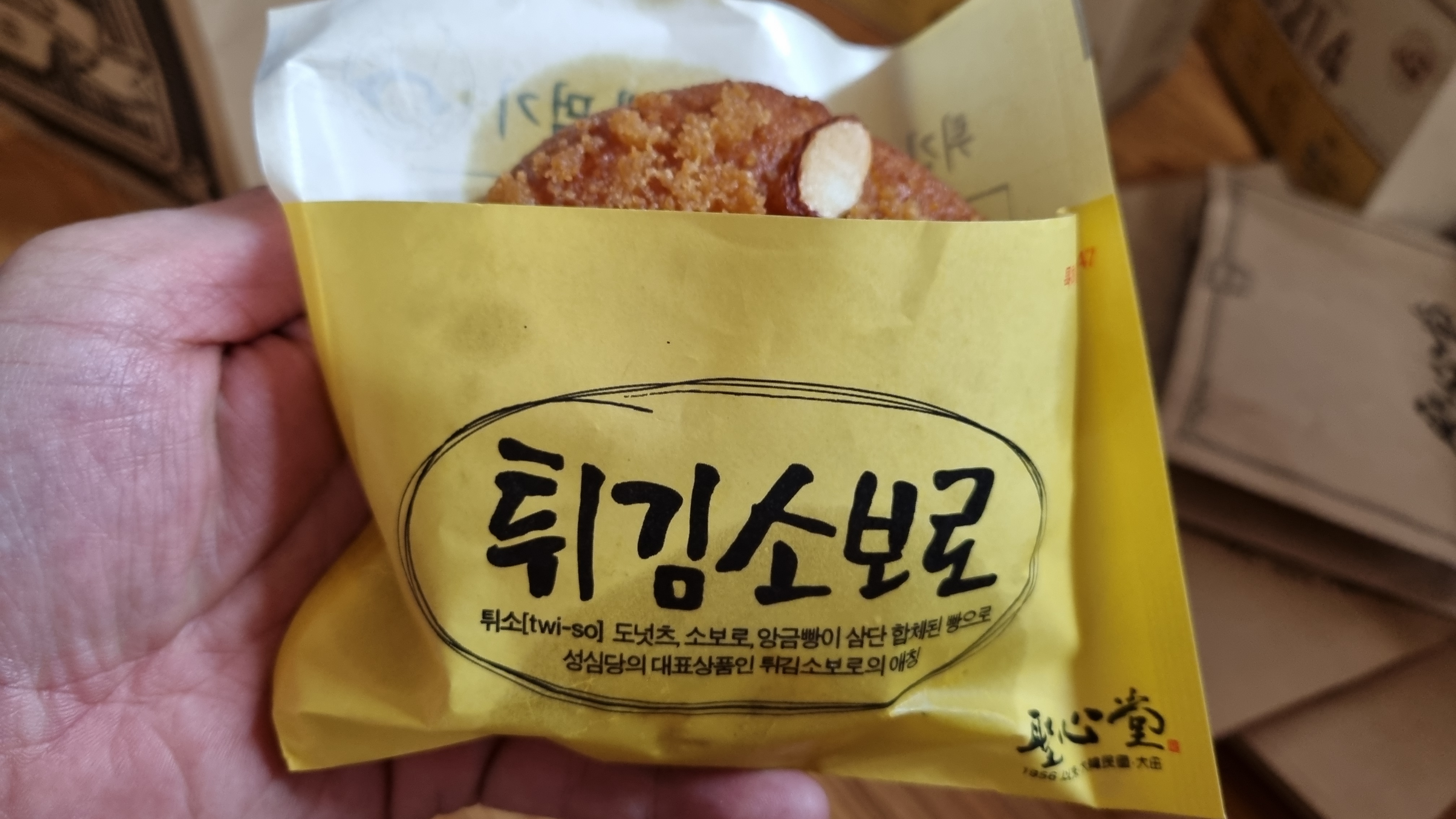 겉면에 있는 튀김소보로와 안에 들어 있는 팥이 잘 어우러져 정말 부드럽고 맛있습니다. 그래서 대전에 방문 시 꼭 구입하여 먹습니다.