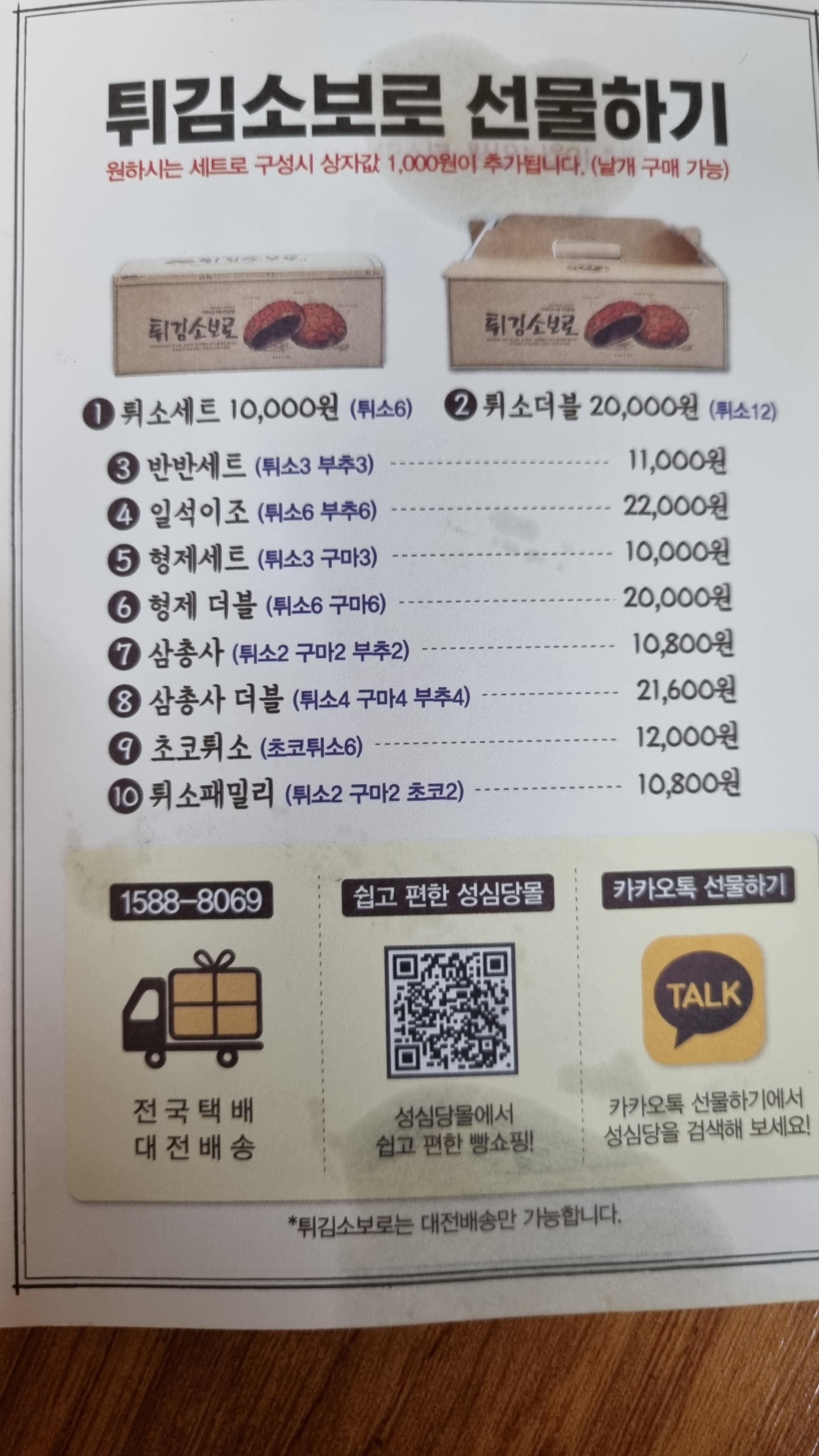 전국적으로 택배도 가능하는데 필자가 좋아하는 튀김소보로는 대전지역만 가능하다고 하네요. 아마도 튀김부위가 하루가 지나면 맛이 떨어져 그러는지 궁금하네요.