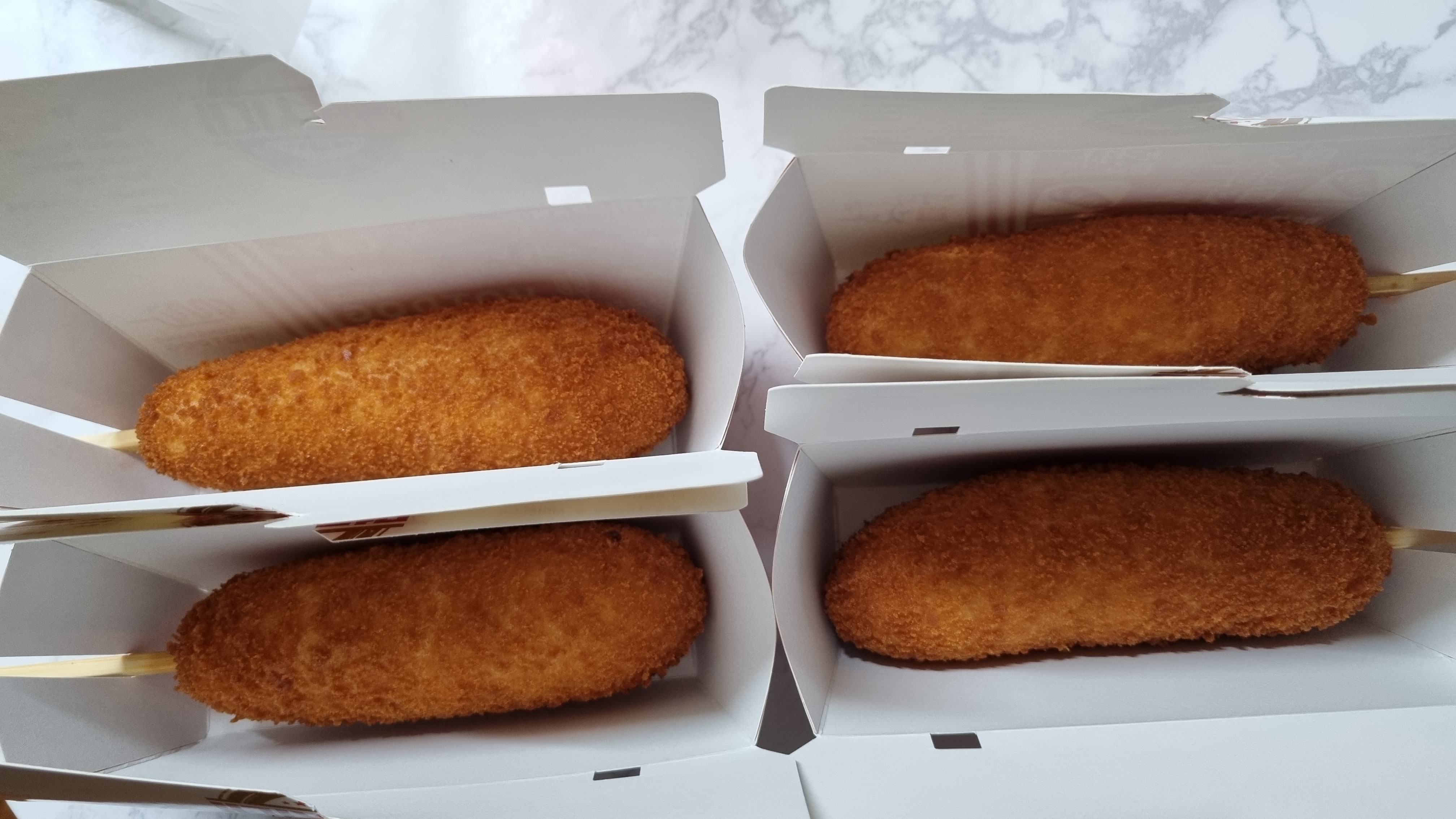 필자는 4개를 구입할 건데 점보핫도그 2개, 통모짜 2개 구입했습니다. 가격은 1개당 2,600원, 2,800원씩으로 하여 일반 닭꼬치 수준과 비슷한 가격대를 형성하고 있습니다.