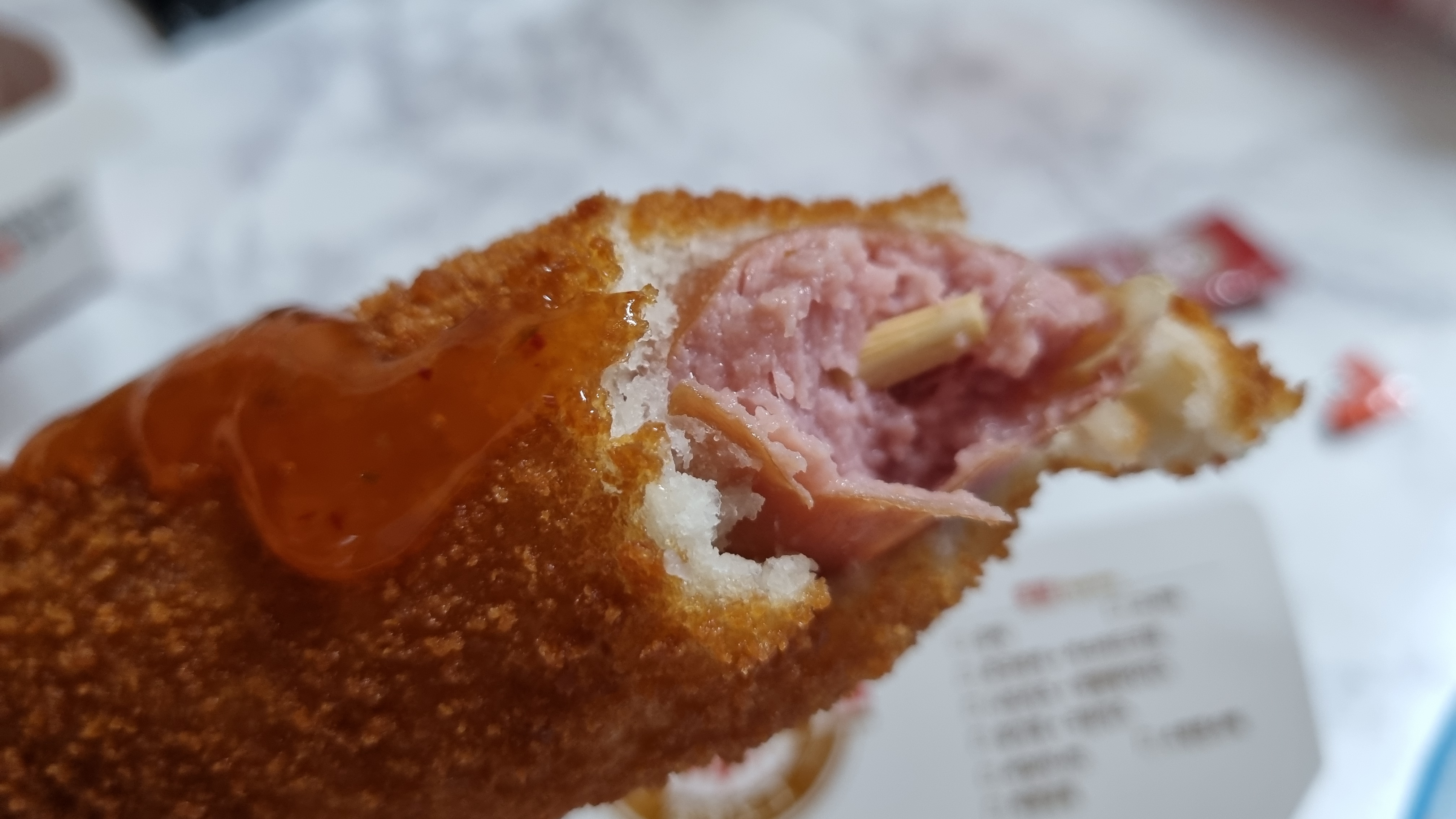 이것은 점보핫도그인데 속에 있는 소시지 크기가 크다고 합니다. 생각보다 양이 많아 출출할 때 이거 한 개 먹으면 배가 든든합니다.