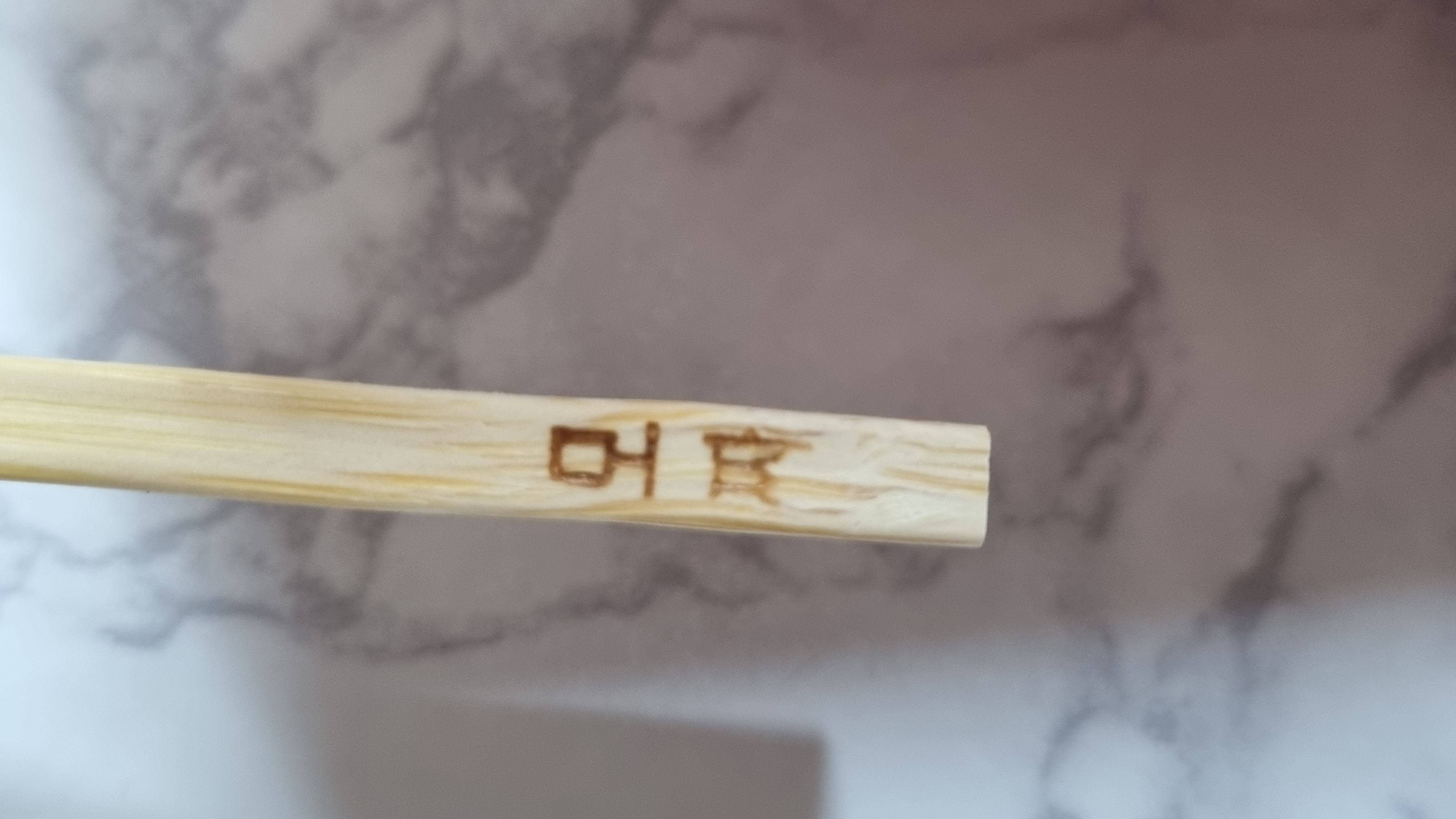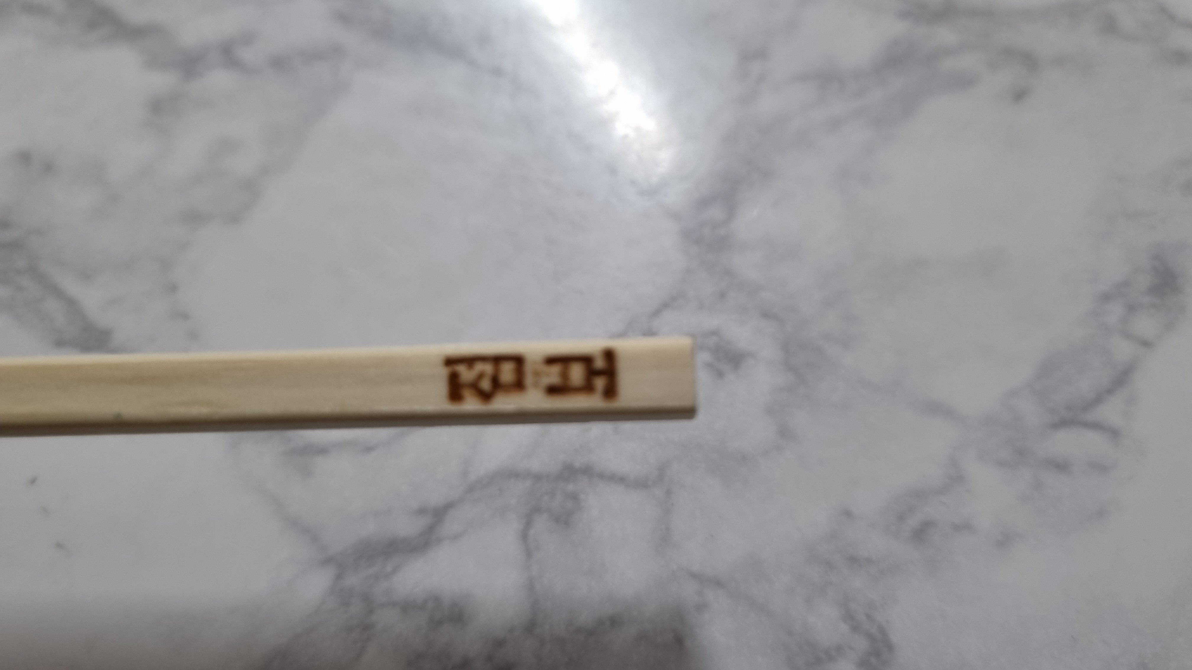 바로 꼬지대에 이렇게 적어져 있습니다. 조그마한 종이박스에 포장된 있는데 나무 꼬지 대는 밖으로 나와 있는데 바로 이 나무 꼬지대에 이렇게 제품명이 적어져 있어 구분이 가능합니다.