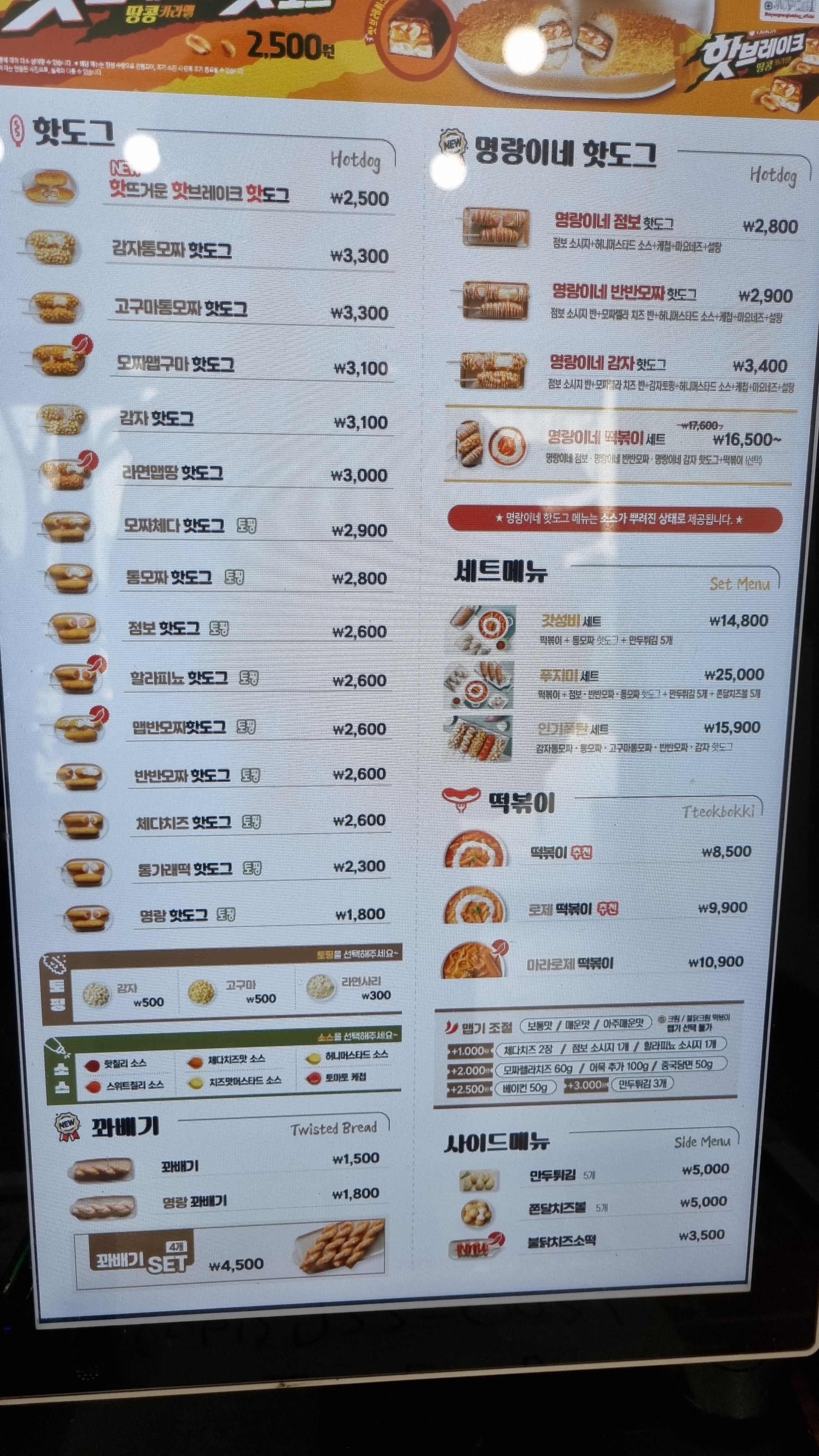 이곳이 핫도그 전문매장이지만 다른 사이드 메뉴가 많은데 떡볶이가 상당히 인기가 있다고 합니다. 필자도 예전에 구입하여 먹어본적이 있는데 맛은 좋은데 양이 조금 적어 아쉬웠습니다.