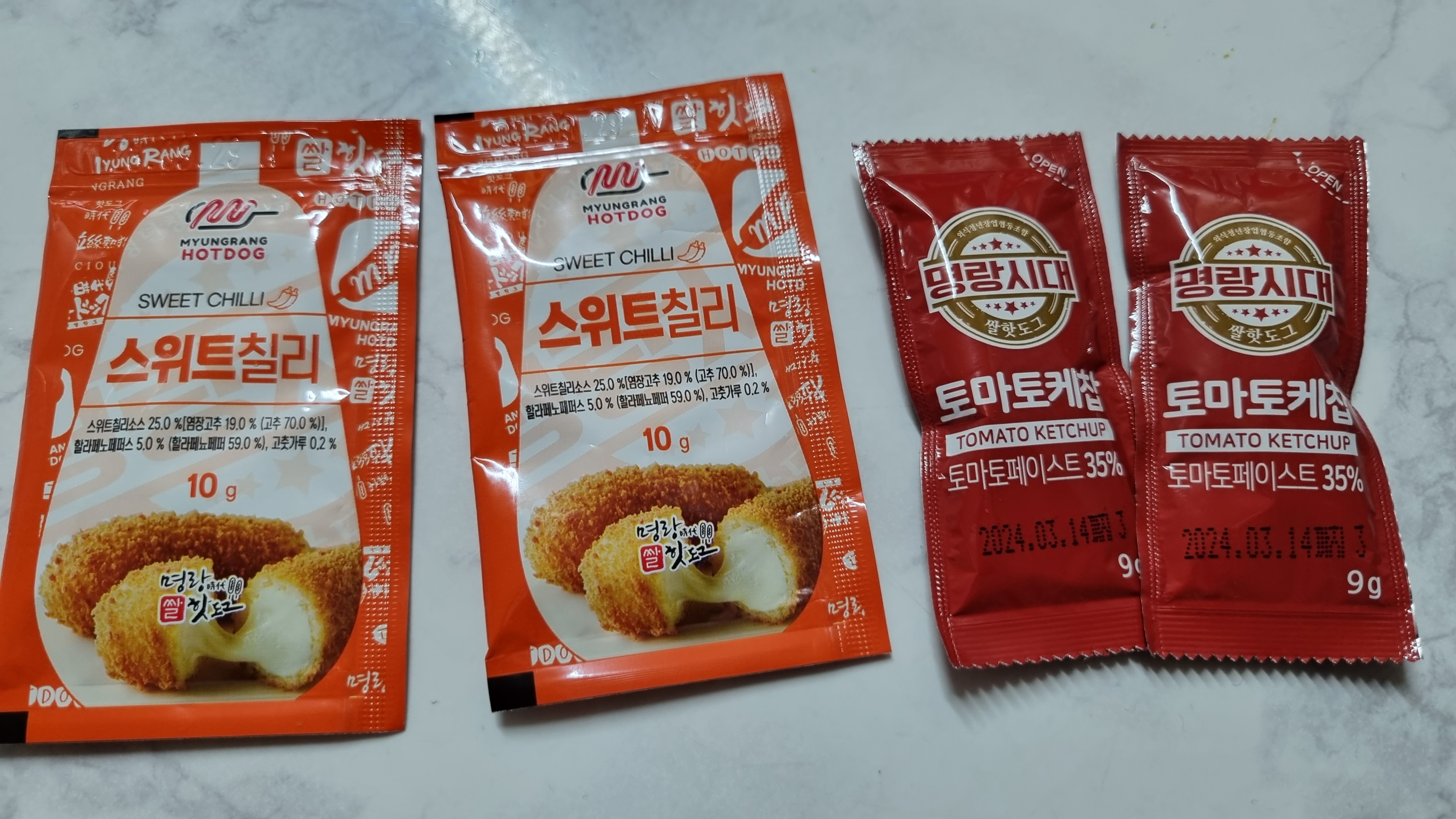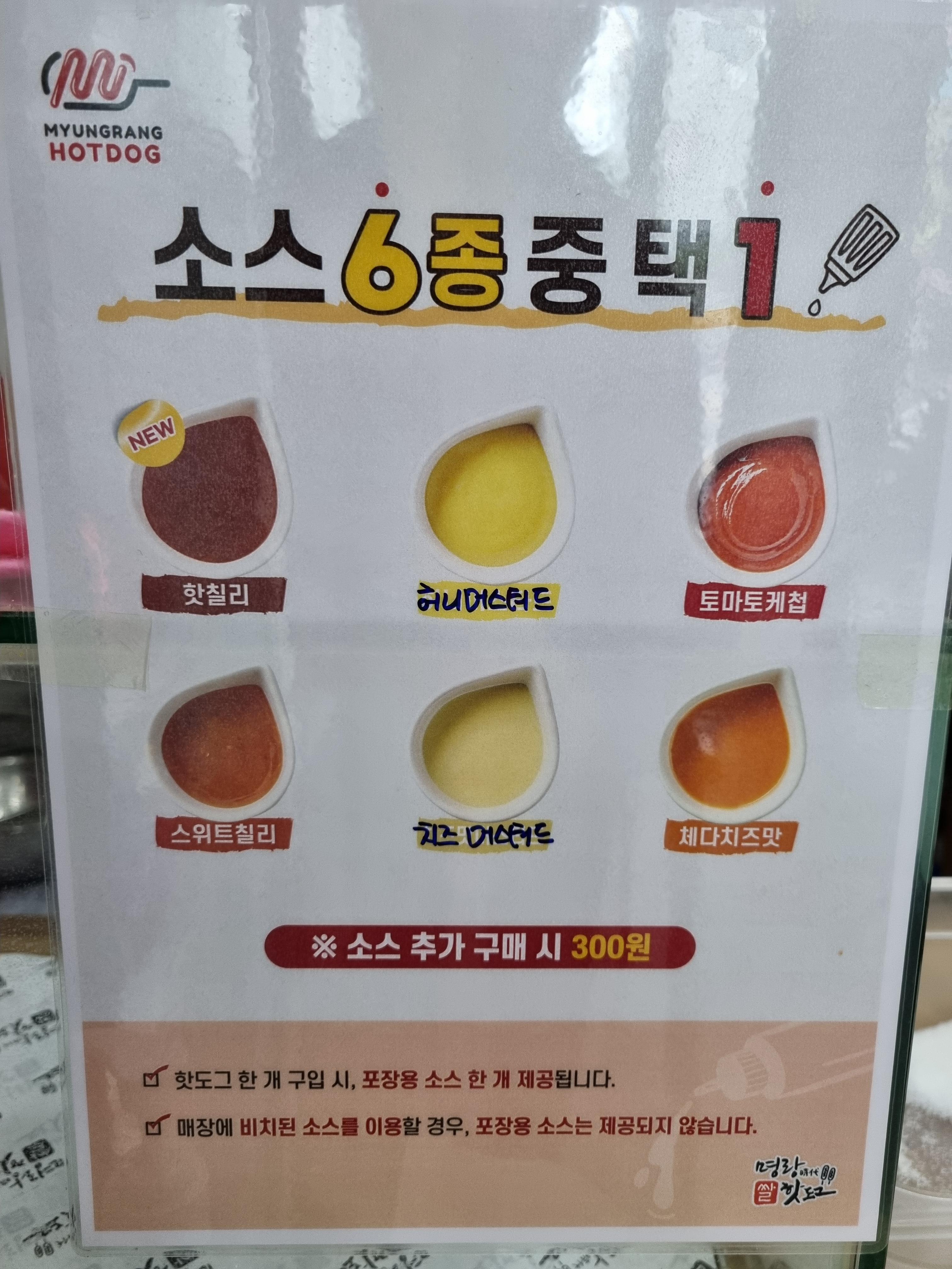 소스종류는 스위트칠리, 토마토케첩, 치즈머스터드, 체다치즈맛, 핫칠리, 허니머스터드가 있는데 필자는 가장 많이 나가는 스위트칠리와 토마토케참 소스를 선택했습니다.