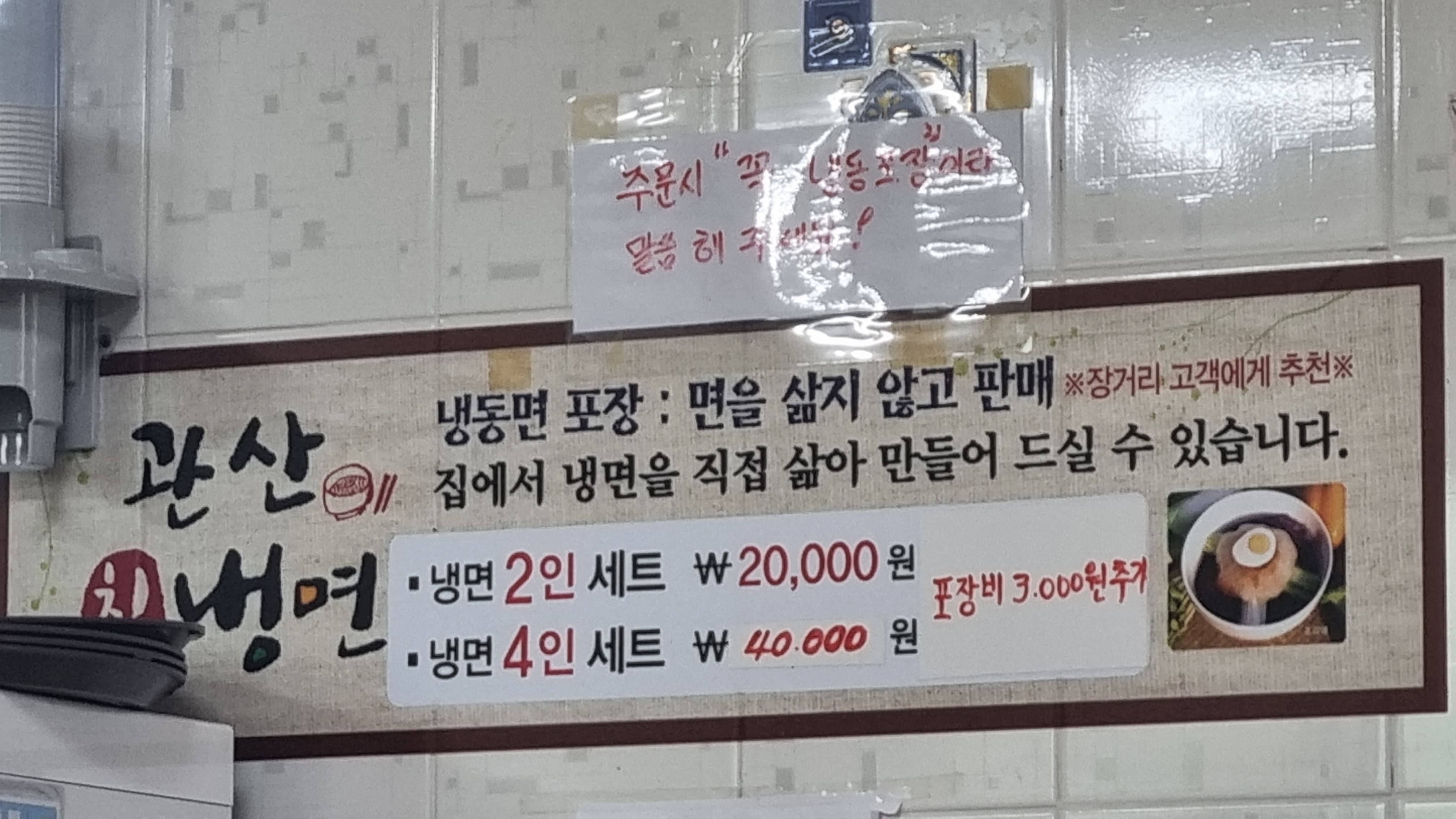 건물은 상당히 오래된 것을 보이는데 식당이 상당히 오래된 곳이다고 합니다. 냉면으로 유명한 것은 최소 몇십 년은 된듯한고 식당 자체는 관산식당으로 영업한지는 최소 40년이 넘었습니다.
