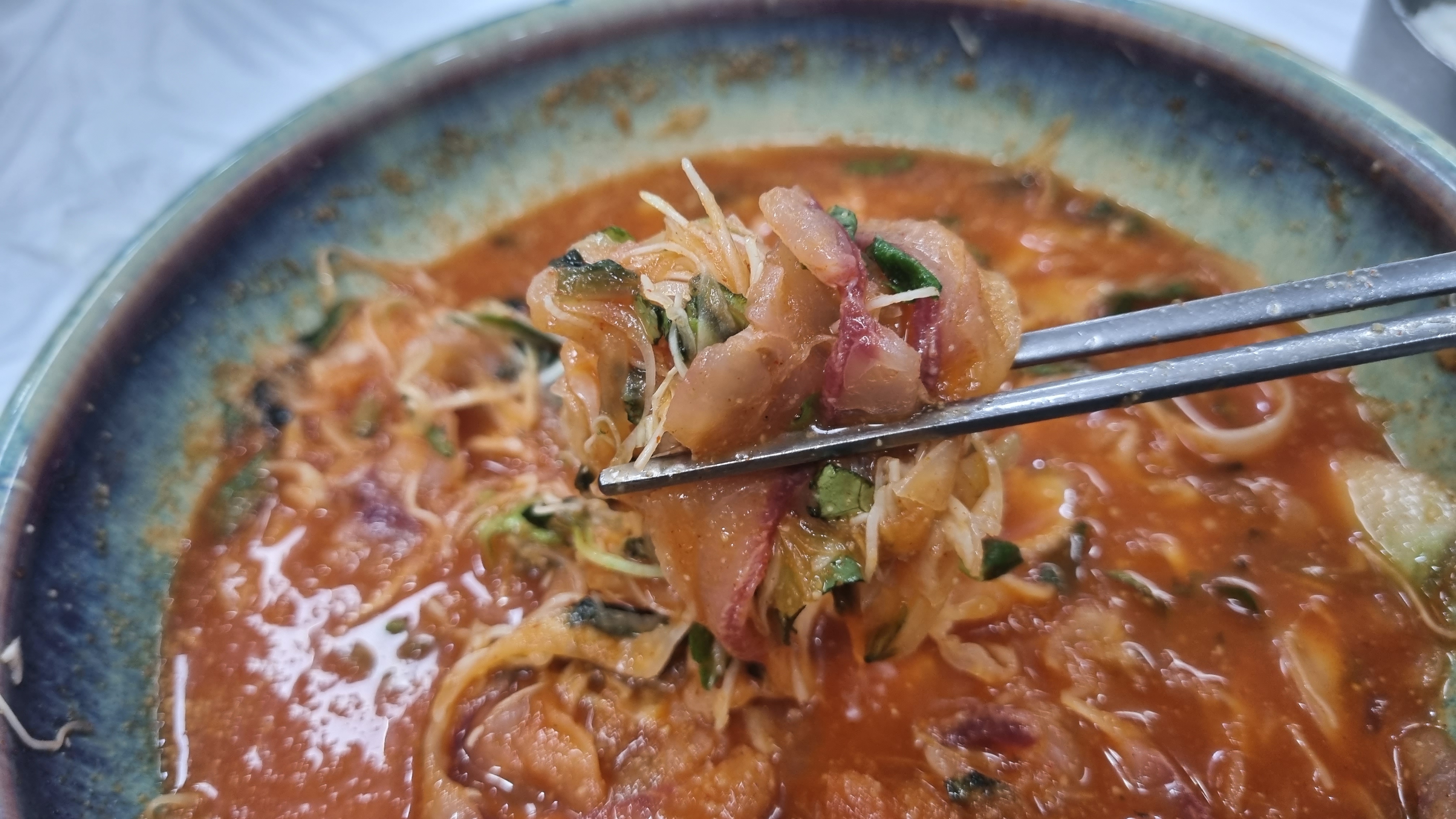 물회의 맛은 정말 맛있고 씹는 식감도 특별하고 좋습니다. 특히 생선회가 생각보다 많아 좋았으며 싱싱함이 더해져 맛을 진하게 느낄 수 있습니다.