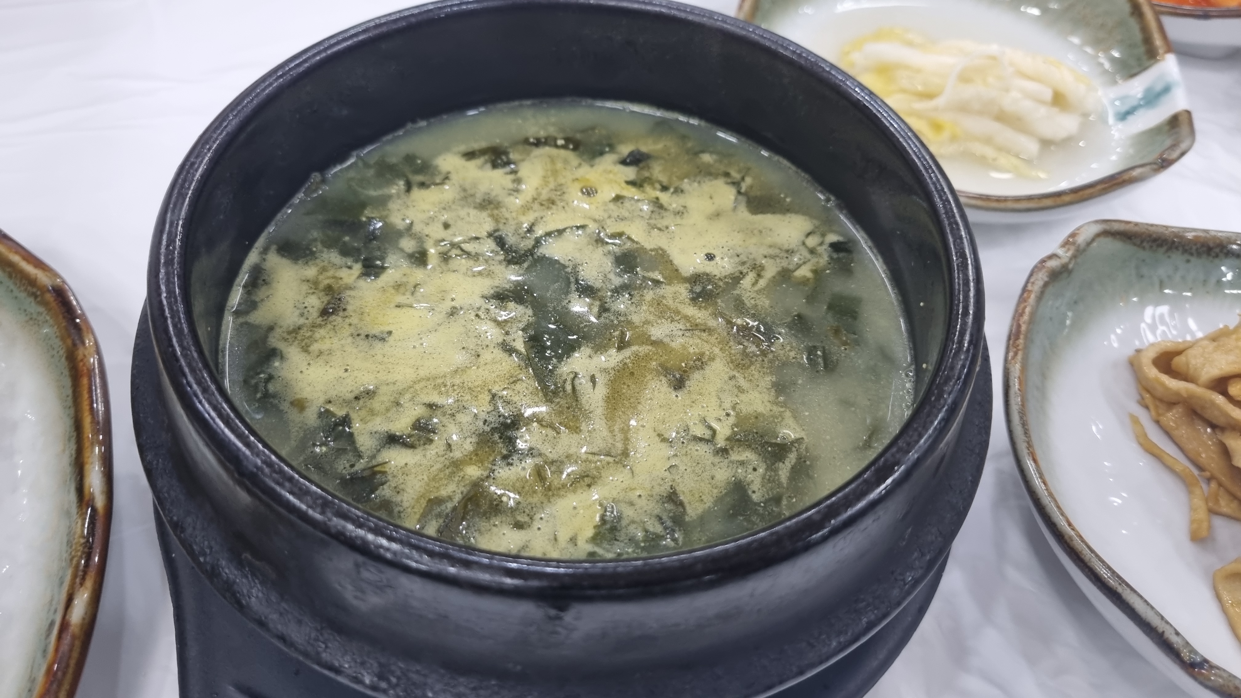 이것은 전복미역국으로 시원하고 국물이 입맛이 딱 맞았습니다. 속에 전복이 들어 있는데 일행 인원수에 따라 전복이 한 개씩 들어있어 1인당 한개씩 먹을 수 있는 기본 음식입니다.