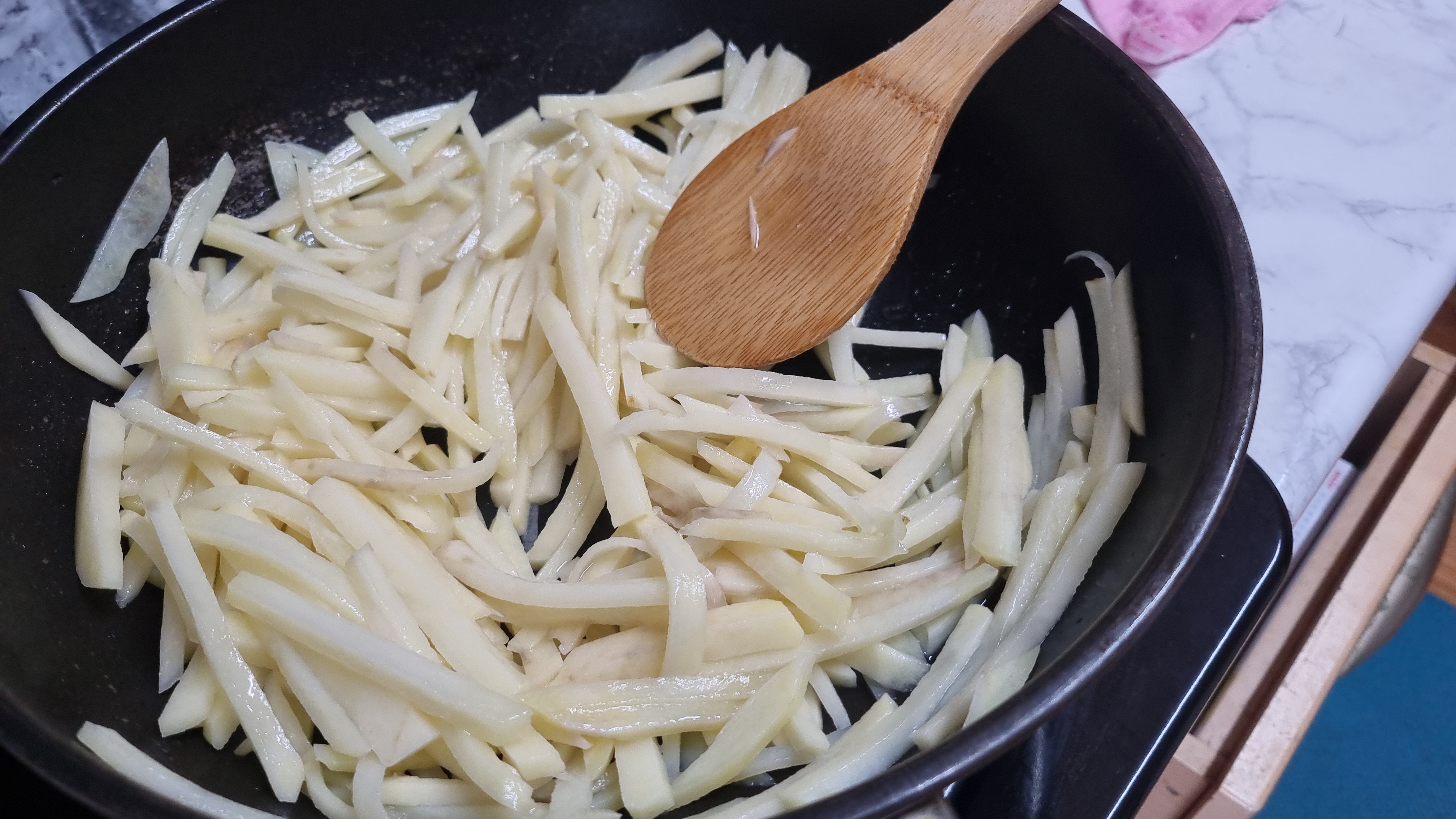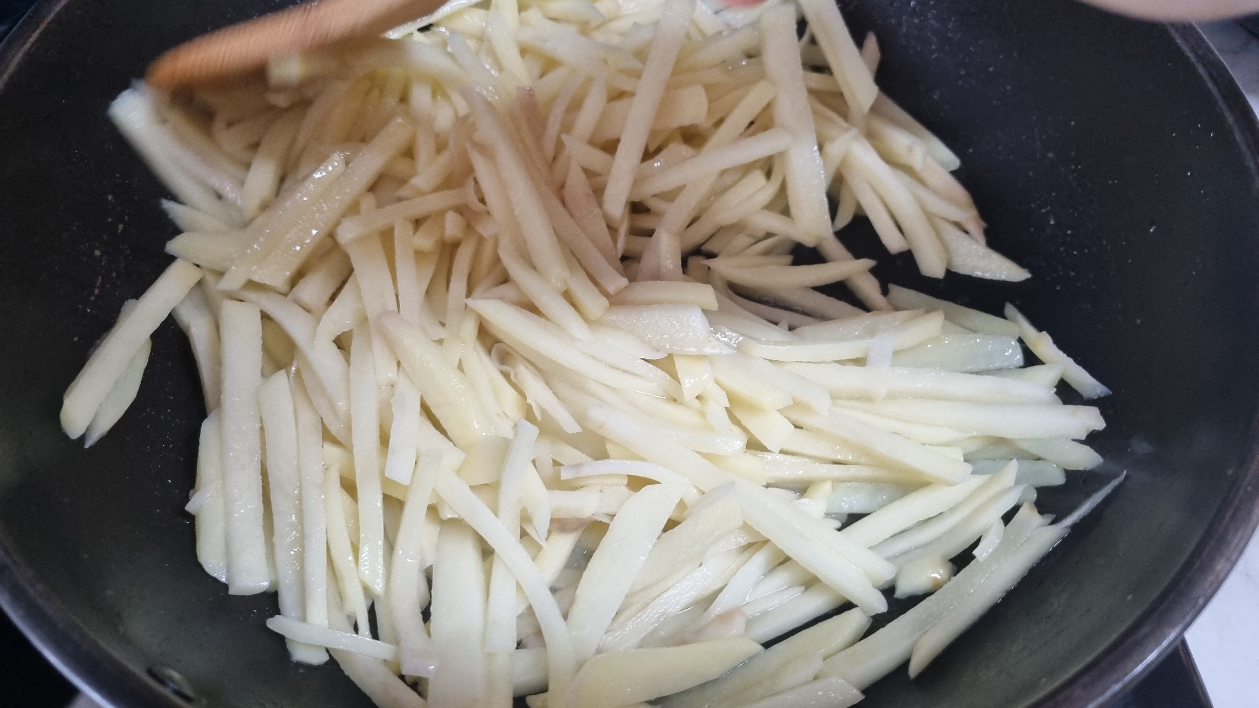 간을 맞추기 힘들면 소금을 처음엔 조금만 넣어 볶아주고 거의 볶는 것이 끝나갈 무렵 맛을 보면서 더 추가하시면 되는데 감자볶음은 조금 싱거워도 맛있으니 소금은 조금만 넣으신 것이 좋습니다.