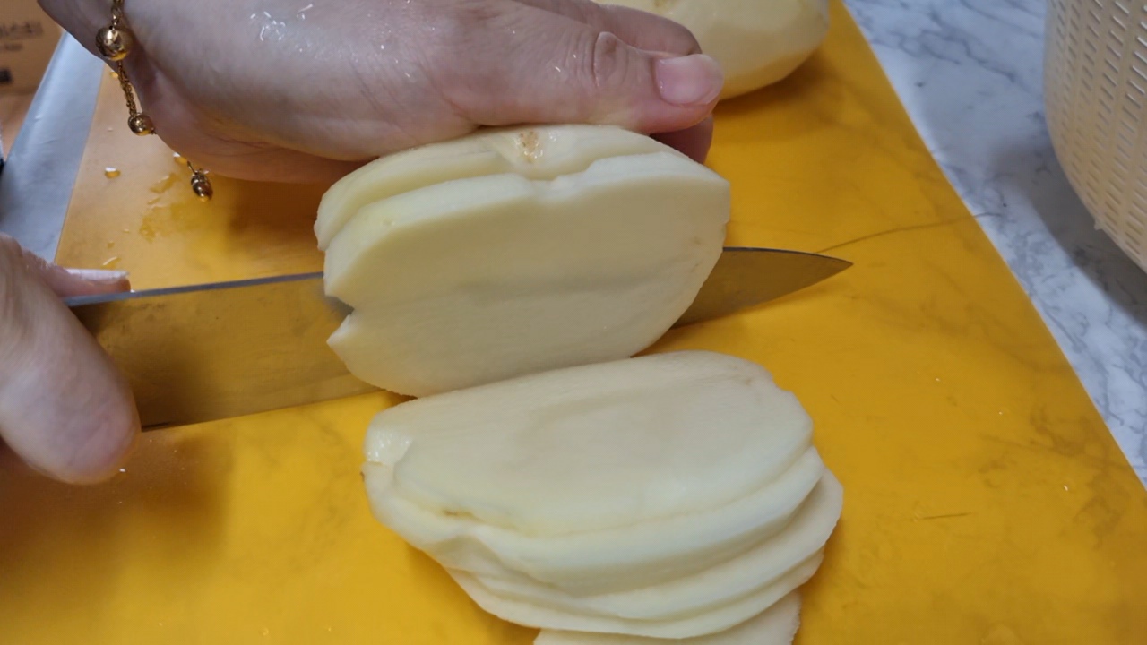 크기는 본인들이 먹기 좋은 크기로 자르면 되는데 너무 두껍게 자르면 볶는 시간이 많이 걸리고 부분적으로 익지 않은 경우도 있으므로 위사진처럼 적당한 크기로 자르면 됩니다.