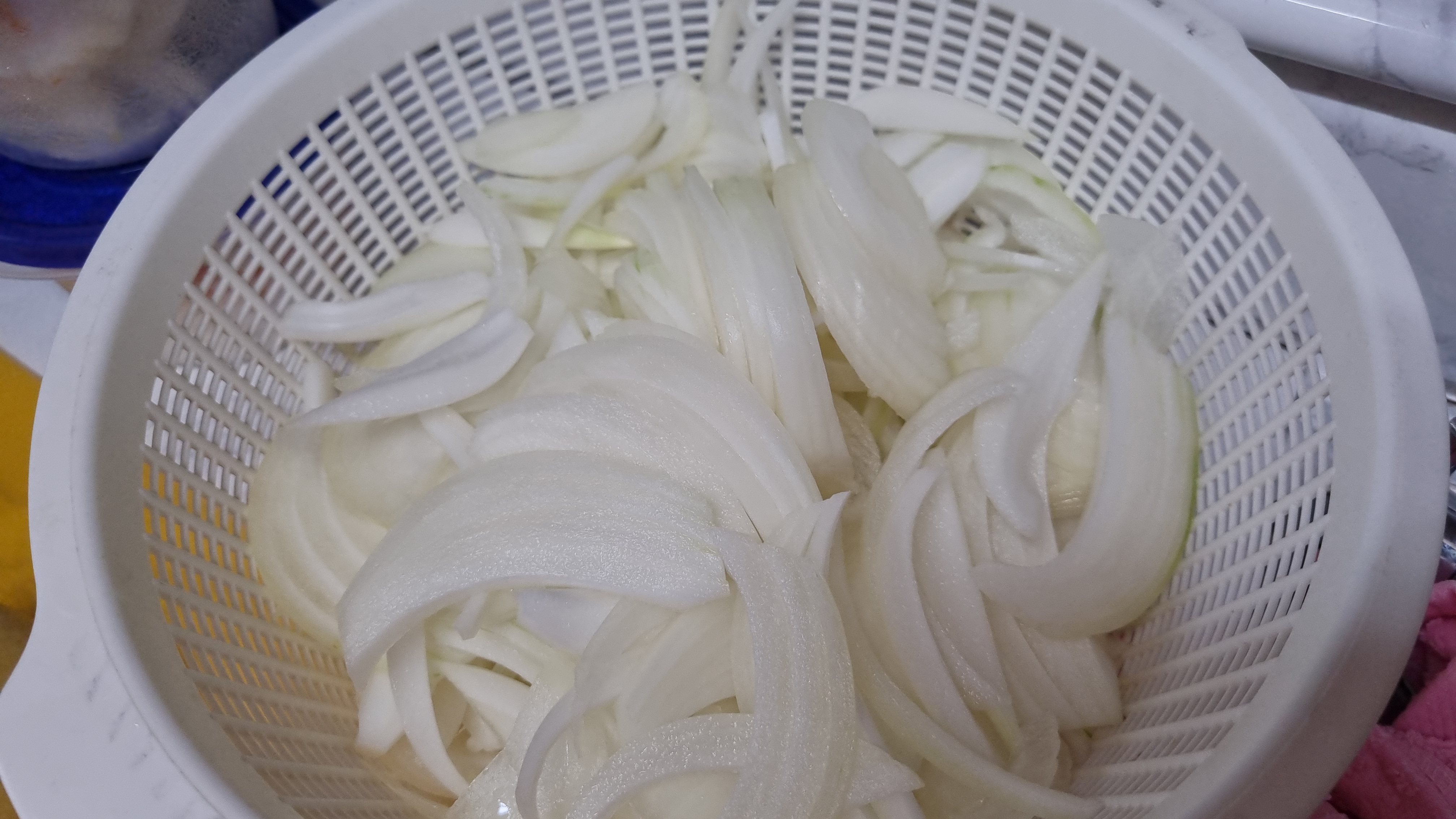 적당한 크기로 잘랐으면 이제는 반드시 물에 담그어 놓아야 합니다. 이유는 프라이팬에 볶을 때 달라붙지 않게 하기 위해서인데 이과정을 생략한다면 조리가 힘들 정도로 바닥에 달라붙는 경우가 많습니다.