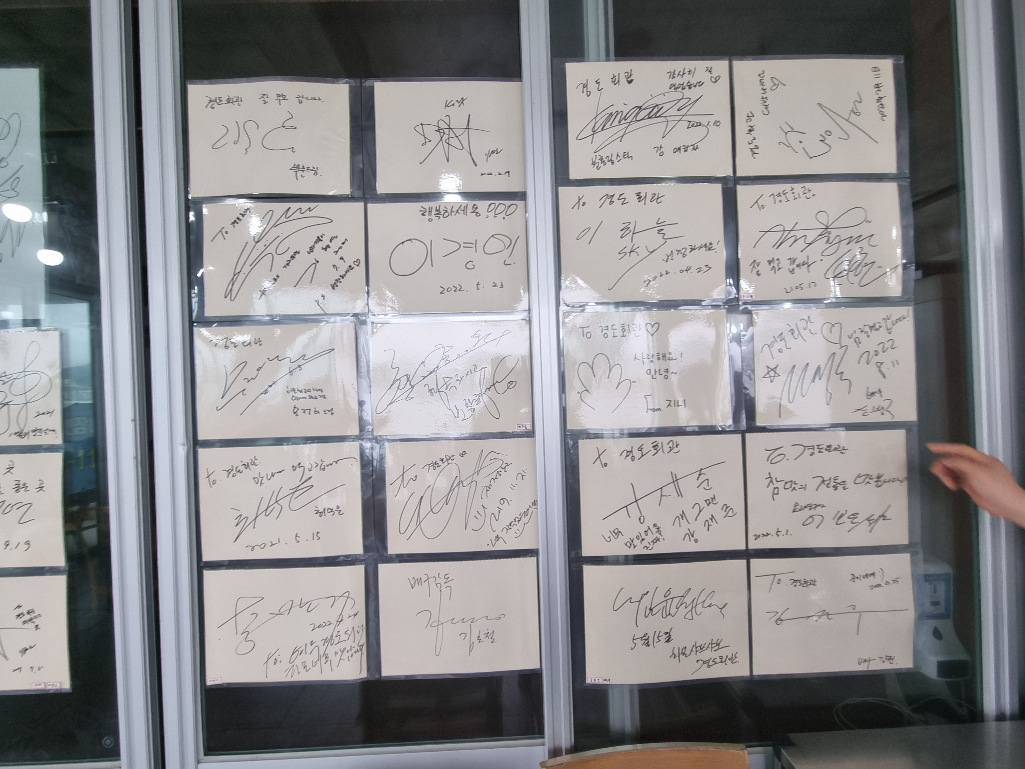 이렇게 경도회관에서의 갯장어를 맛있게 먹었는데 전체적으로 만족했습니다. 나오는데 여러 유명인들도 많이 다녀갔는데 싸인이 위의 사진처럼 전시되어 있습니다.