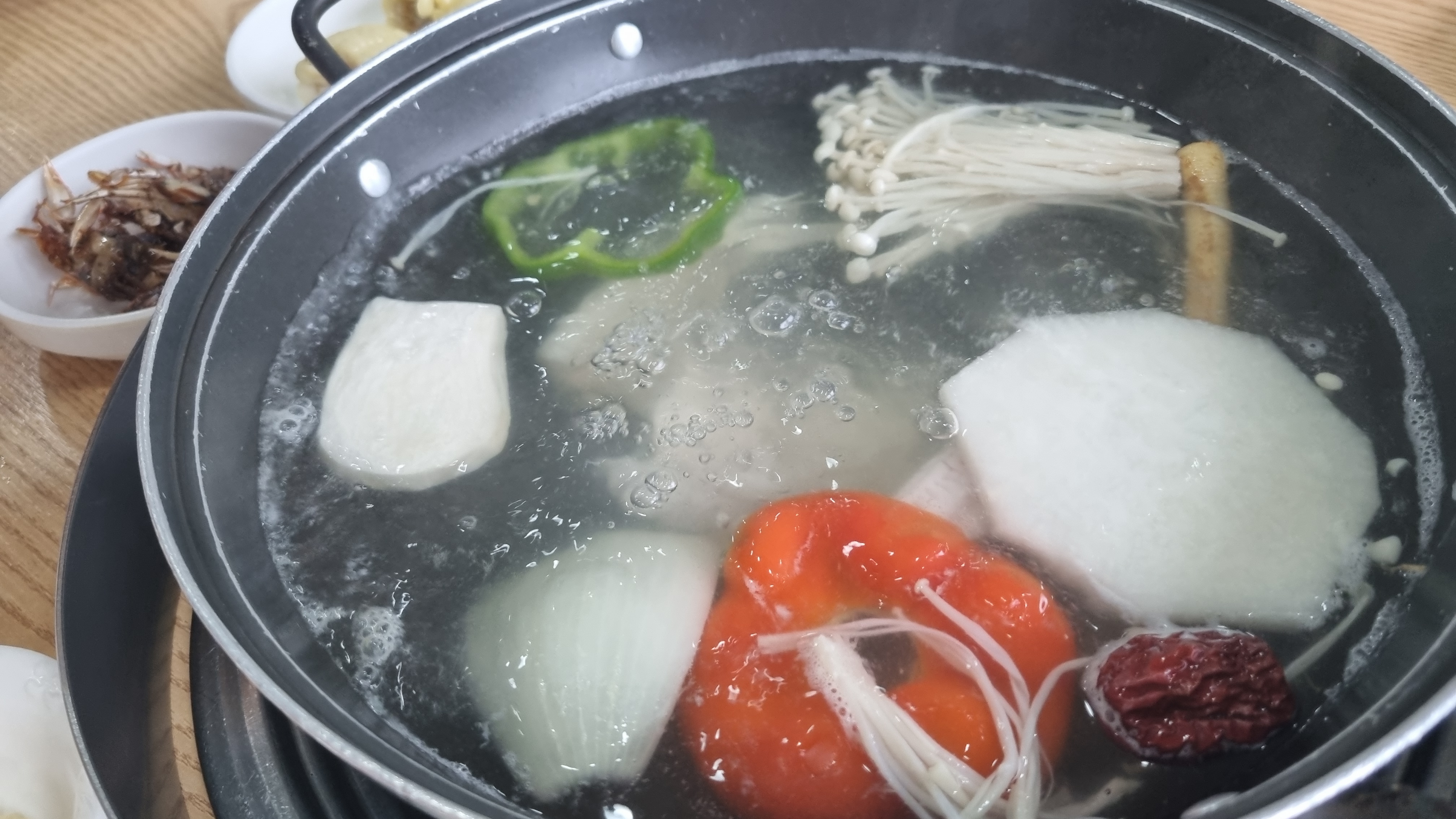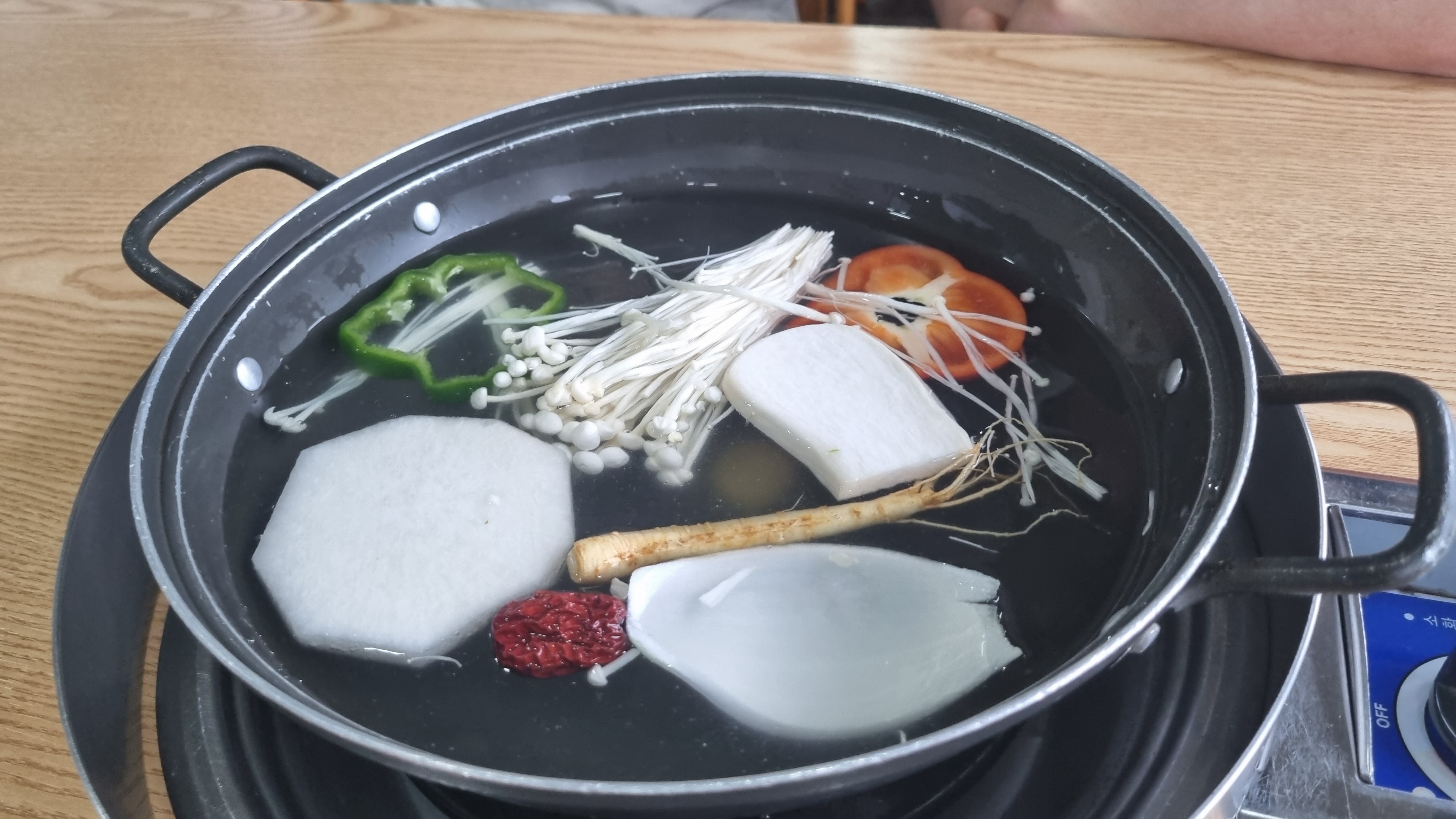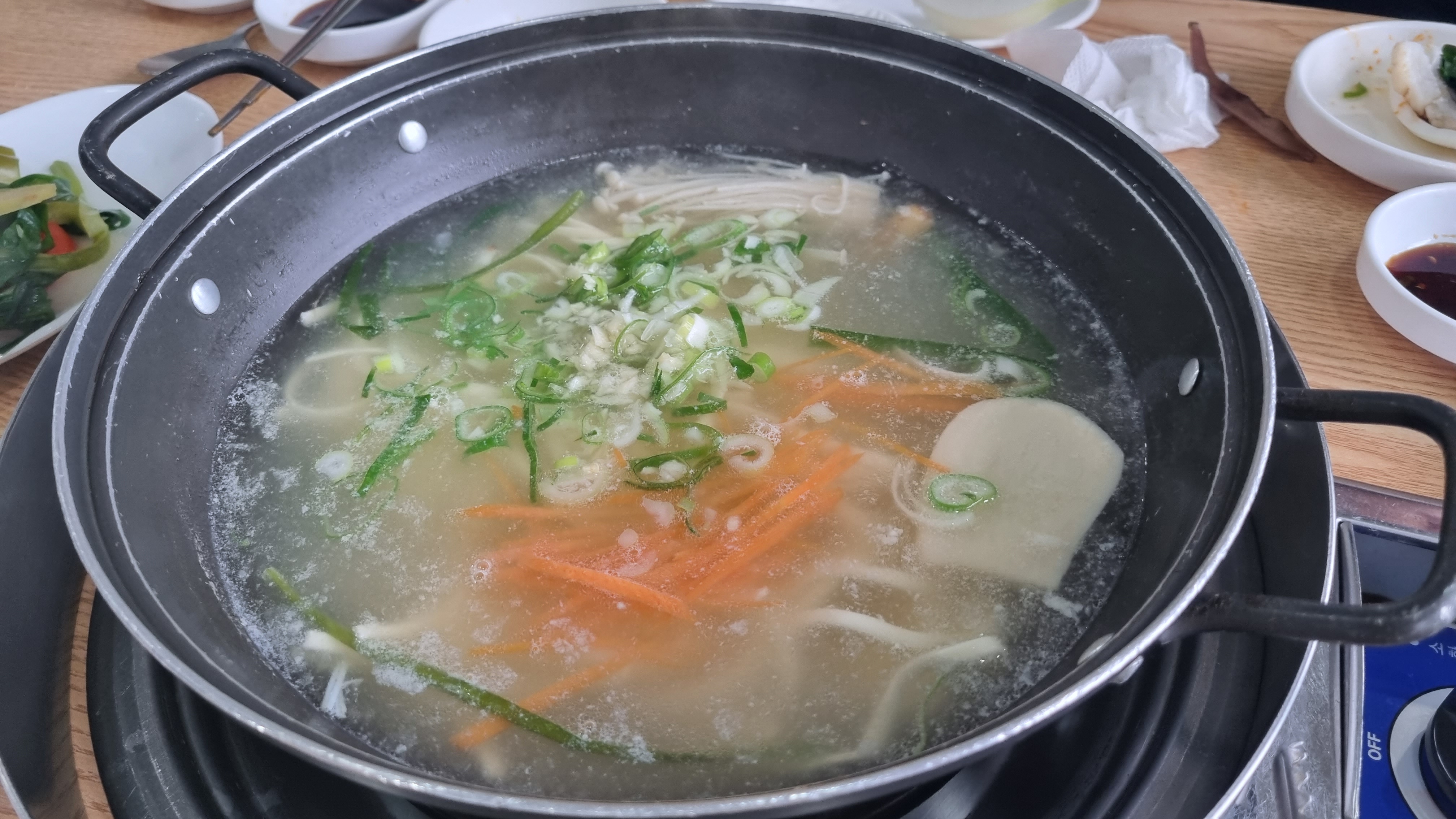 샤부샤부로 곯은 육수에 담가서 먹는데 필자는 정확히 5초정도만 담그어 먹으면 제일 맛있었습니다. 쫄깃한 맛이 그대로 느껴지고 식감도 아주 좋습니다.