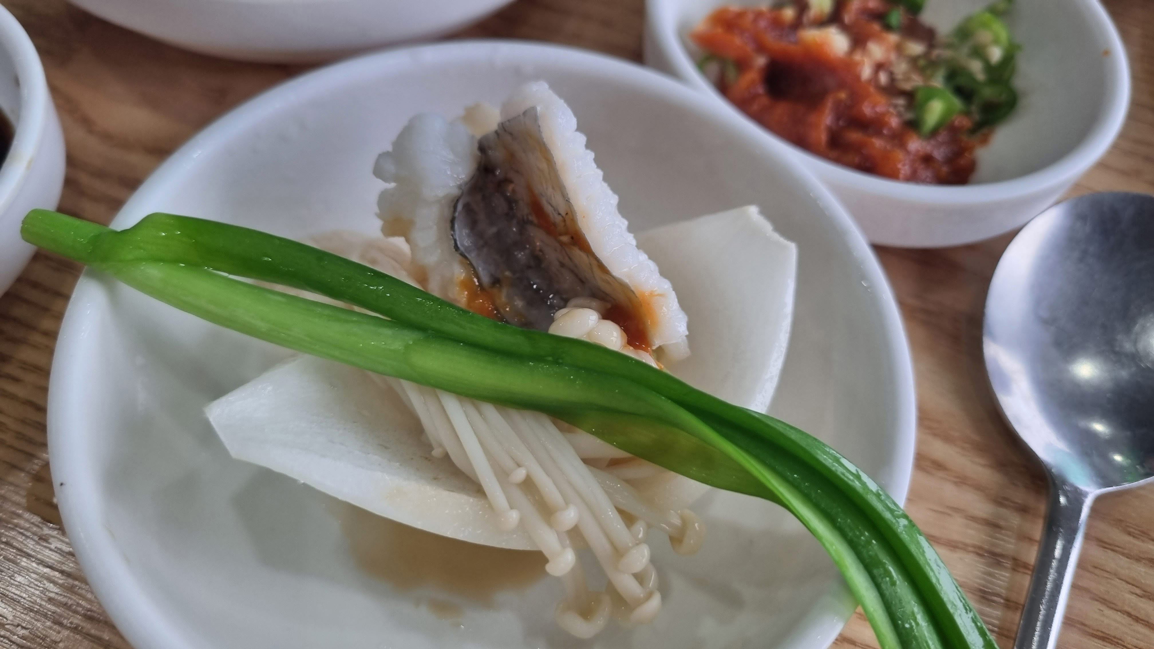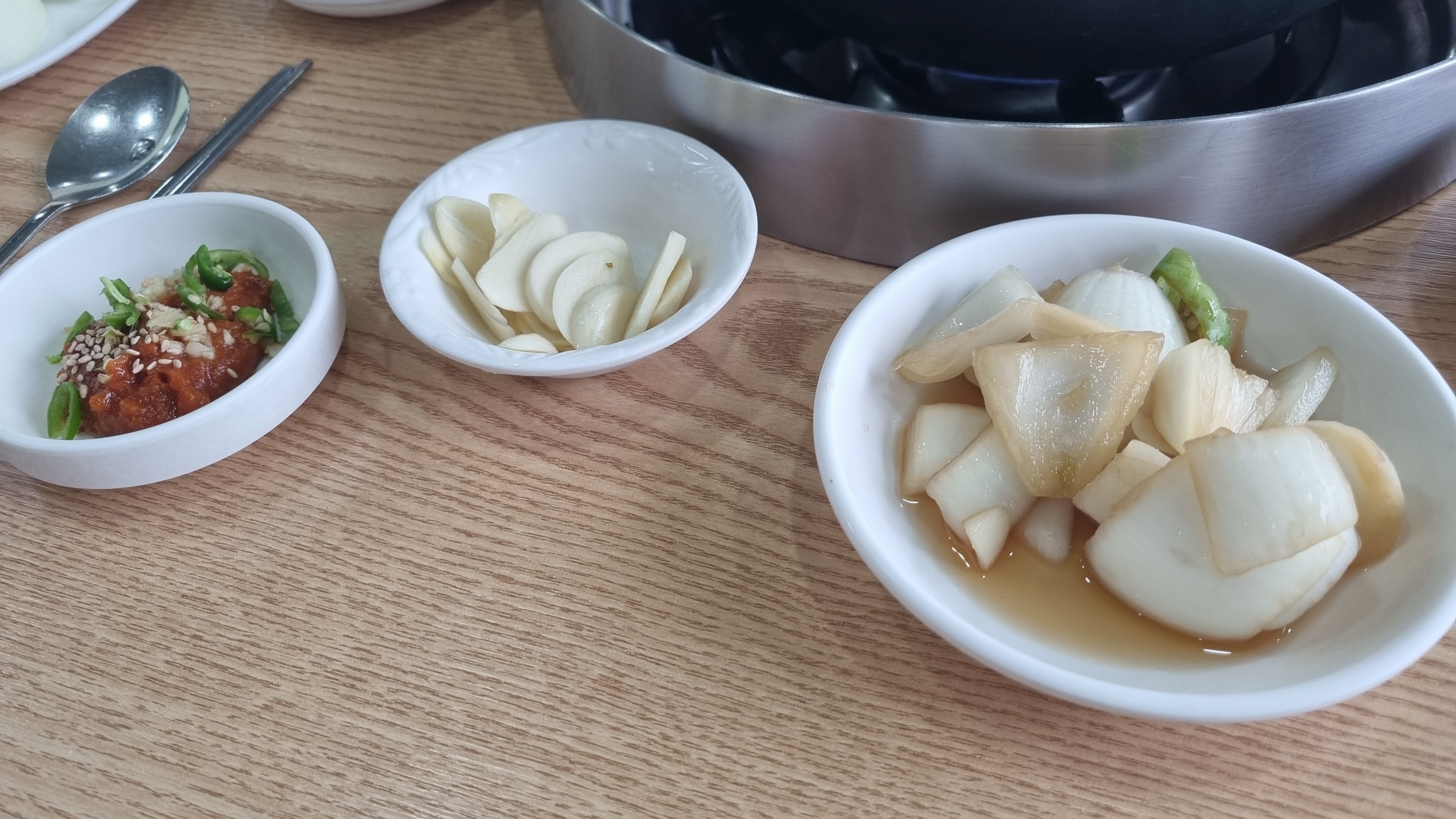 기본반찬은 여러 가지가 나오는데 일반 생선회집에서 먹는 것보다는 당연히 곁들이찬이 적게 나온다고 생각해야 합니다. 여수에서 일반생선회 130,000원짜리 드시면 기본반찬으로 해산물도 꽤 나오는데 하모는 워낙 비싼 음식이라 그렇게 나오지 않습니다.