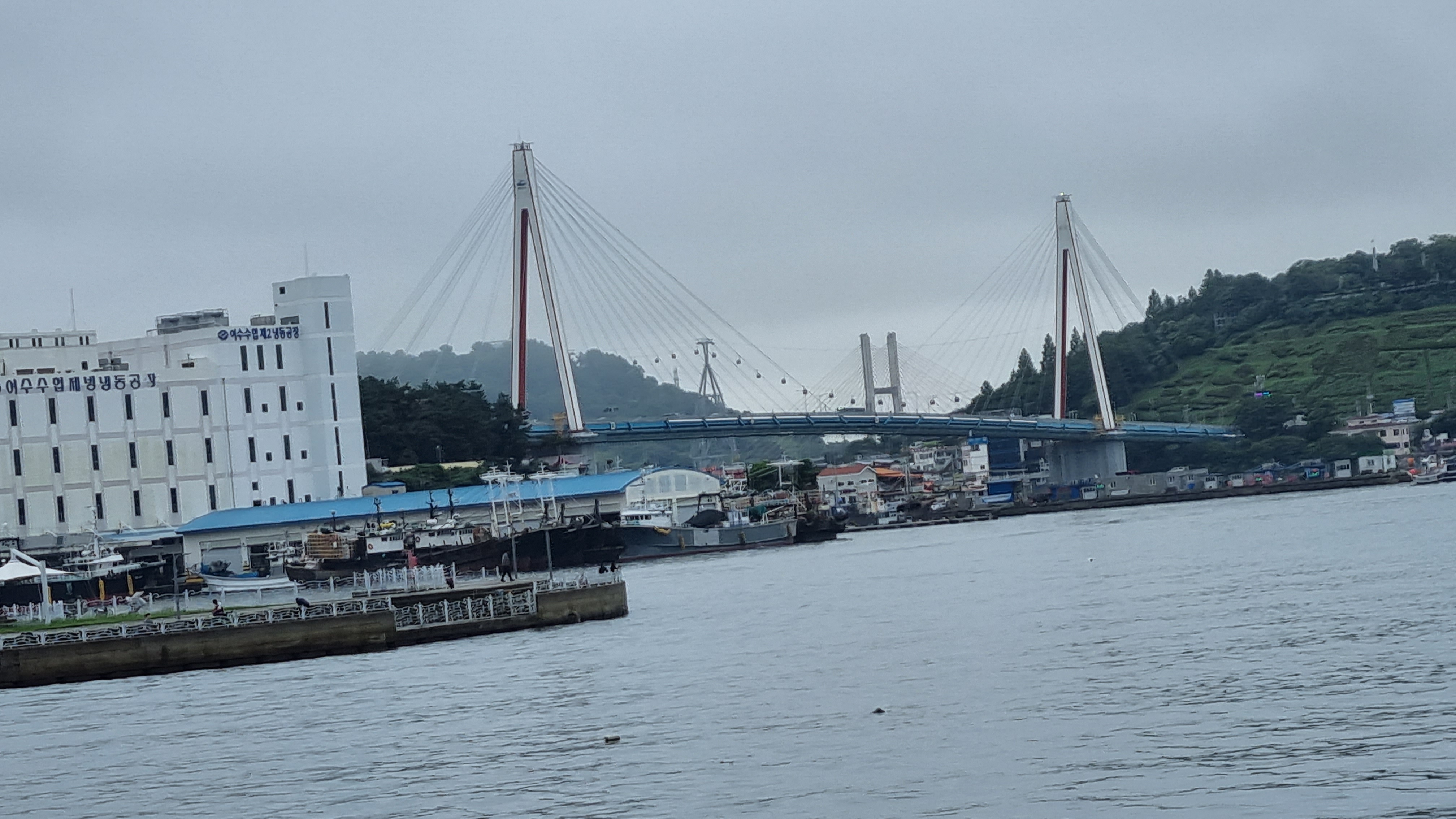 배가 금방 도착하기 때문에 내부에 들어가지 않고 선상에서 바다를 감상했습니다. 바로 윗 사진에서 제1돌산대교가 보이고 그 너머로 제2대교가 보입니다.