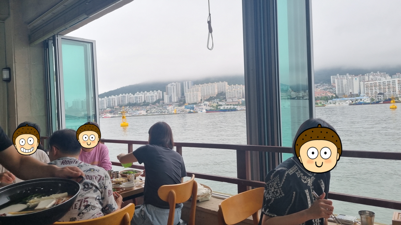 저기 창문너머로 손님들이 음식을 먹고 있는 모습이 보이는데 바로 바다를 보고 분위기 좋게 음식을 드실 수 있습니다.