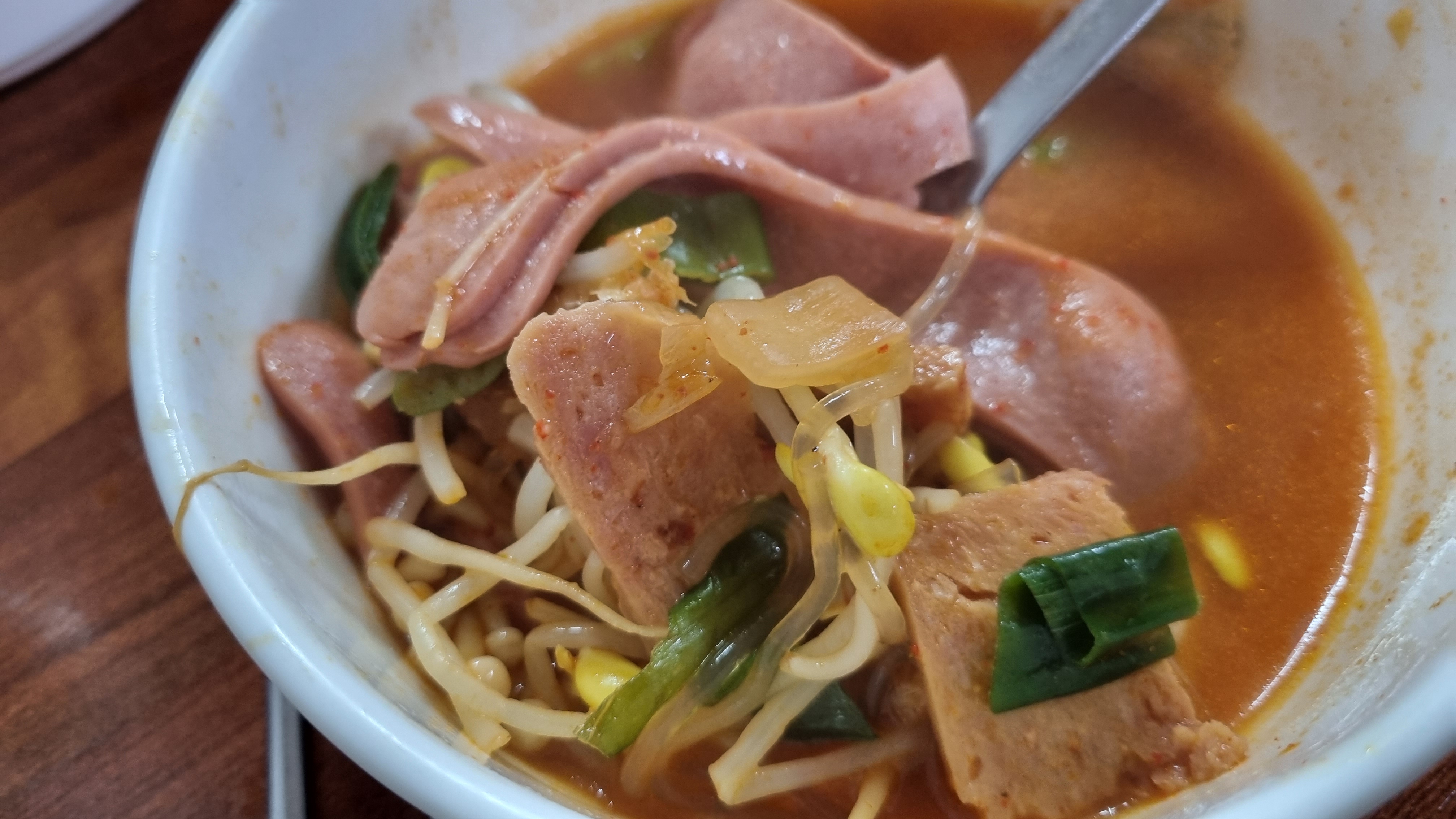 햄과 소시지를 추가해서인지 내용물이 정말 푸짐하여 오랜만에 밥과 함께 많이 먹었으며 팽이버섯과 콩나물이 있어 더 맛있는 듯합니다.