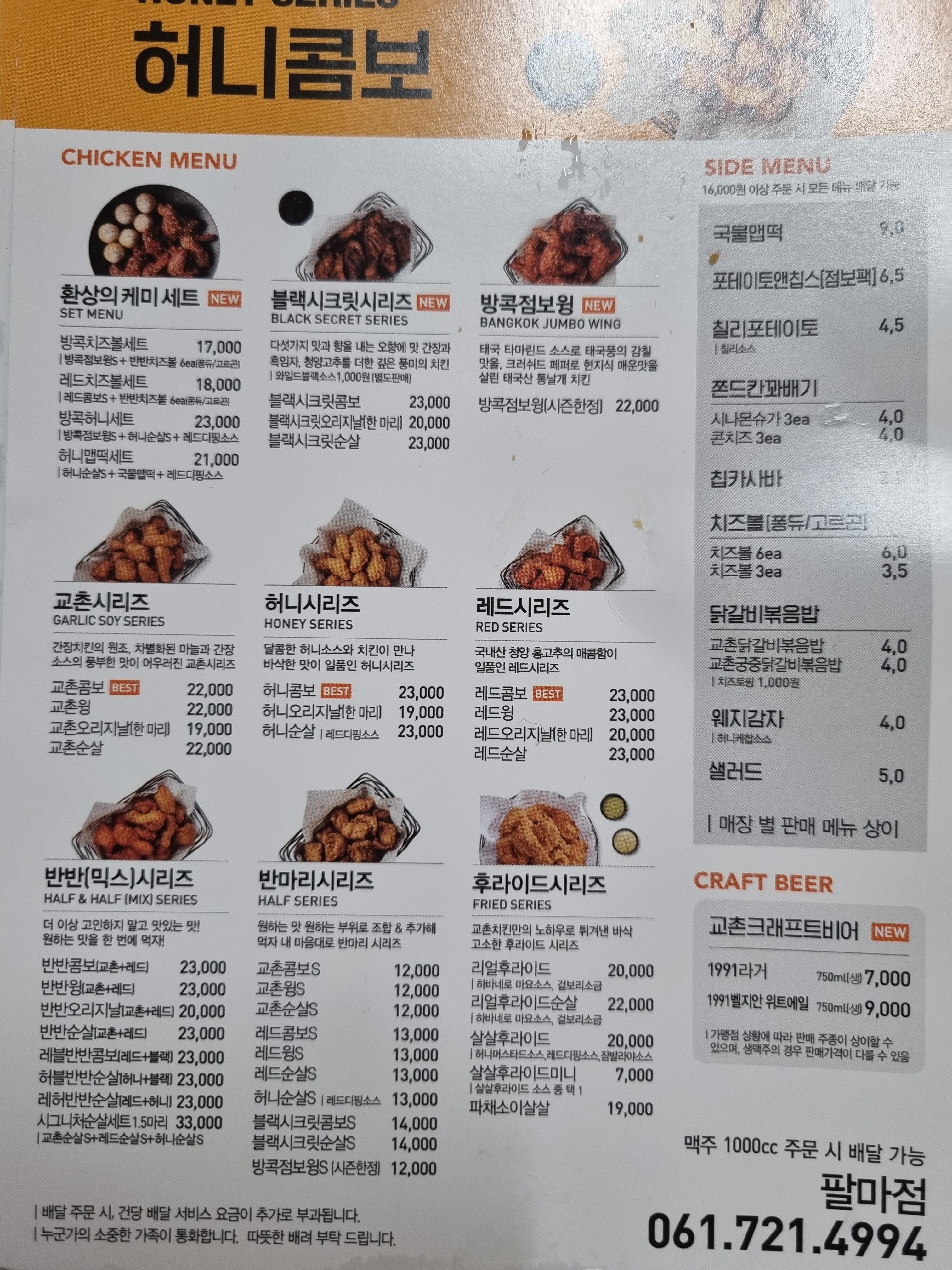 위의 사진 메뉴는 허니콤보입니다.