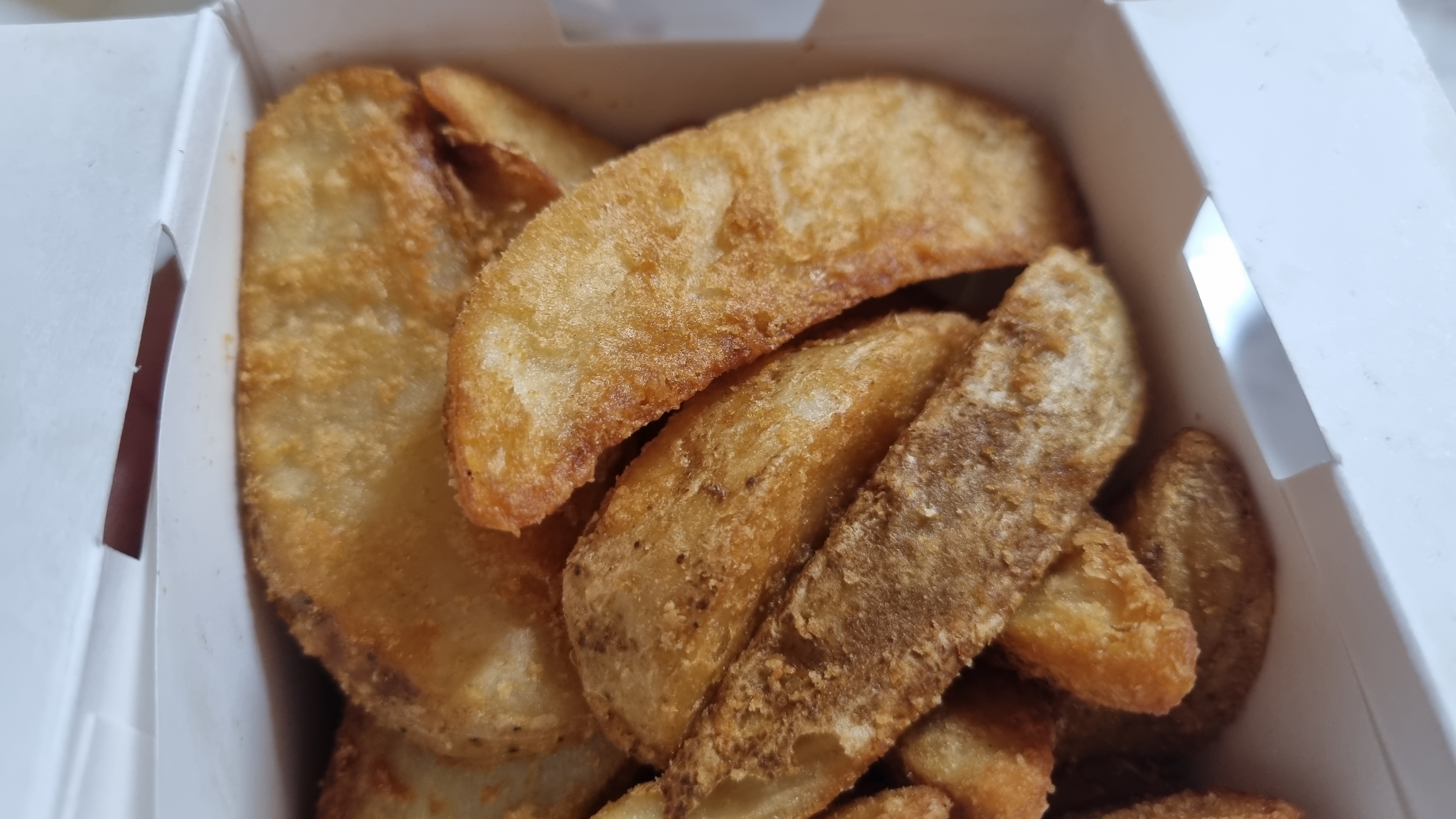 드실 때는 반드시 따뜻할 때 먹어야 하며 식어 버리면 맛이 정말 변신하여 다른 제품이 되어 있을 정도로 맛이 떨어지는 음식입니다. 근데 어쩔 때는 치킨보다 이것이 더 맛있을 때 있을 정도로 바삭한 감자맛의 느낌이 나주 좋습니다.