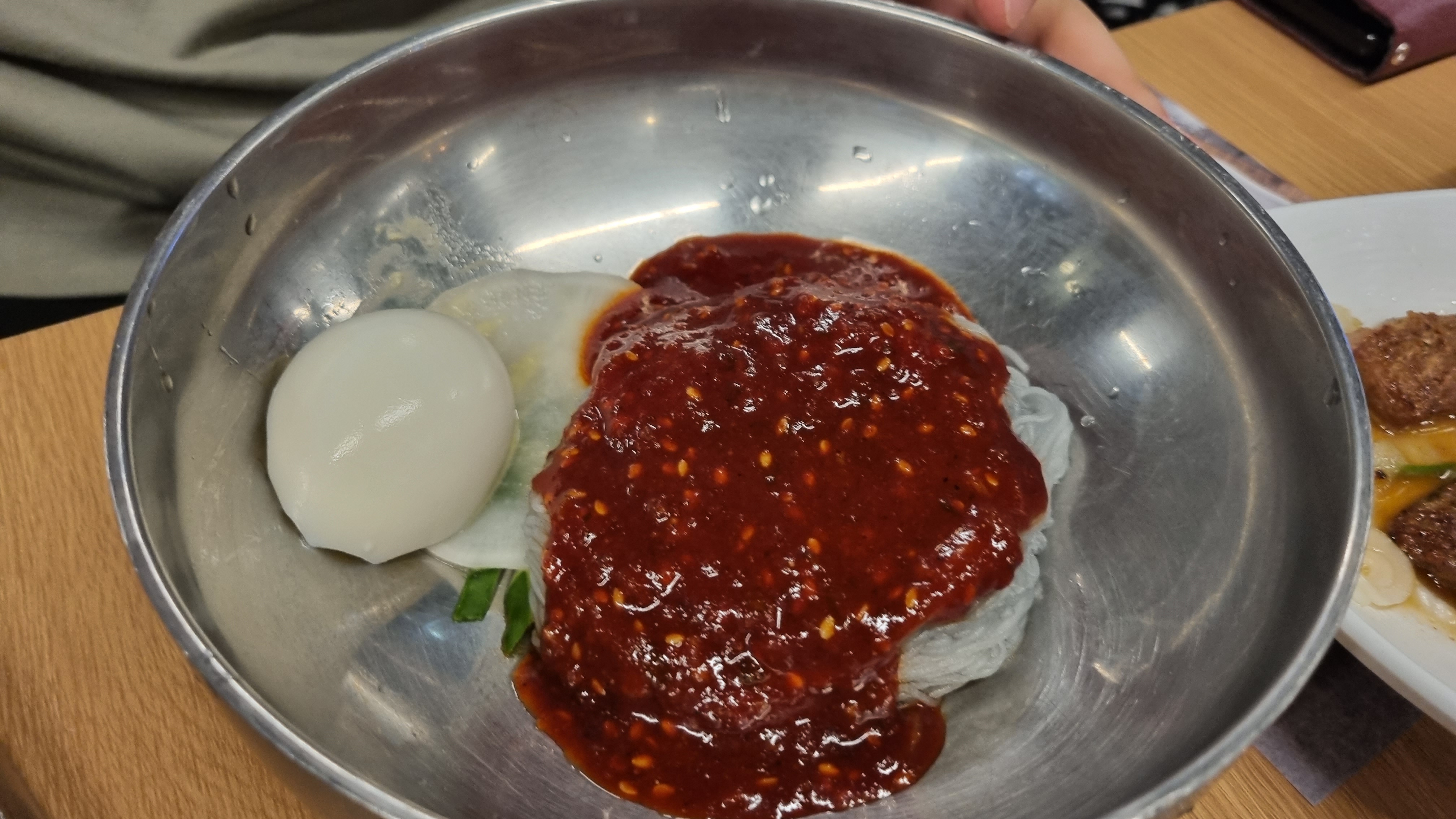 위의 사진이 물냉면이고 아래사진은 비빔냉면입니다. 개인적으로는 고기 먹은 이후에는 물냉면이 맛있고 그냥 냉면만 먹는다면 비냉이 더 맛있습니다.