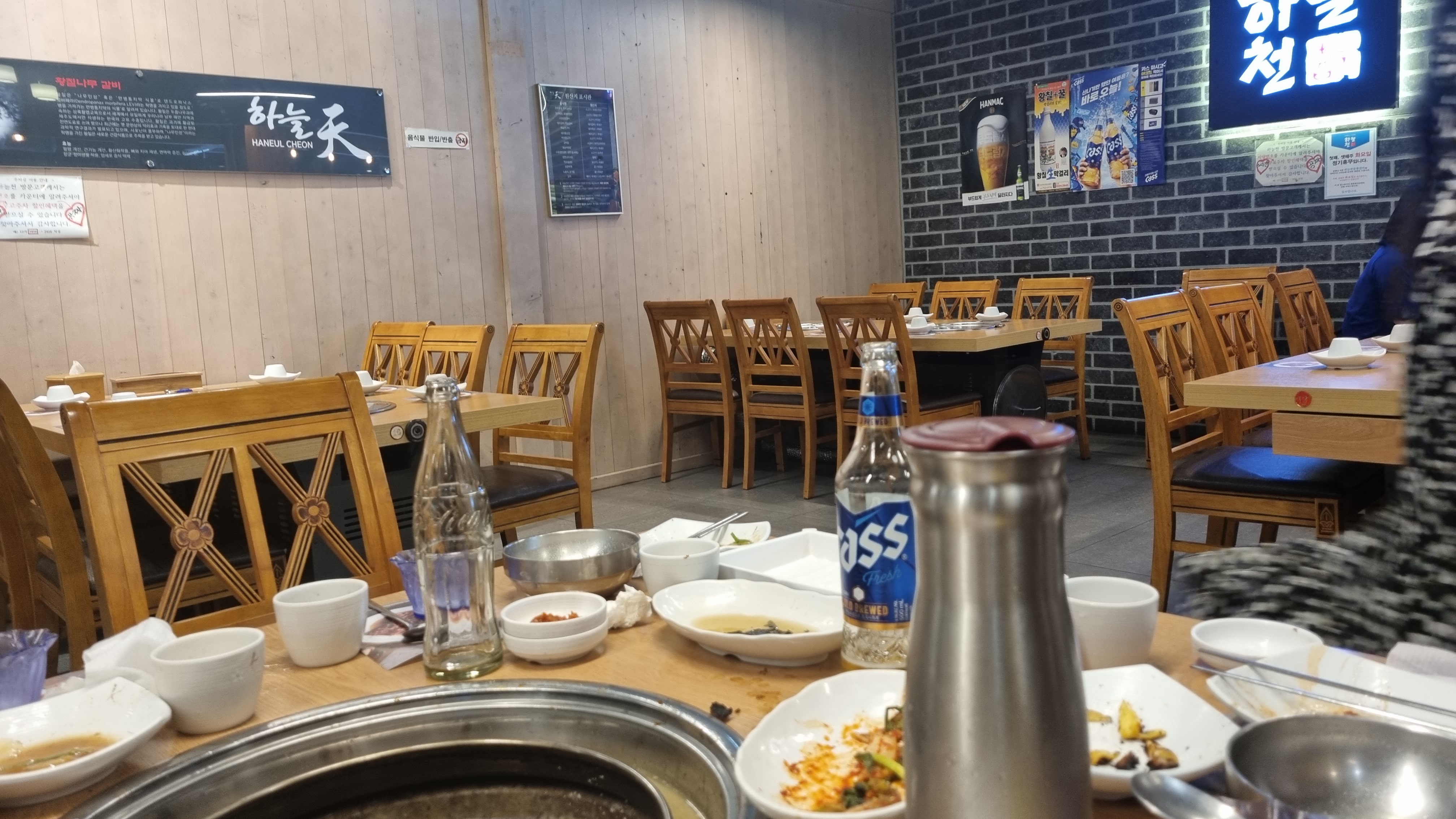 식당은 모두 입식 테이블로 되어 있고 홀이 크레 몇 개 있고 룸은 확인하지 못했습니다.