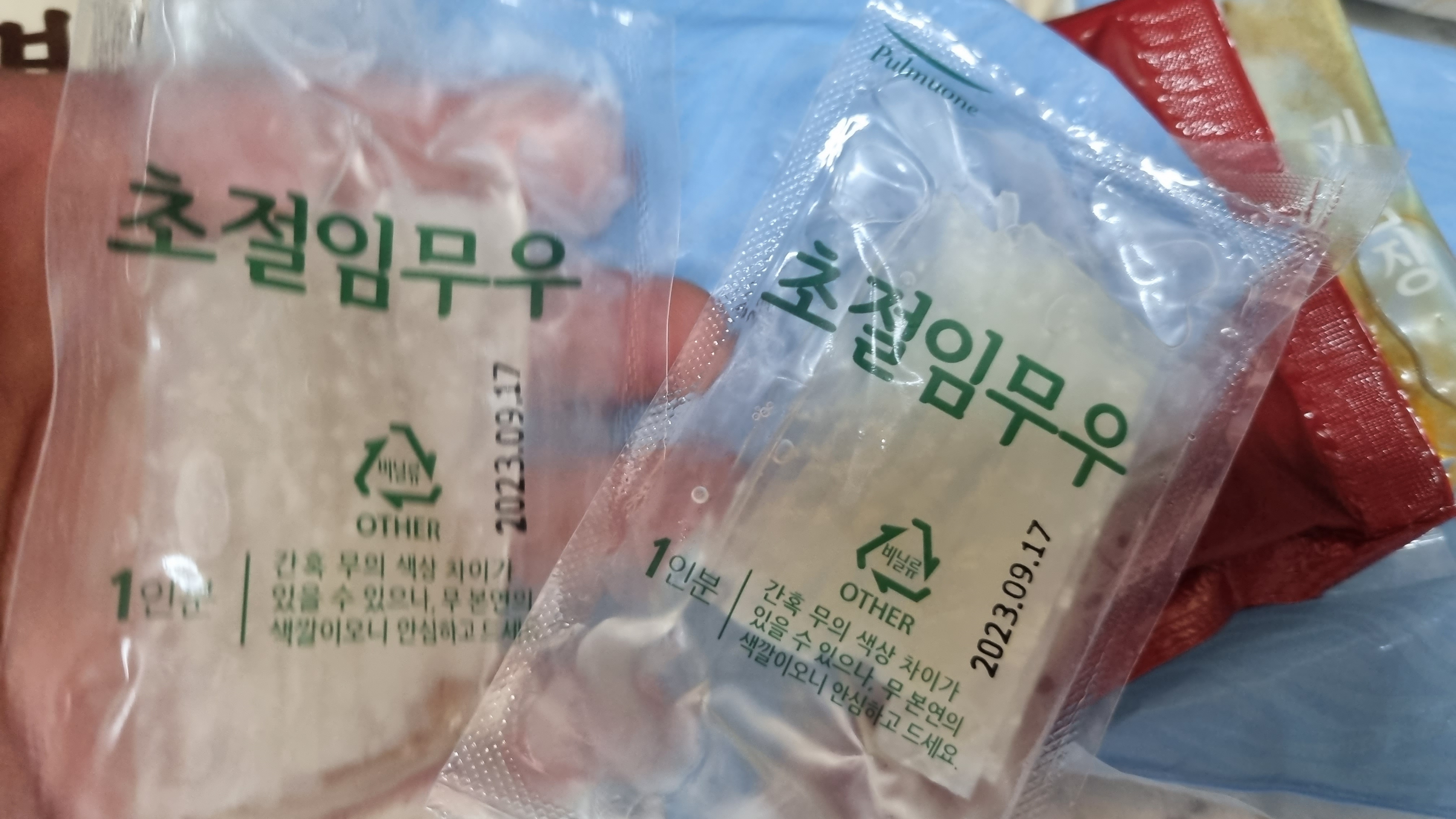 초절임무우는 비냉이나 물냉면 아무데나 넣어도 되는데 대부분 비빔냉면에 많이 넣어 드시는 경우가 많으며 그냥 반찬으로 드셔도 좋습니다.
