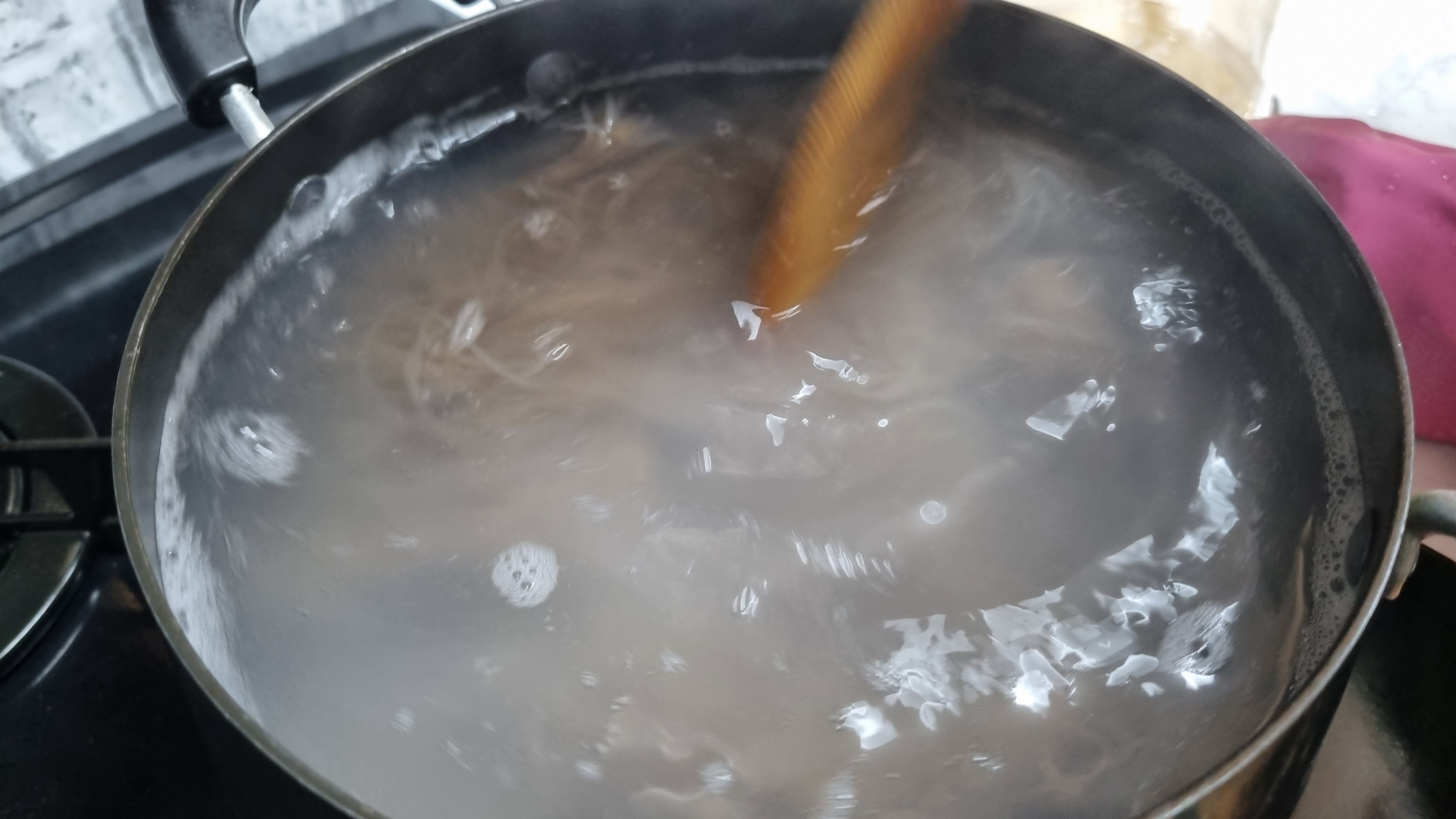 물이 끓으면 면을 살며시 넣어주시면 되고 이후 자주 저어주어 면이 잘 삶아지게 하여 주는데 계속 저저울 필요는 없고 2~3번 정도 저 주시면 됩니다.