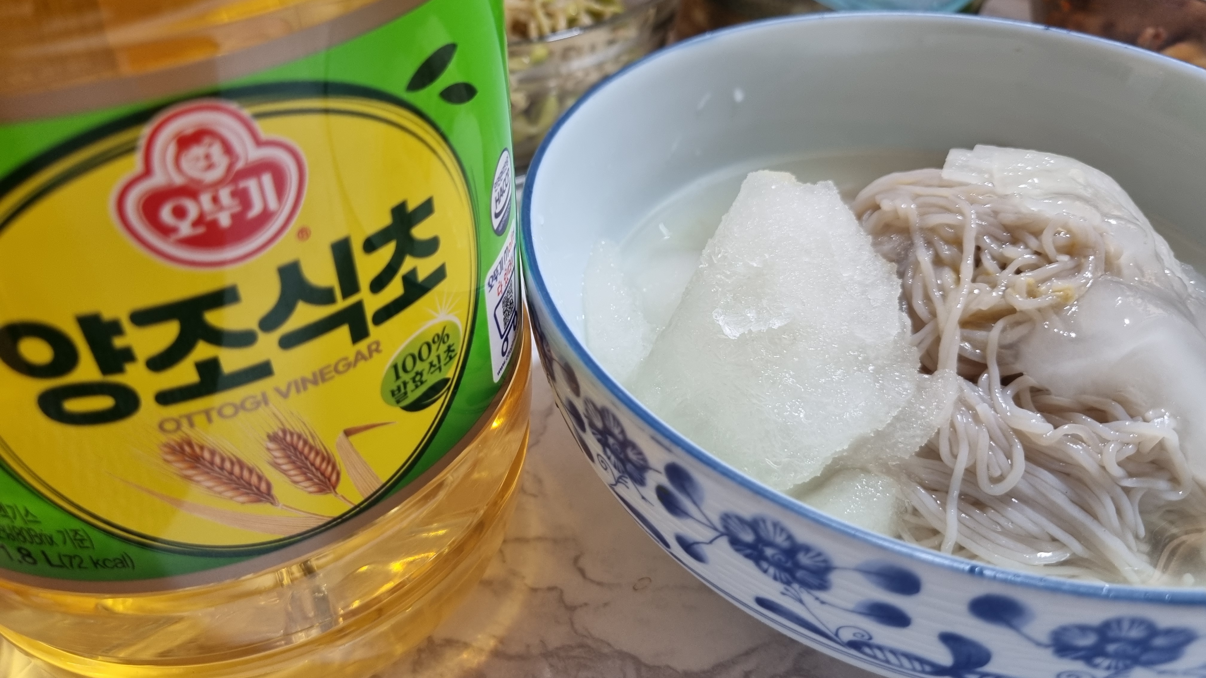 필자는 식초를 좋아하는데 물냉면에 식초를 2큰술을 넣었는데 확실히 더 시원한 느낌에 세콤한 맛이 냉면의 맛을 더해 주어 다 맛있게 먹을 수 있었습니다.