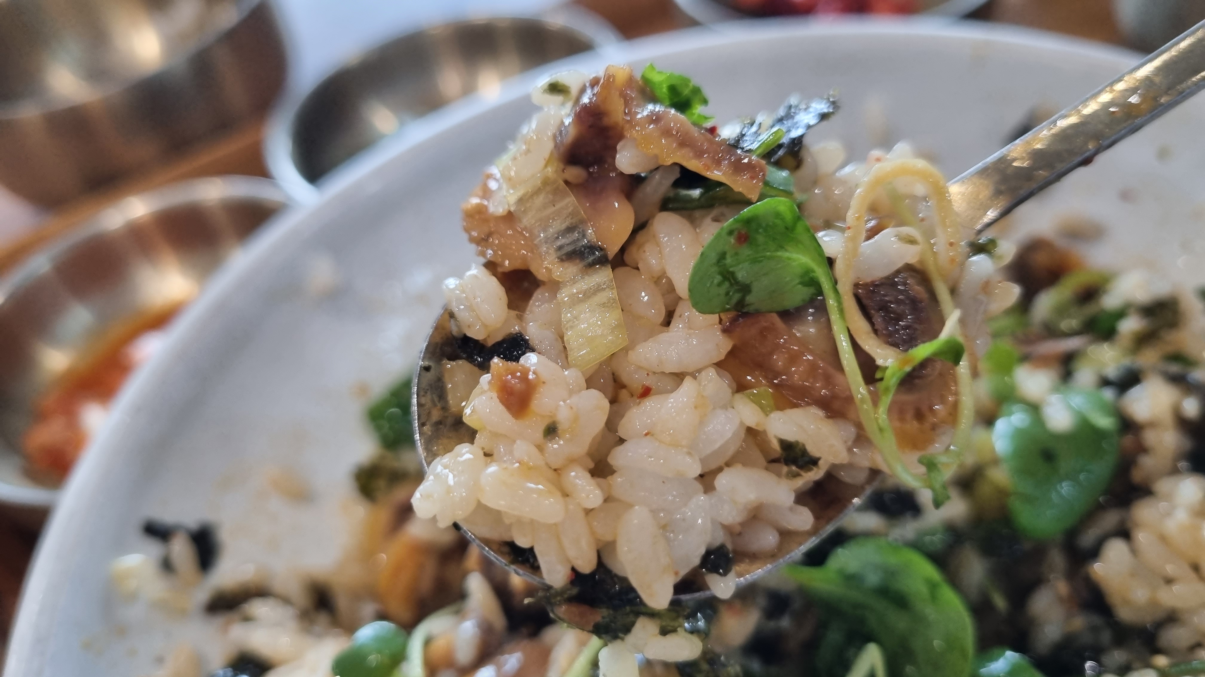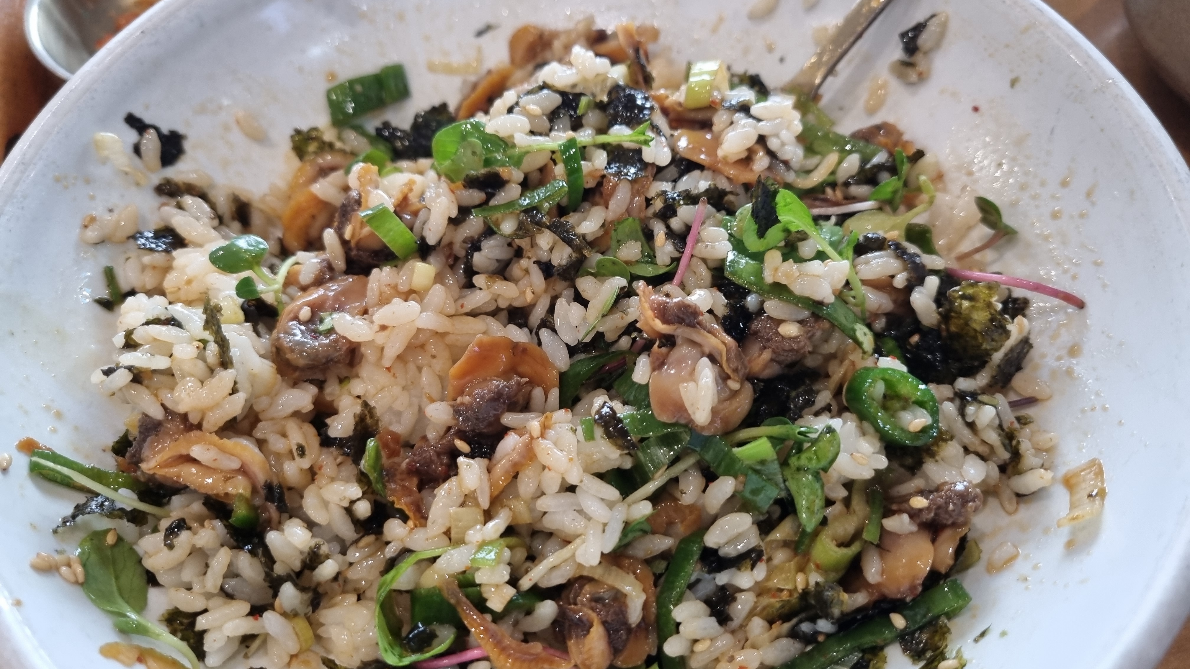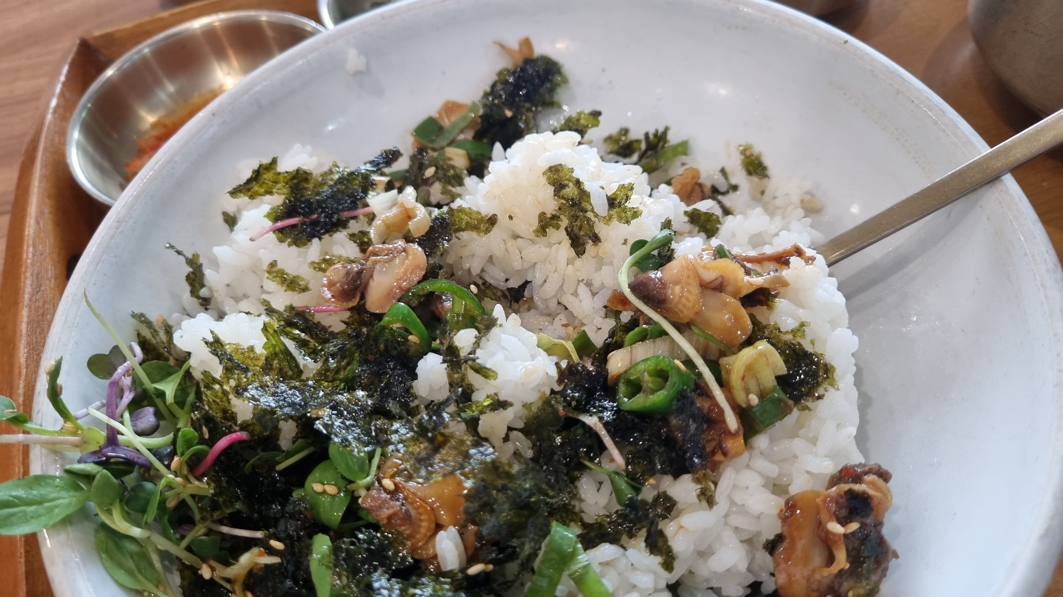 비빔밥 개념이라 공깃밥을 비볐는데 우와 생각보다 꼬막은 많이 들어 있었습니다. 양념이나 간도 잘 맛있고 야채와 잘 조화가 이루어져 처음 생각하는 것보다 기대 이상으로 맛있었으며 일반 시내권에 있어도 손님이 많이 부쩍 일듯 합니다.