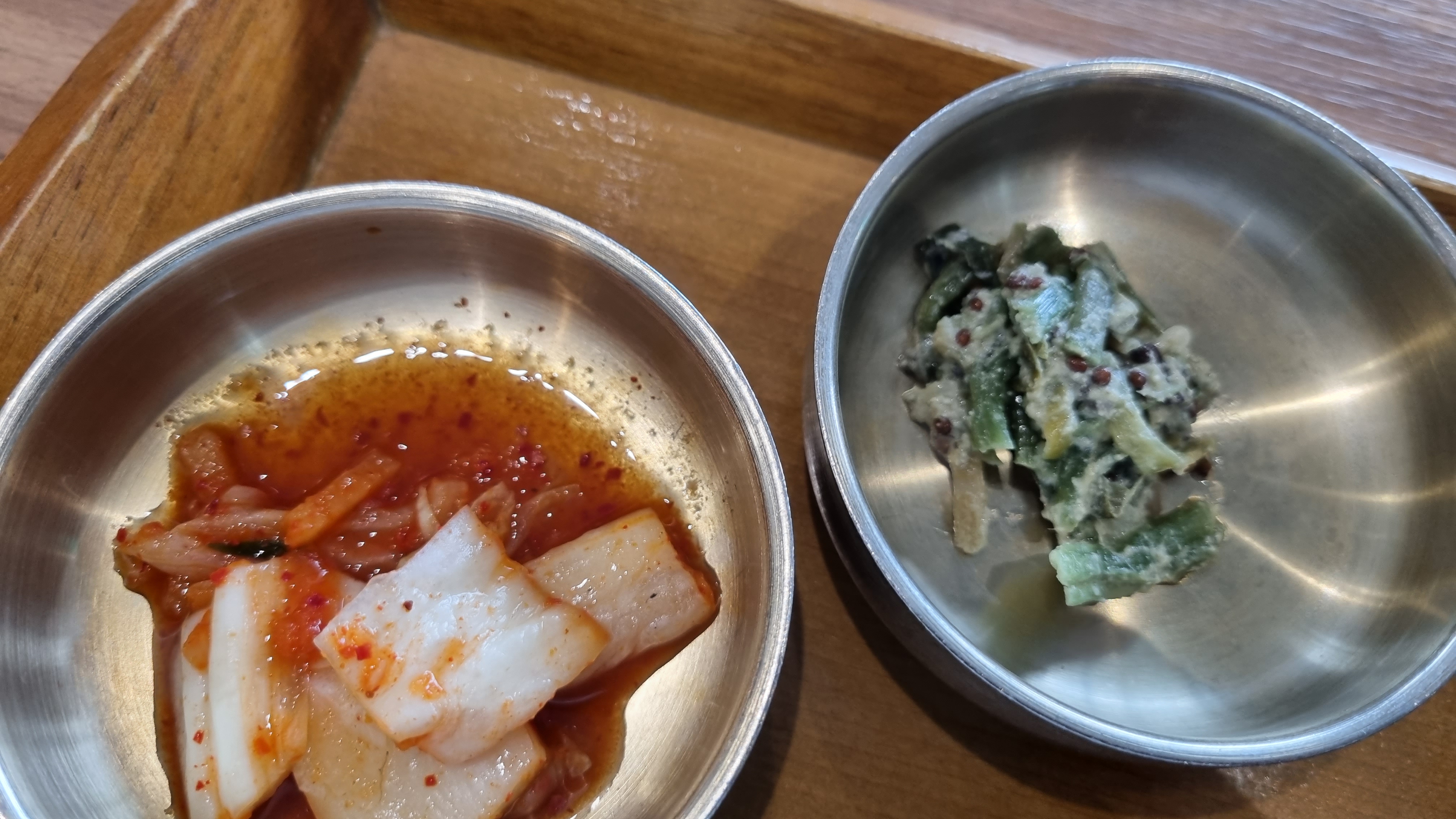 반찬은 국을 포함하여 5가지이며 아주 조금씩 나와 더 필요하면 추가로 리필하면 됩니다.