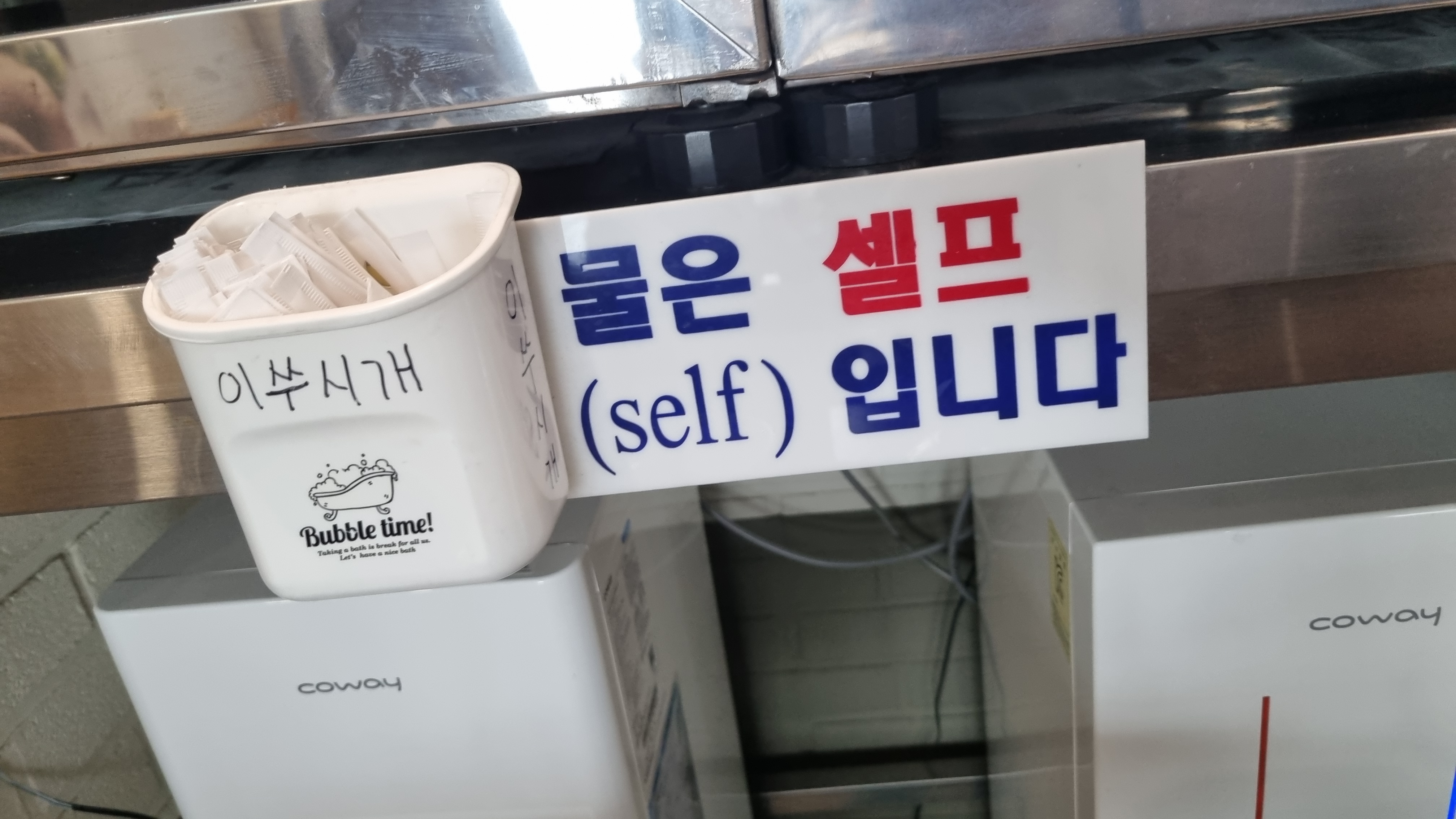 일반식당이 아닌 고속도로 휴게소 개념의 식당이라 생각하시면 된다고 했는데 모든 것이 셀프이고 직접해야 합니다.