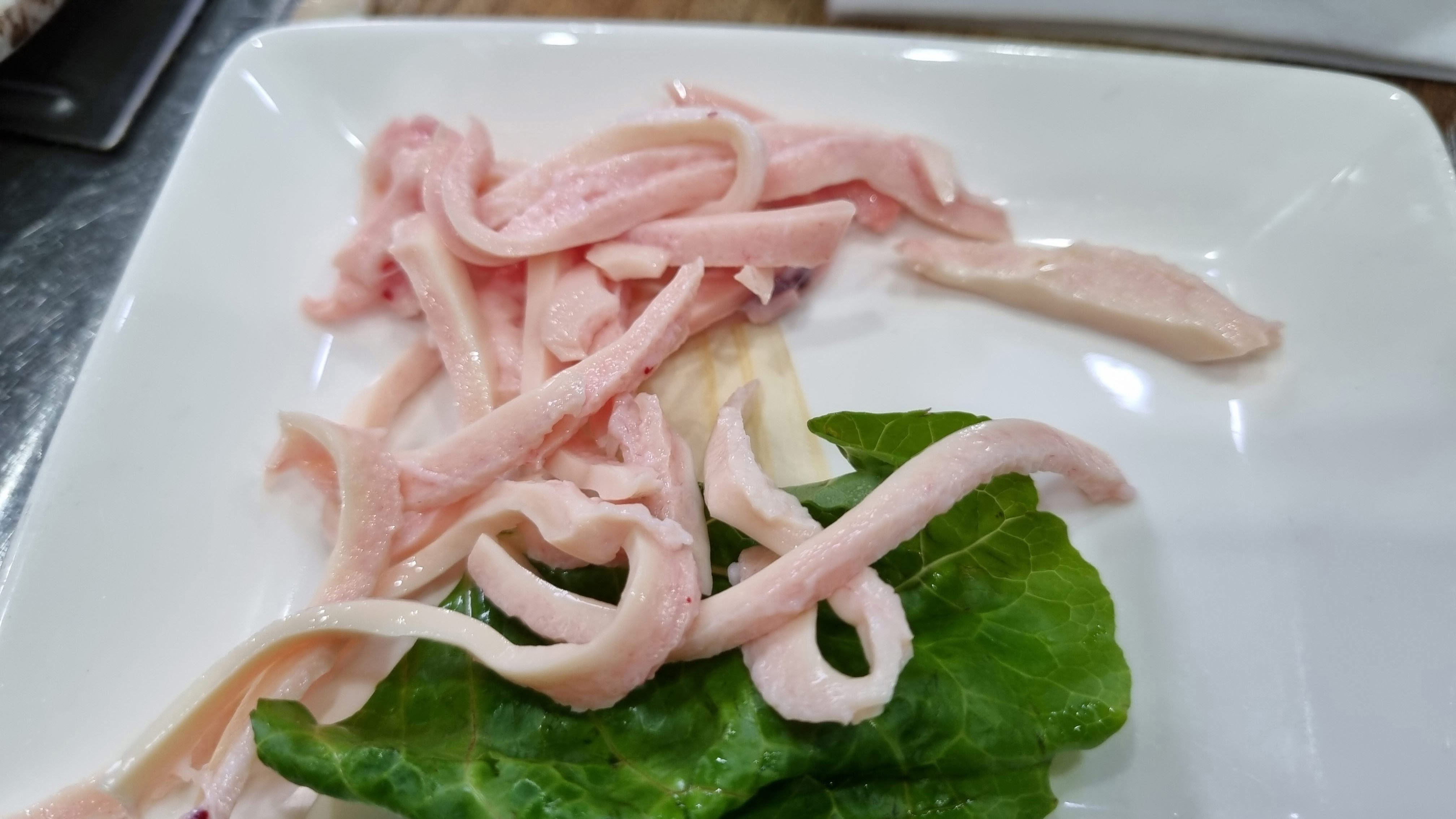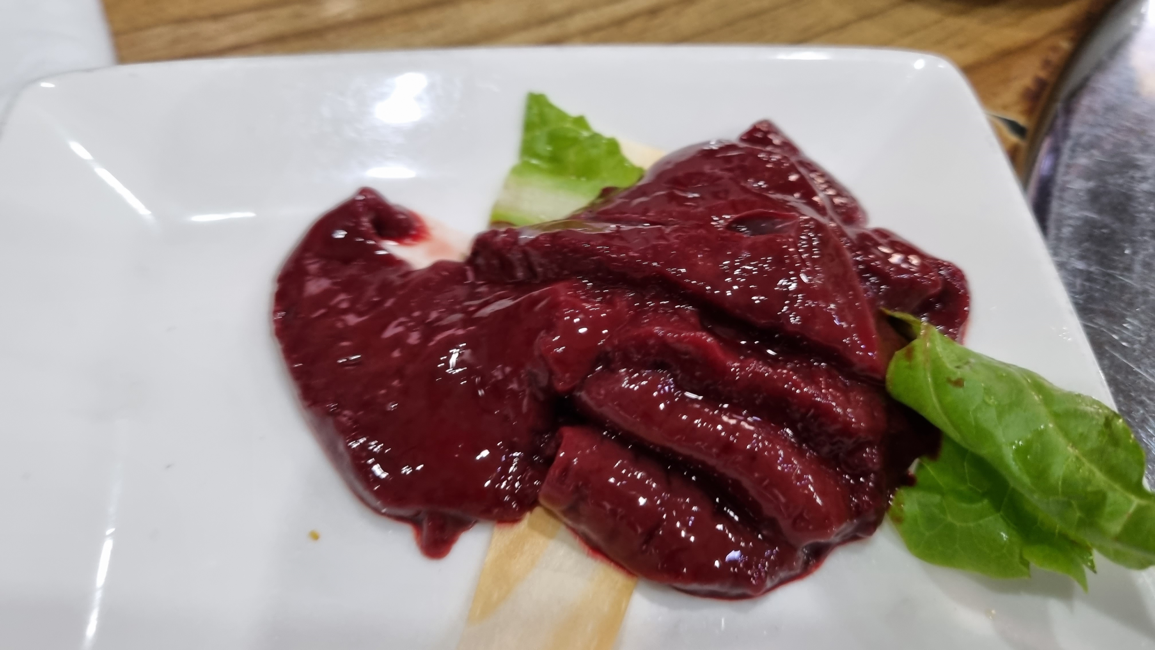 이곳이 소고기도 메뉴도 함께 취급하여 남다른 서비스가 나오는 듯합니다. 위의 사진에서 왼쪽이 소의 간 부위인데 생으로 그대로 드시면 좋다고 합니다.