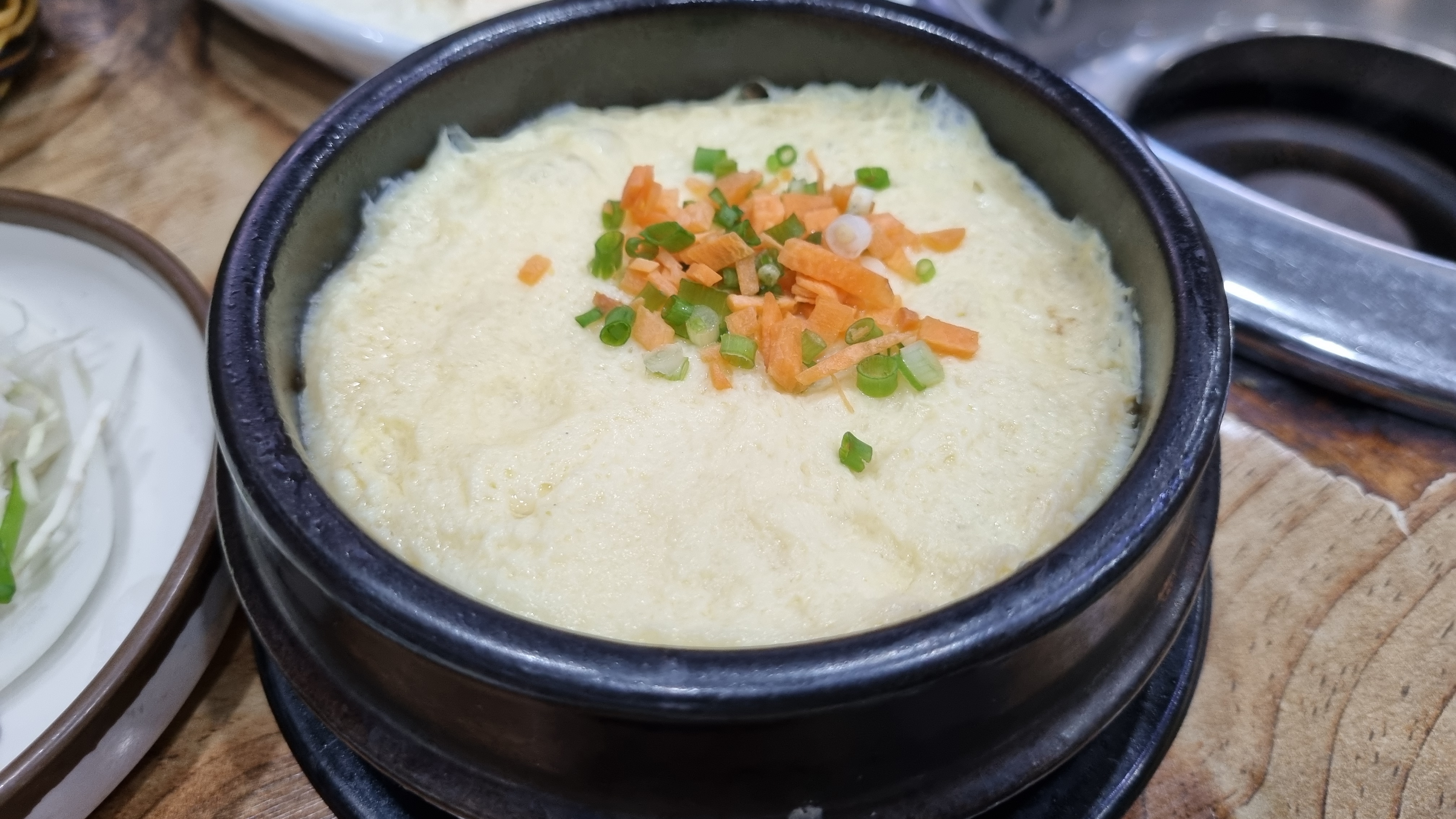 계란찜은 초기에는 서비스로 하나 나오는데 이후로 추가 시 2천 원의 부담이 있습니다. 이것은 어디를 가나 대부분의 식당에서 이렇게 2천 원으로 손님들에게 부담을 시키 것 같습니다.