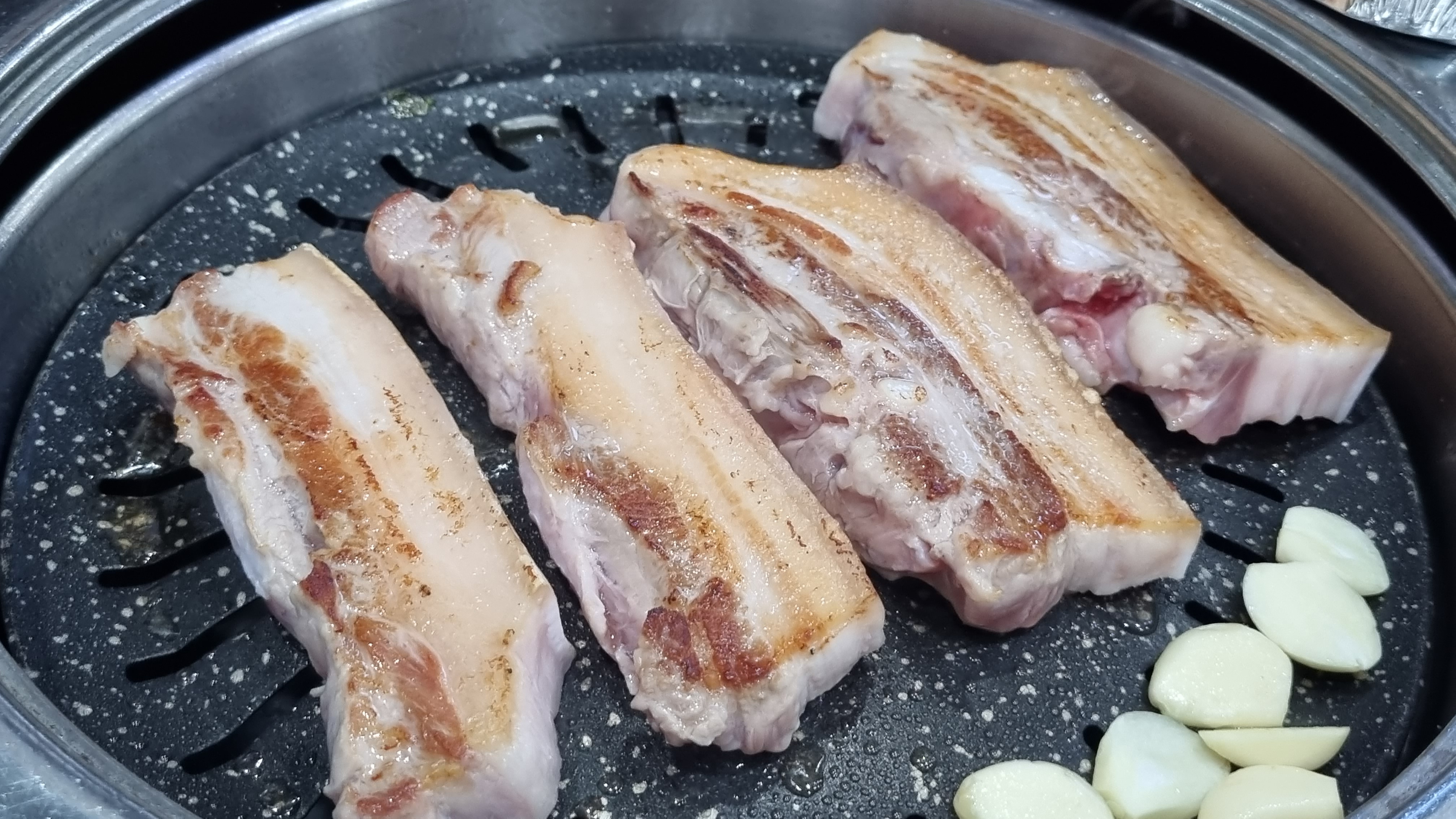 다른 고깃집에서는 잘 나오지 않은 것으로 불판에 구워 먹었는데 아주 좋았습니다. 이것을 구워 먹는 동안에 삼겹살이 나와 함께 구워 먹었습니다.