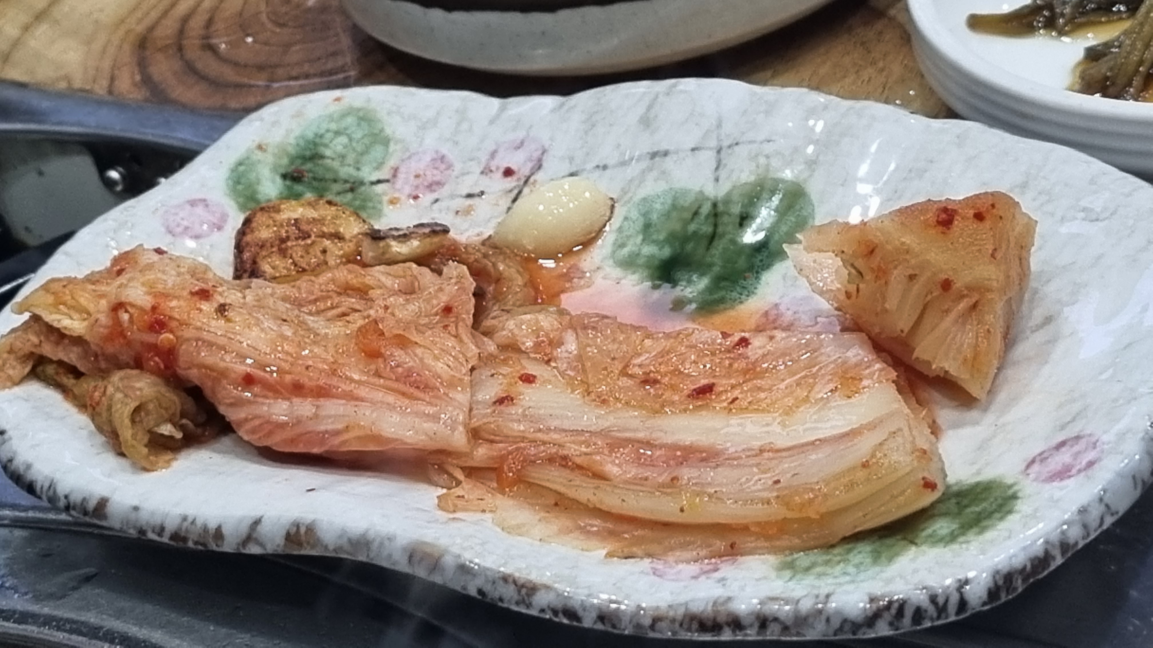 이곳에서 고기도 맛있지만 위의 김치가 정말 맛있습니다. 그대로 고기와 함께 드셔도 되고 불판에 고기와 함께 구워서 드셔도 아주 맛있습니다.