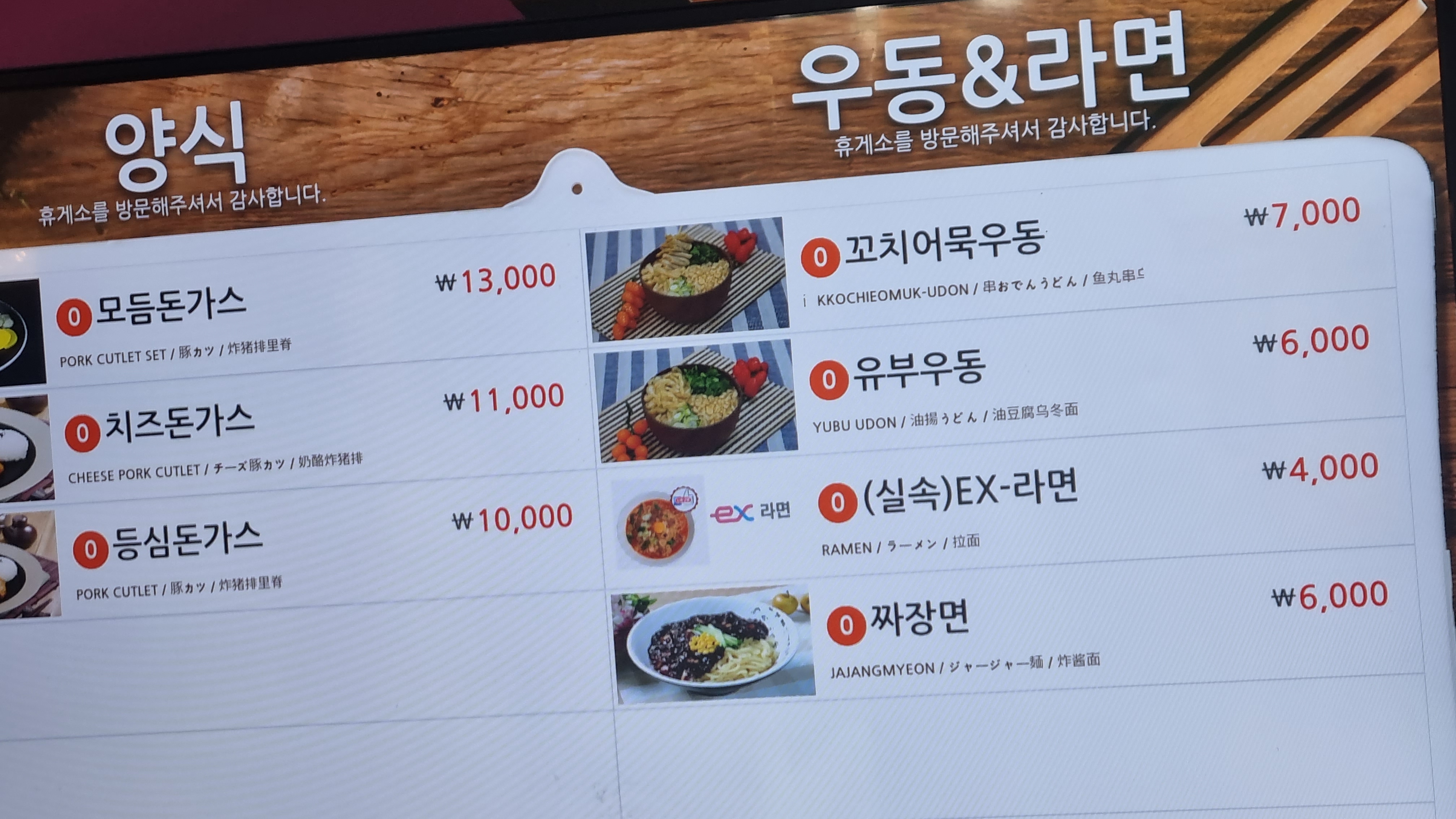 점심시간으로 식당을 먼저 갔는데 양식과 분식등 다양하게 있어고 한식도 판매가 되었습니다. 애들이 좋아하는 돈가스에서 라면 우동까지 많이 있고 특히 휴게소에서 잘 판매하지 않은 짜장면이 있었습니다.