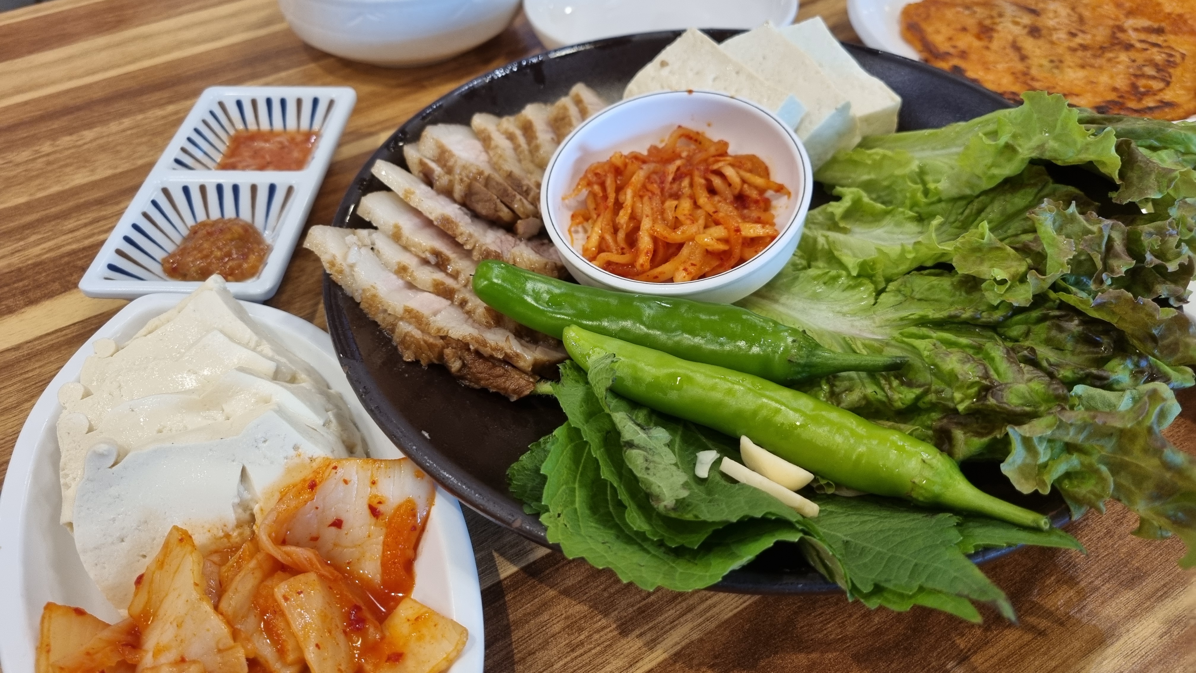보쌈은 혼자서 5점 정도 먹을 수 있는 양이 나오며 기본반찬에서는 순두부와 김치 잡채등이 나오는 맛있습니다.